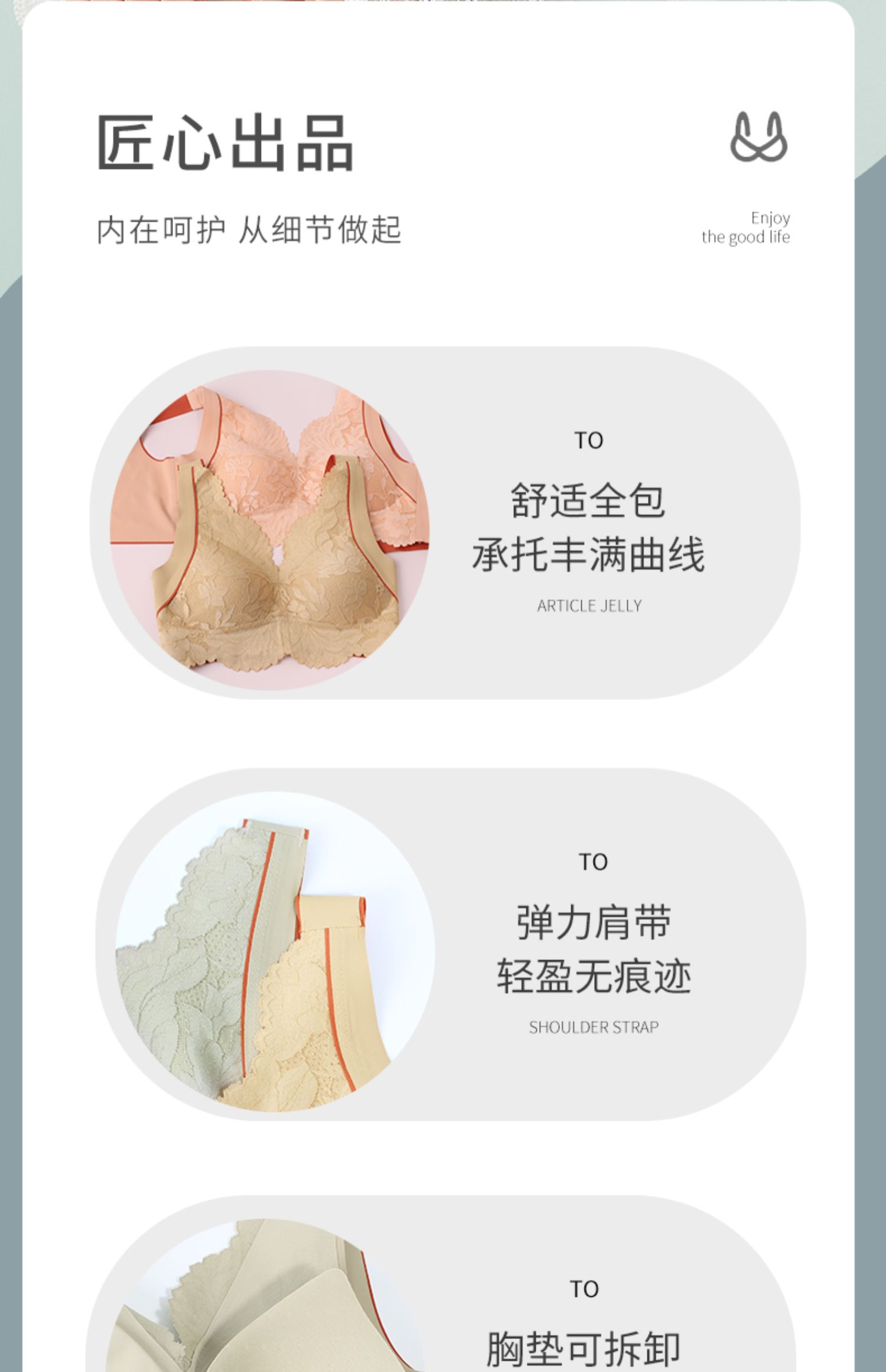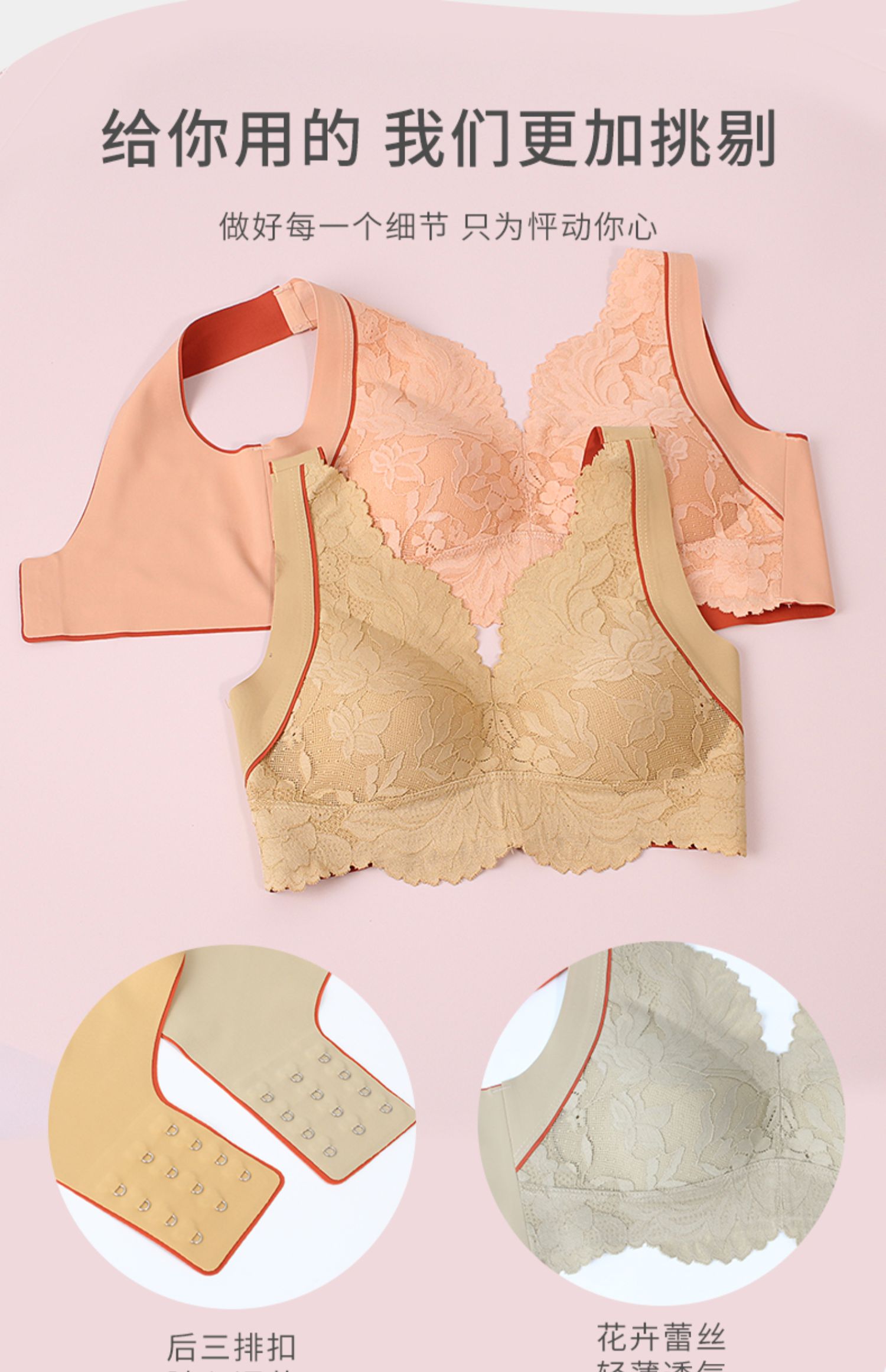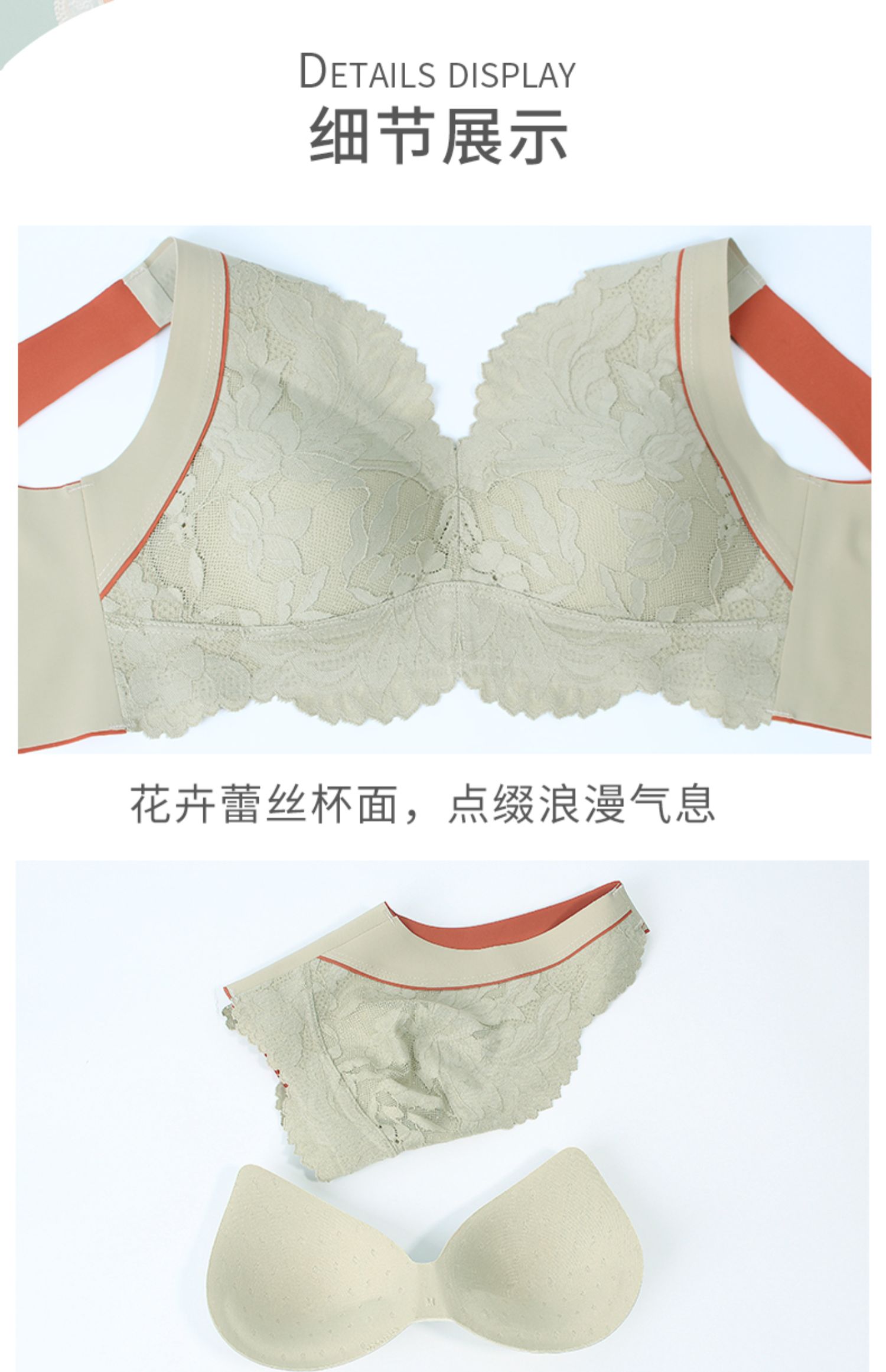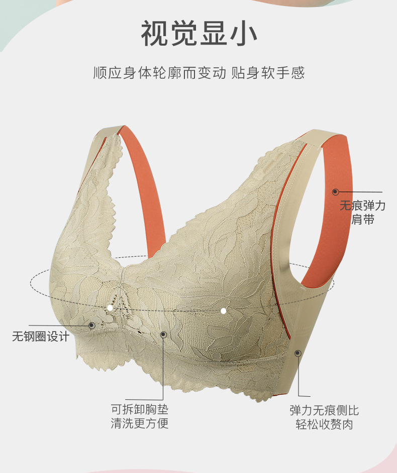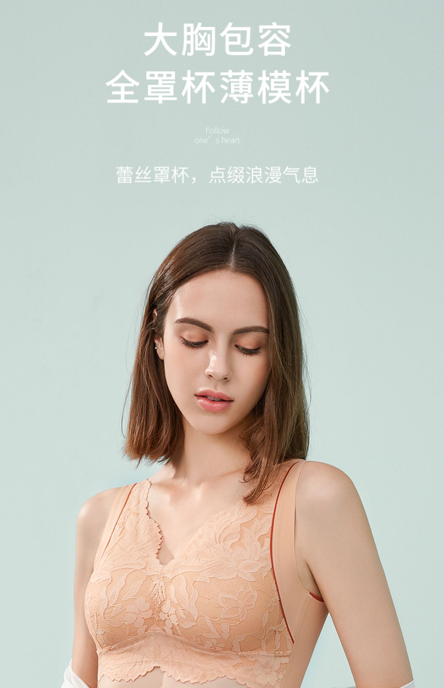熳洁儿 无痕蕾丝内衣女薄款大胸显小全罩杯无钢圈文胸美背胸罩21261557