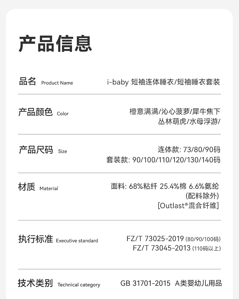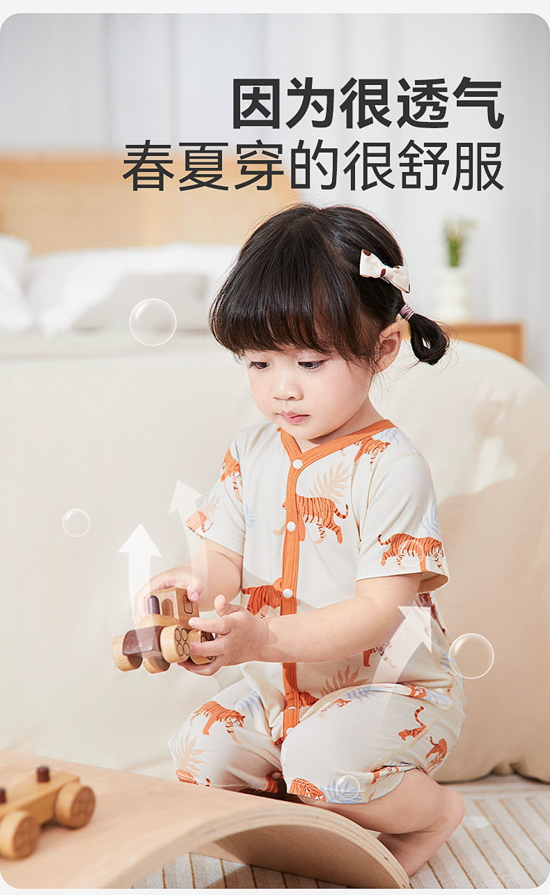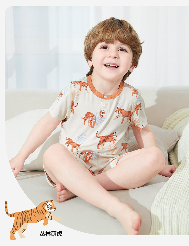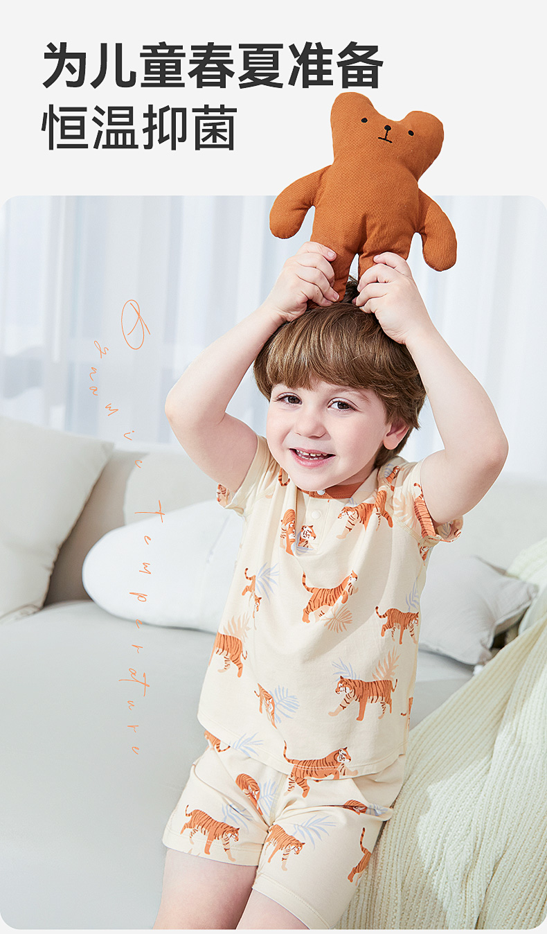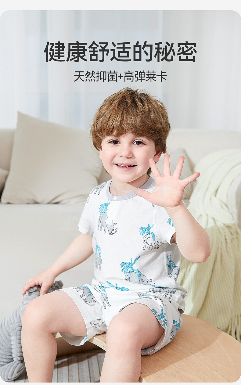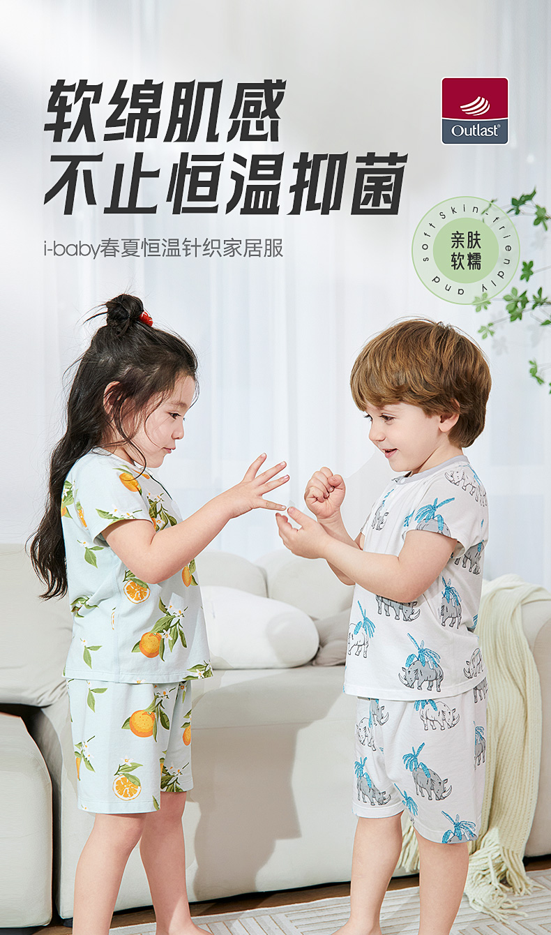 【59元秒杀】i-baby/英伦宝贝 春夏outlast恒温抑菌针织短袖睡衣 薄款春夏装