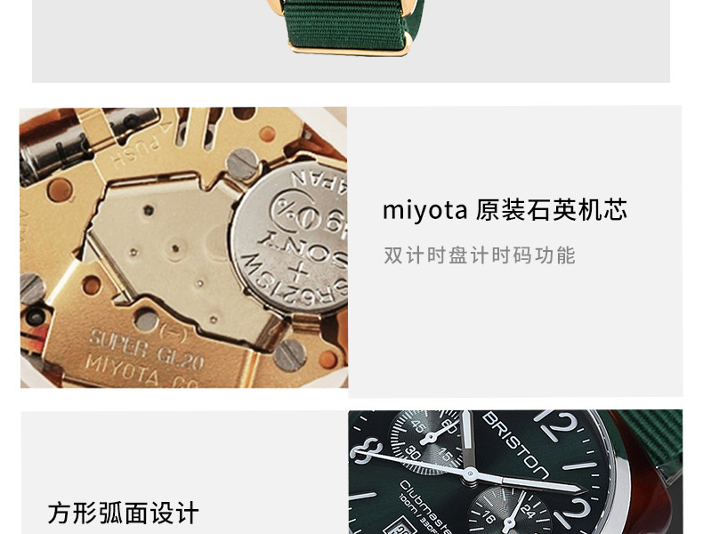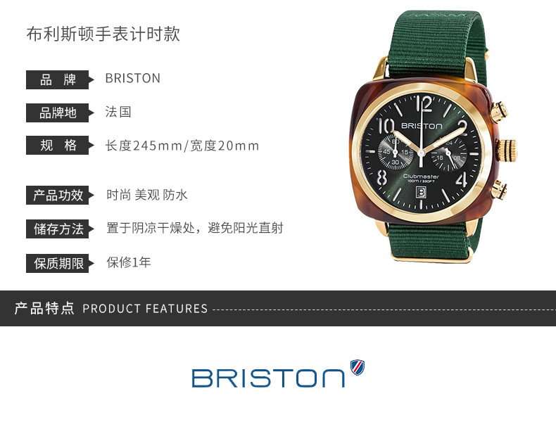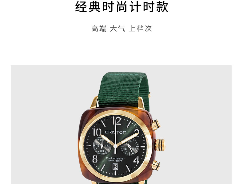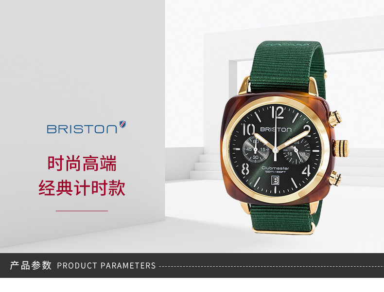 BRISTON 法国时尚经典系列玳瑁金圈绿色中性石英手表 40MMJPY带授权招加盟代理