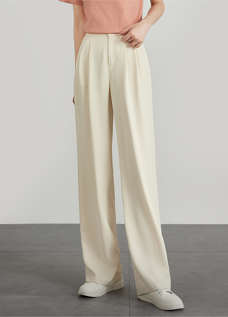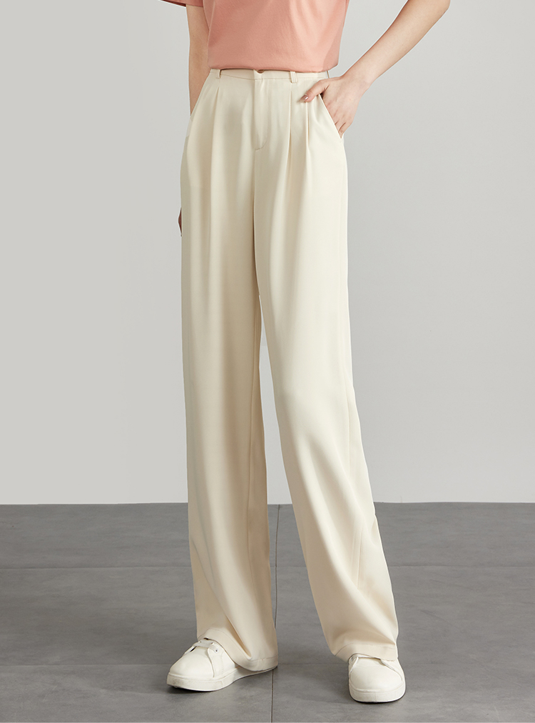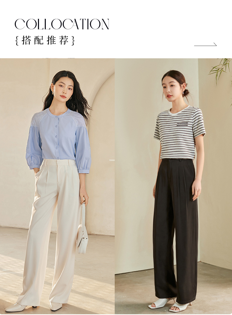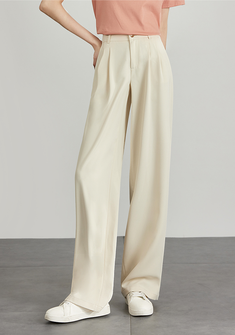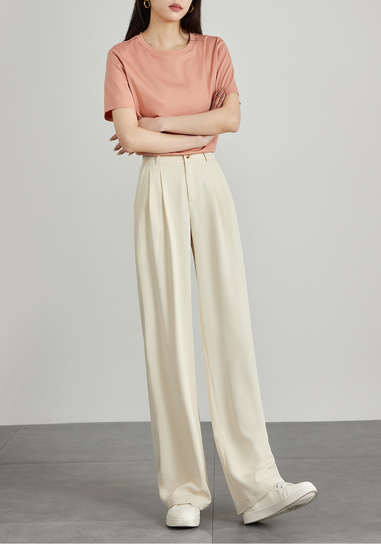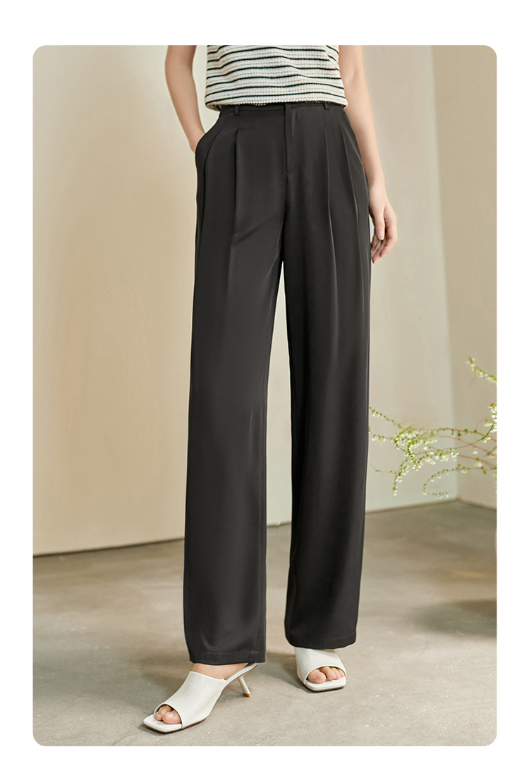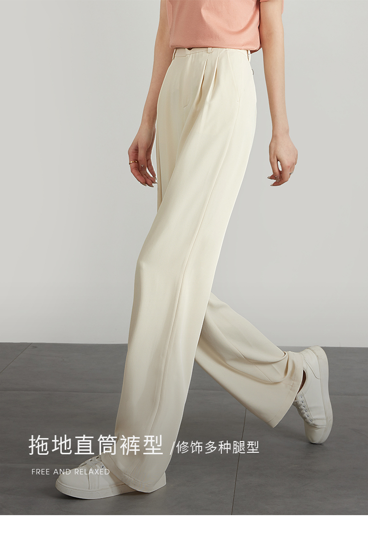 【专属特价】熙世界薄款窄版阔腿裤女2025秋夏款高腰垂感直筒长裤西装拖地裤