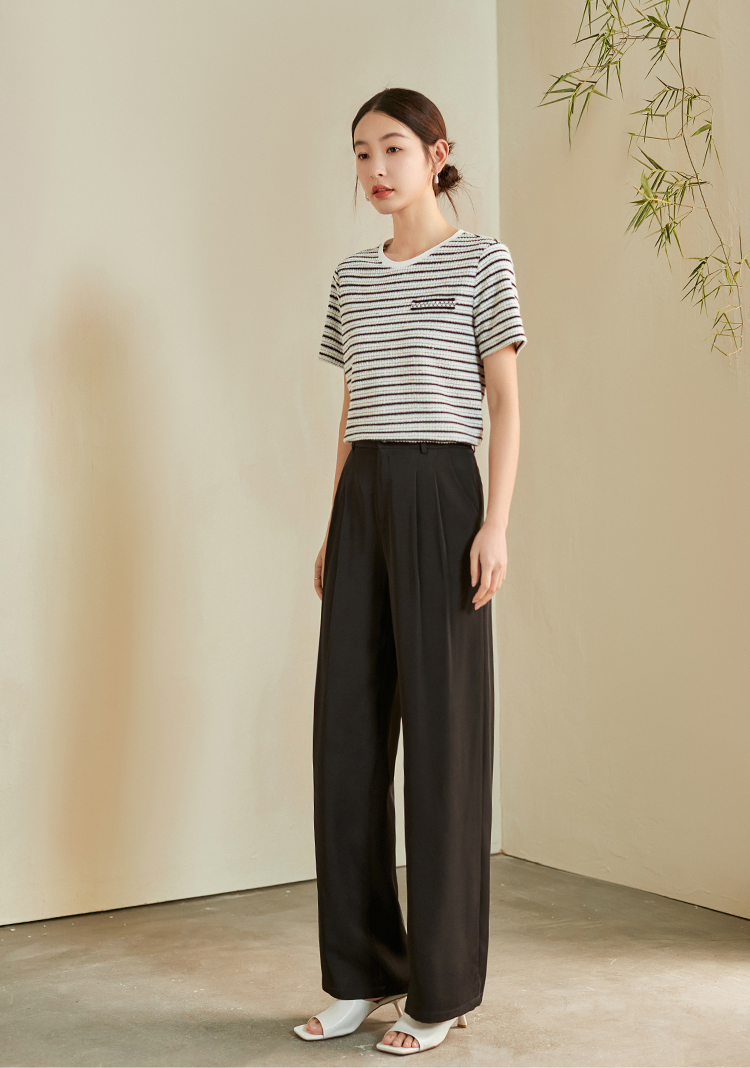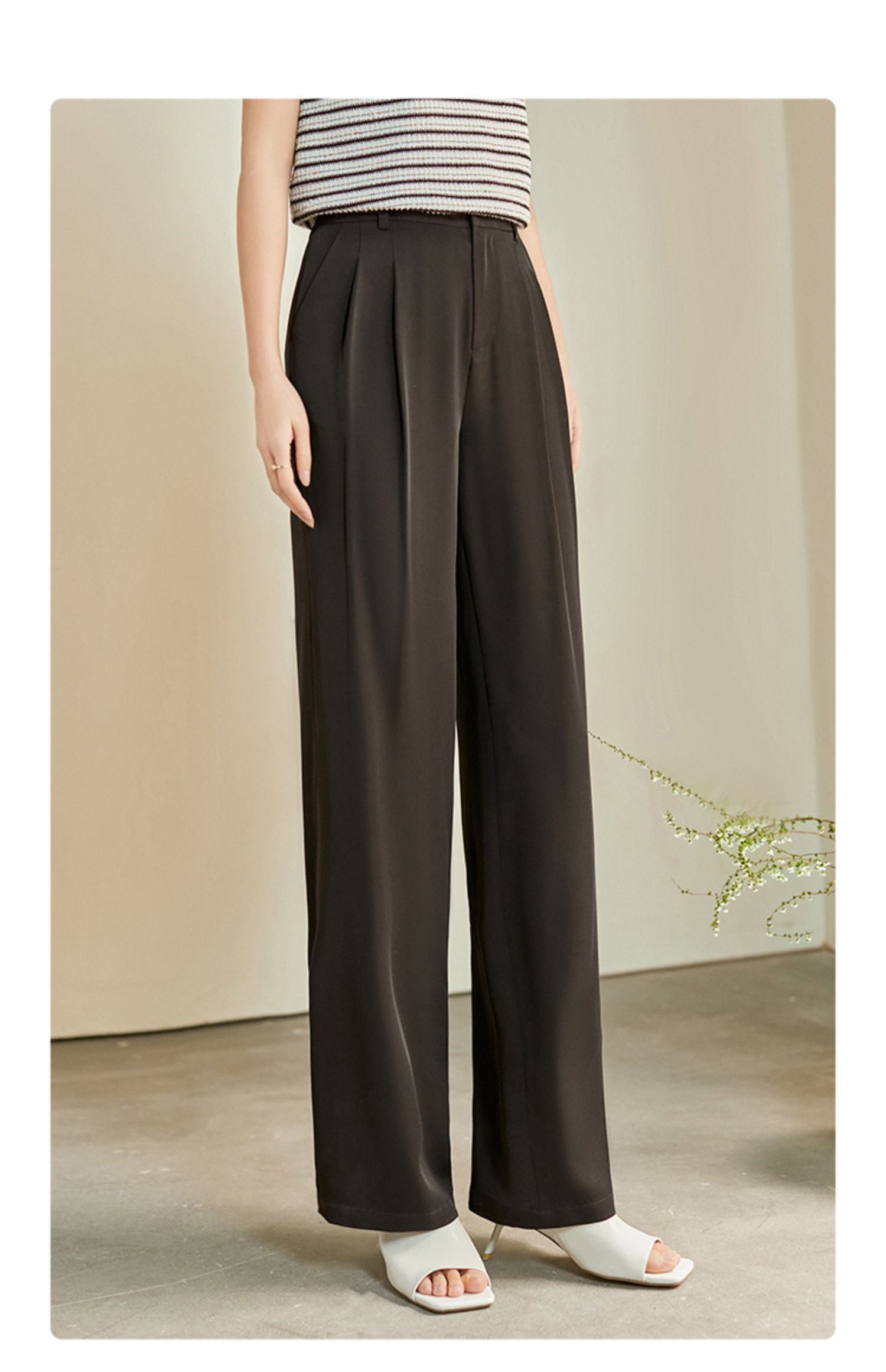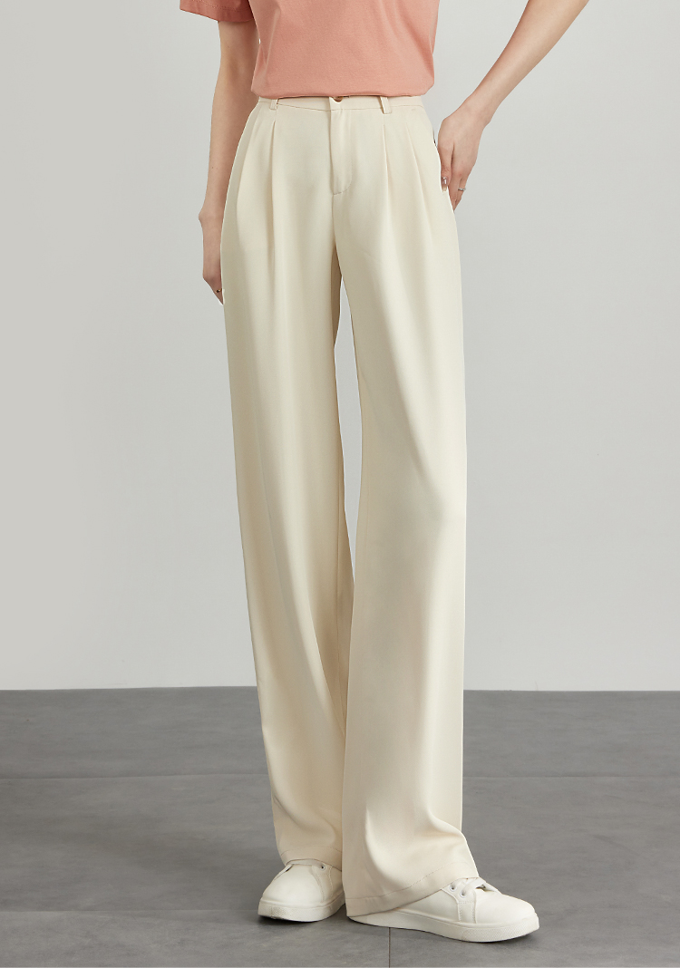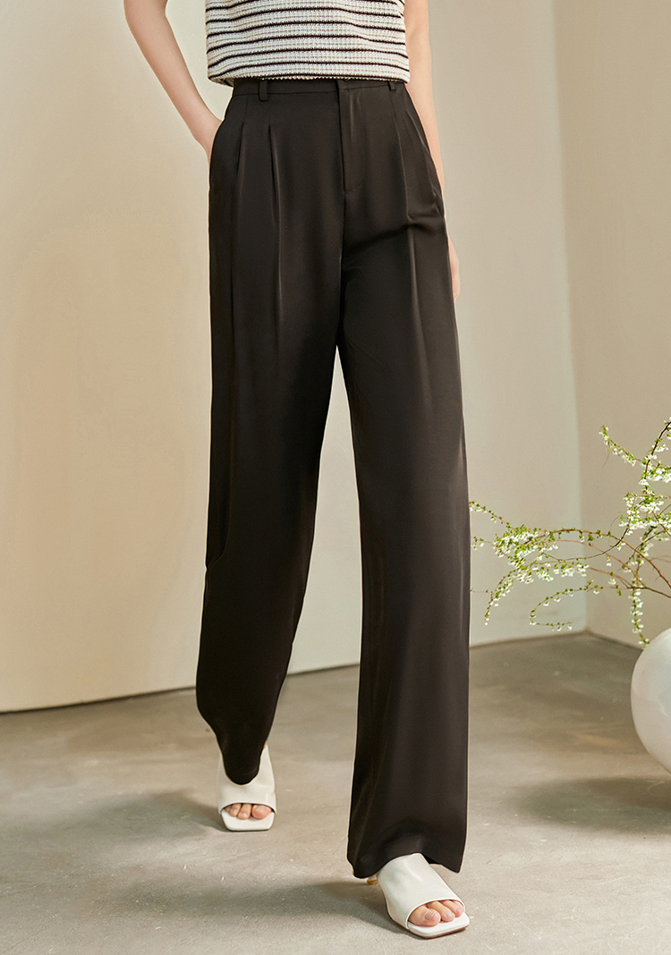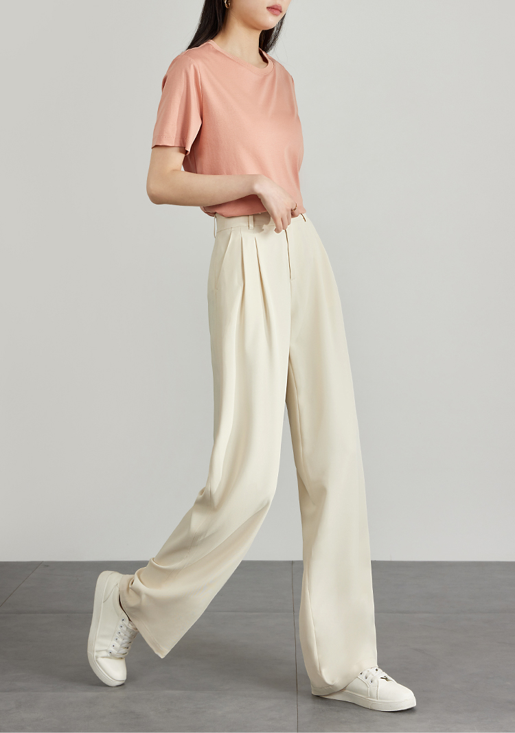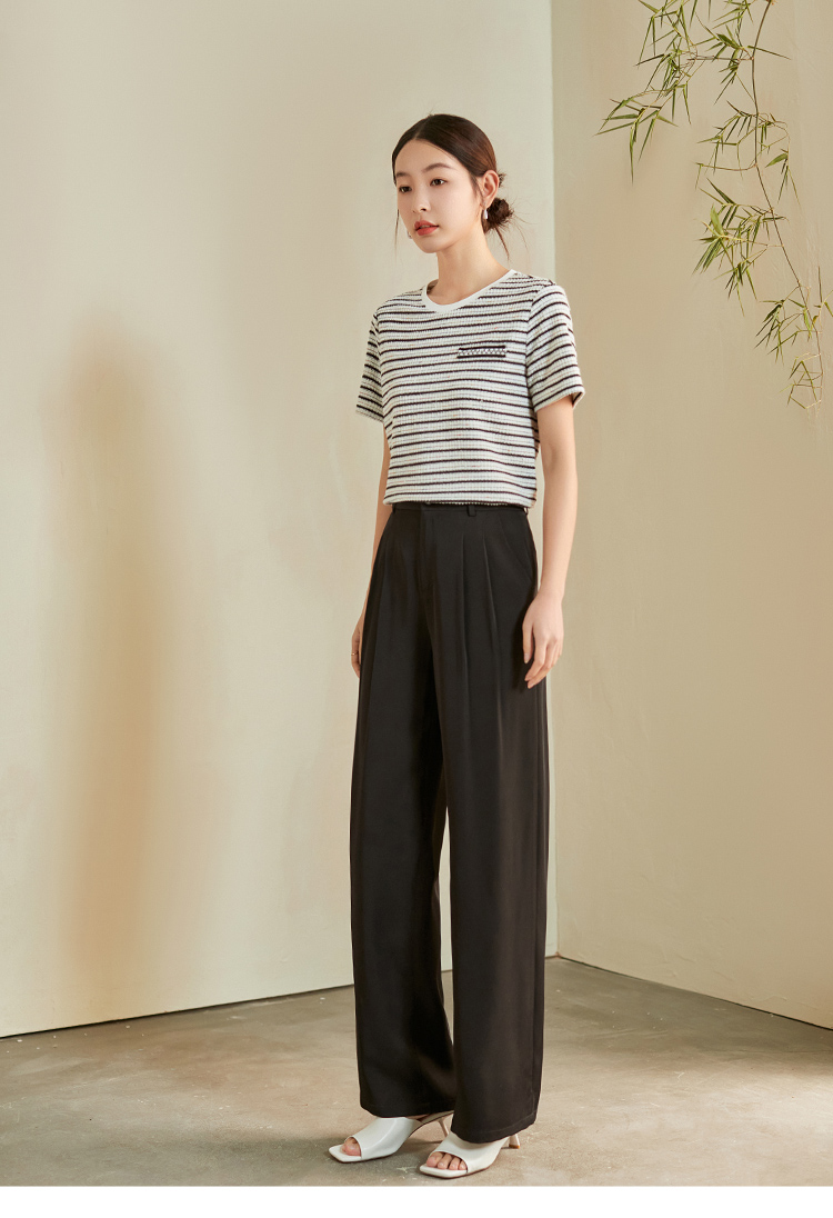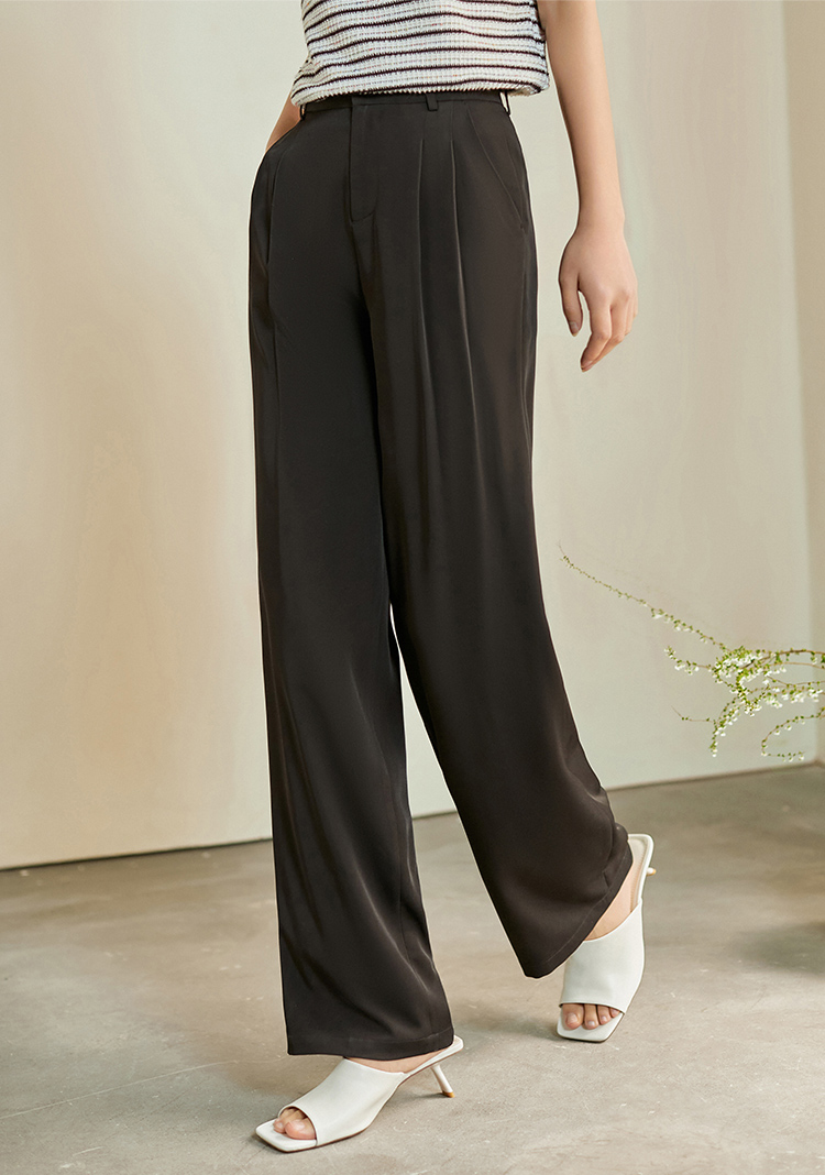 【专属特价】熙世界薄款窄版阔腿裤女2025秋夏款高腰垂感直筒长裤西装拖地裤