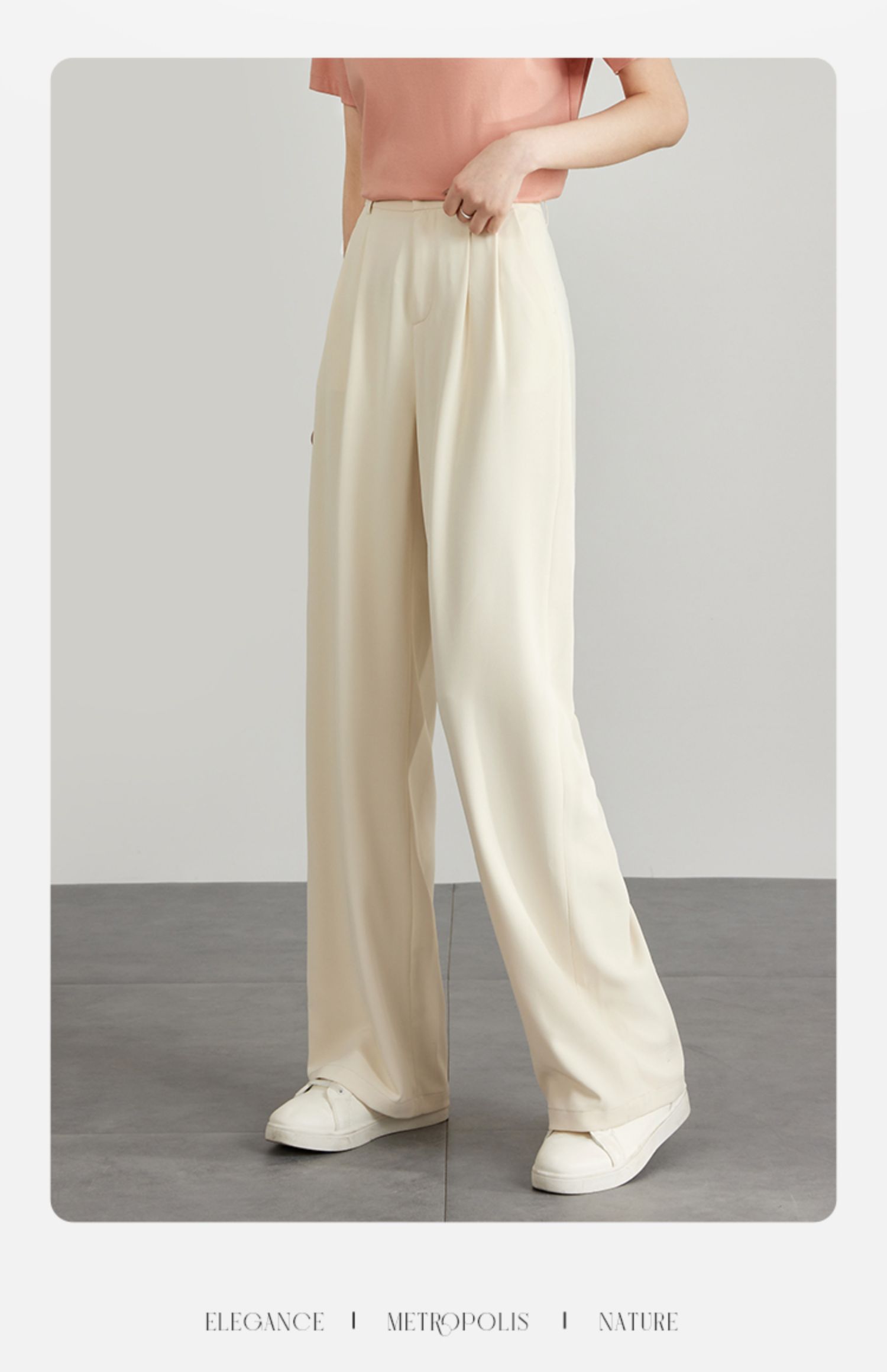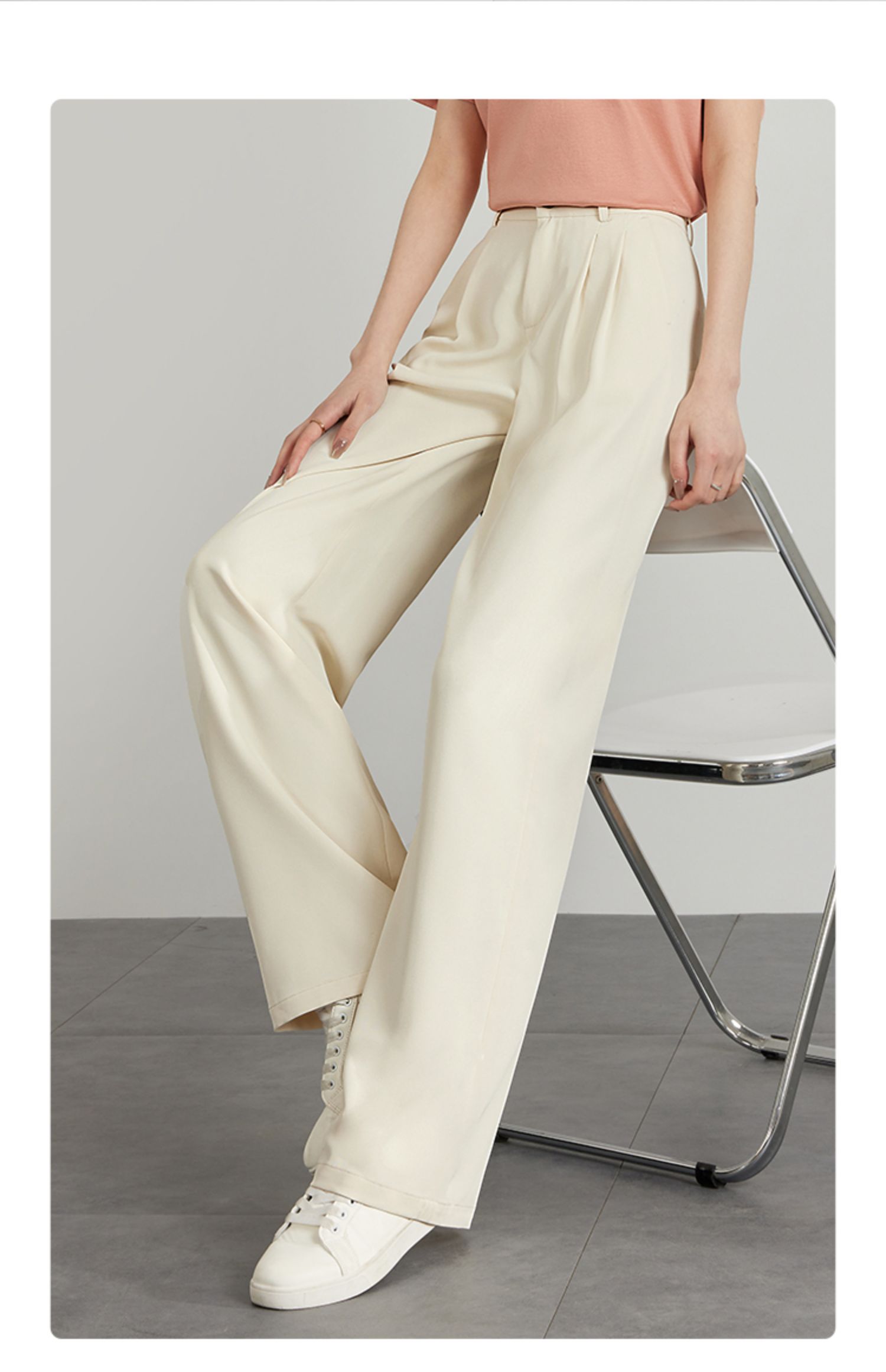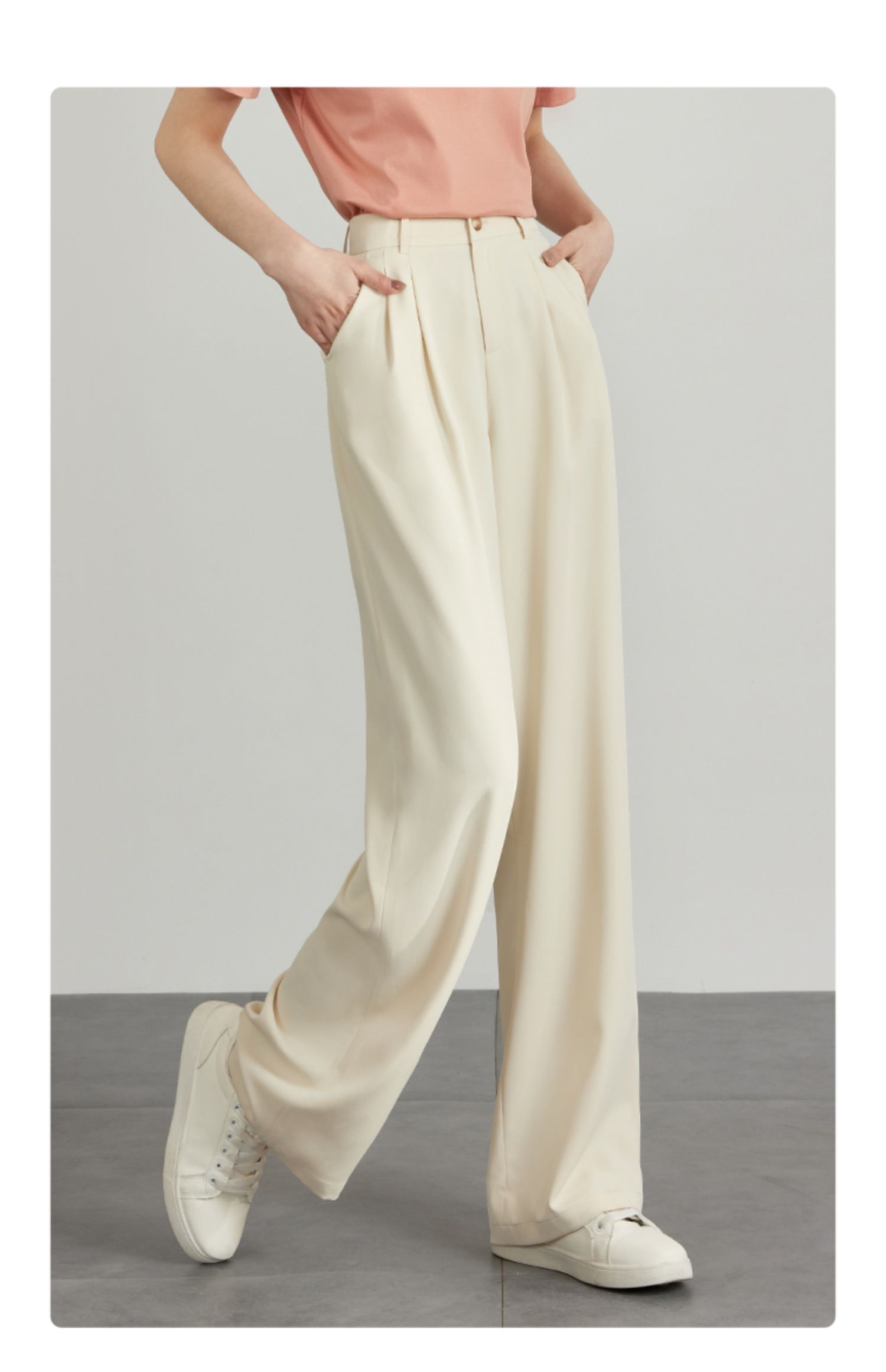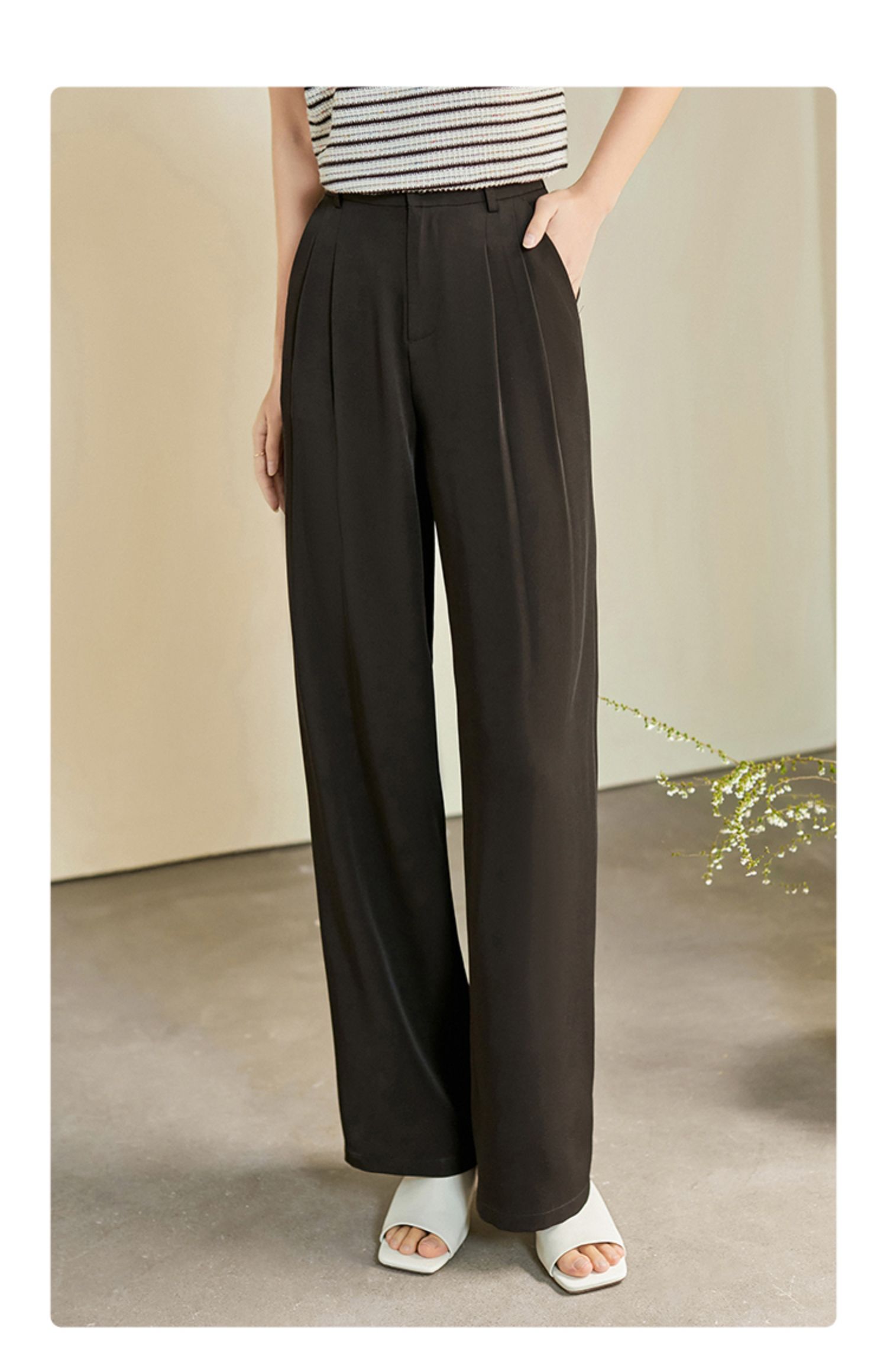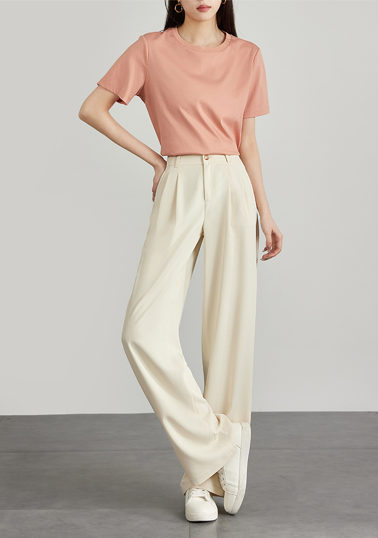 【专属特价】熙世界薄款窄版阔腿裤女2025秋夏款高腰垂感直筒长裤西装拖地裤