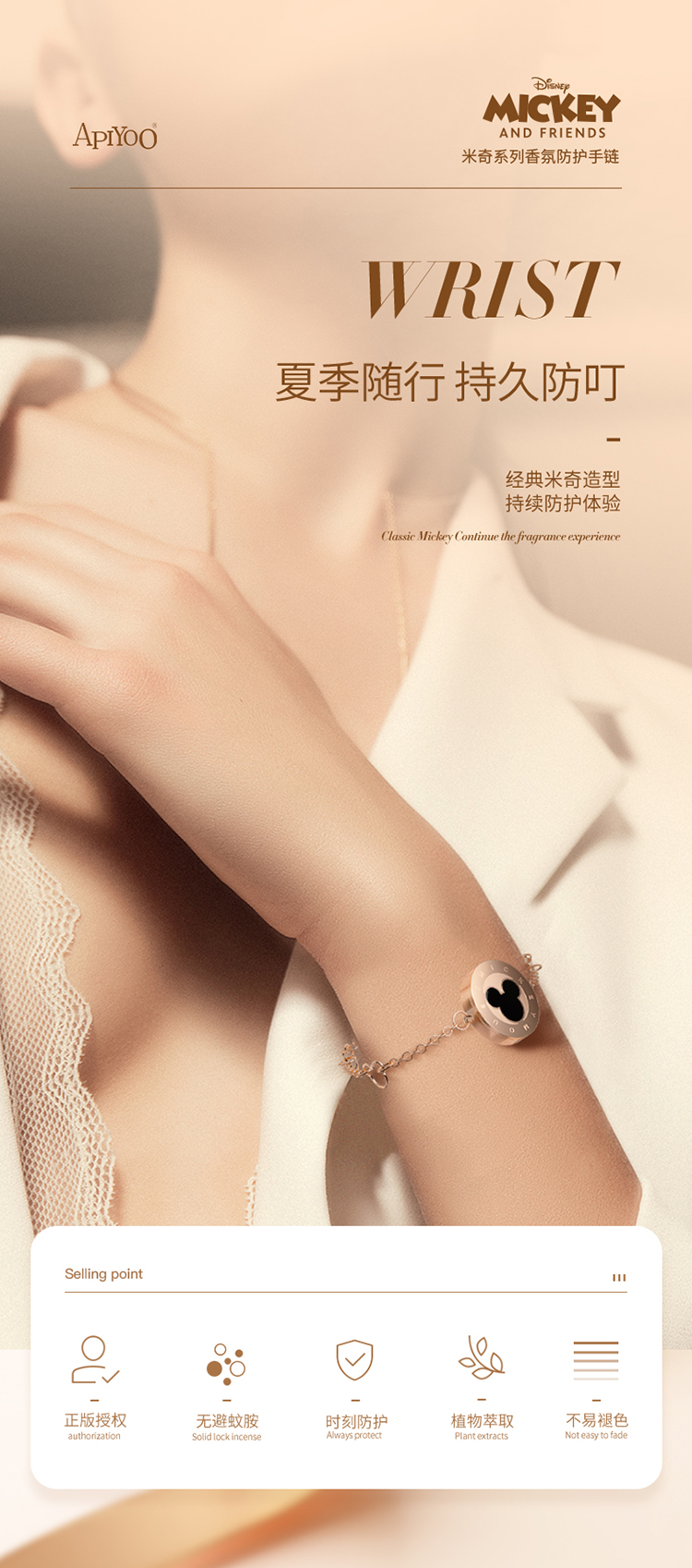 apiyoo艾优迪士尼米奇驱蚊手环手链香氛儿童女生防蚊神器随身成人