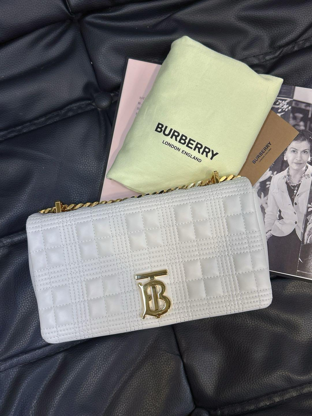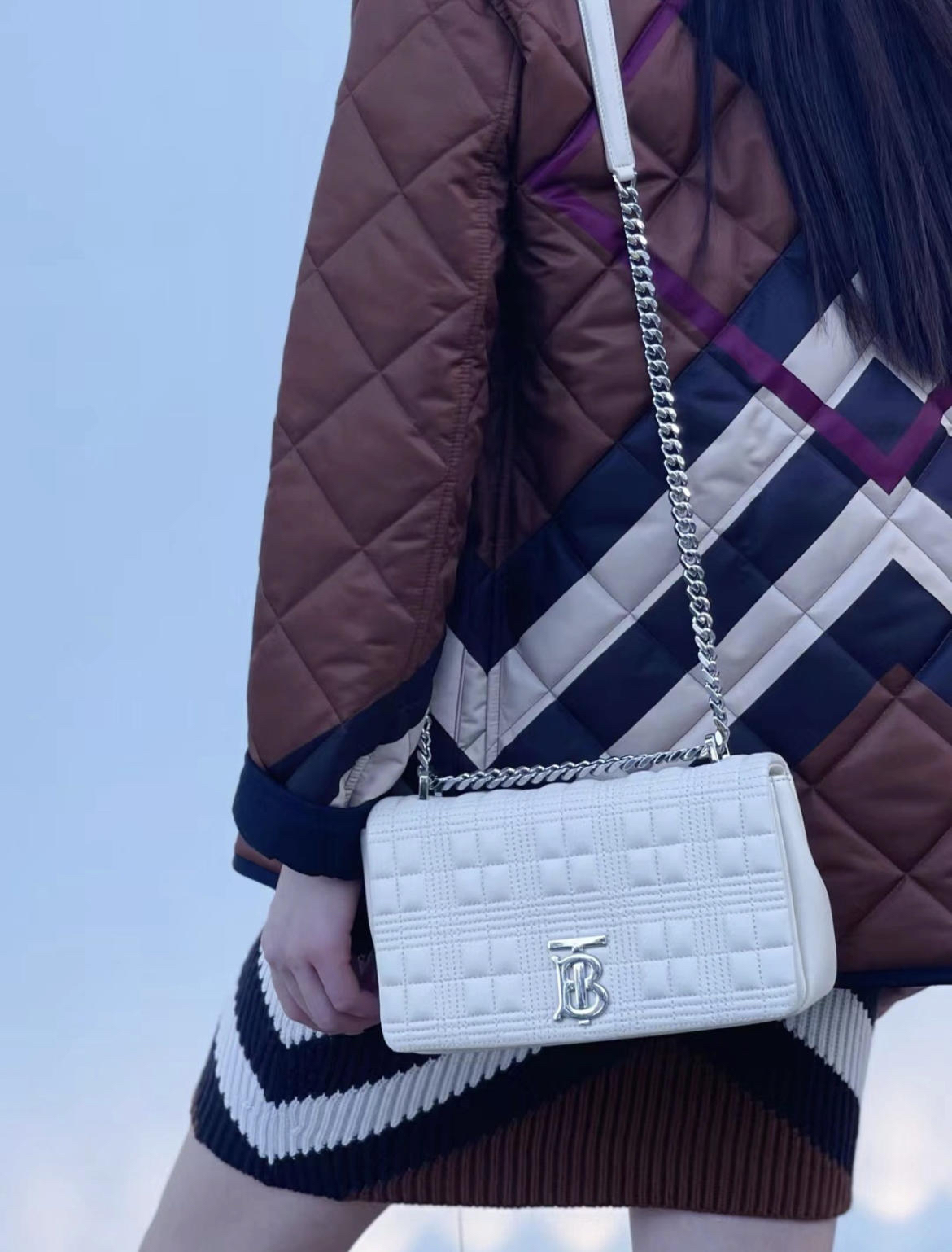 巴宝莉 Lola 萝纳包 白色 格纹 羊皮 小号 斜挎包