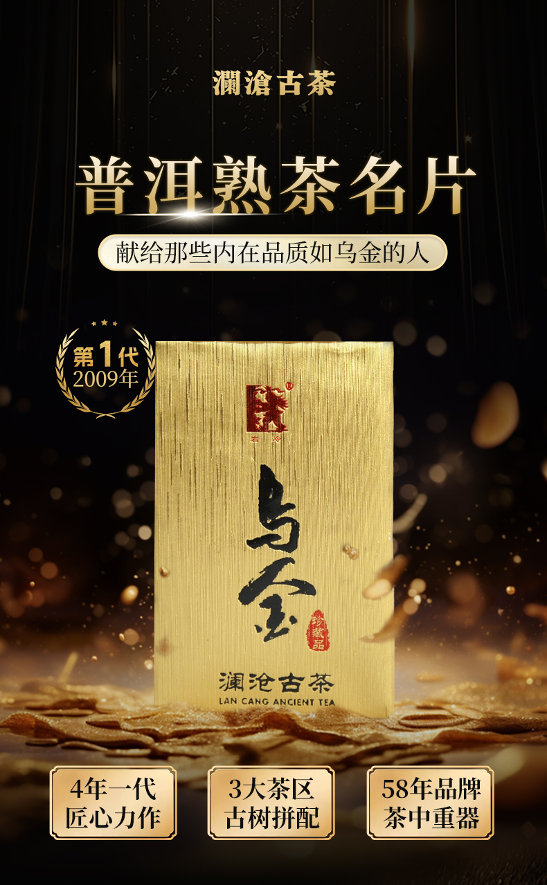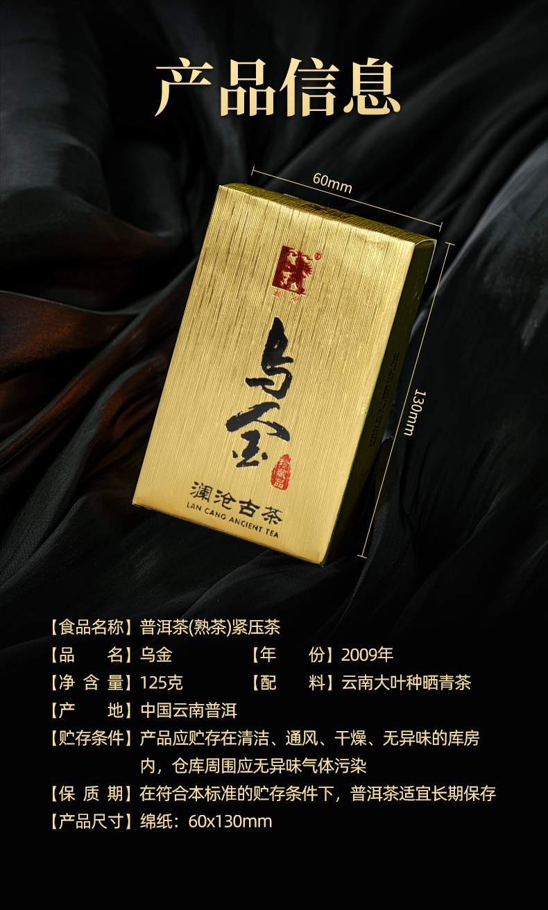 澜沧古茶2009年第1代乌金普洱熟茶名山古树熟普砖茶125g