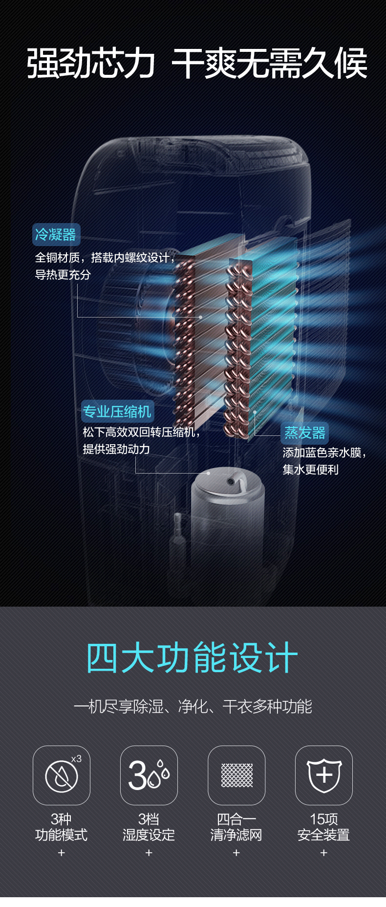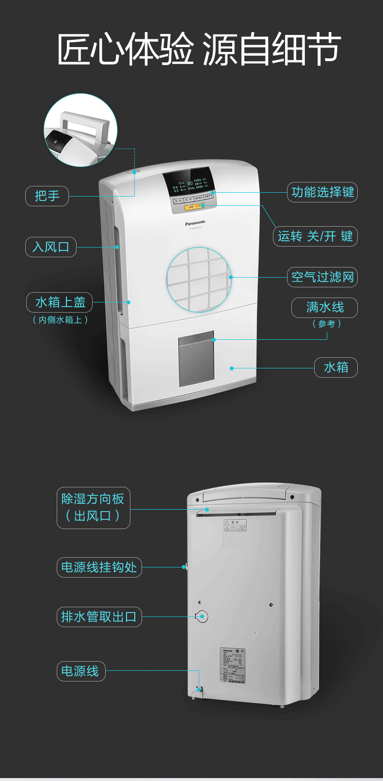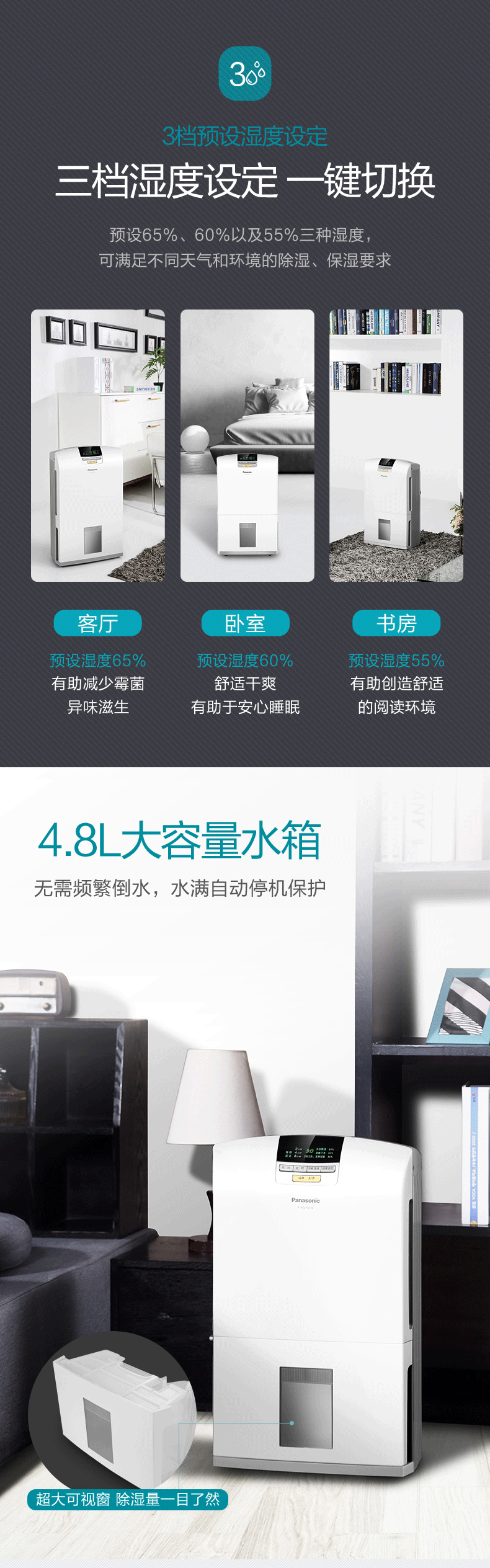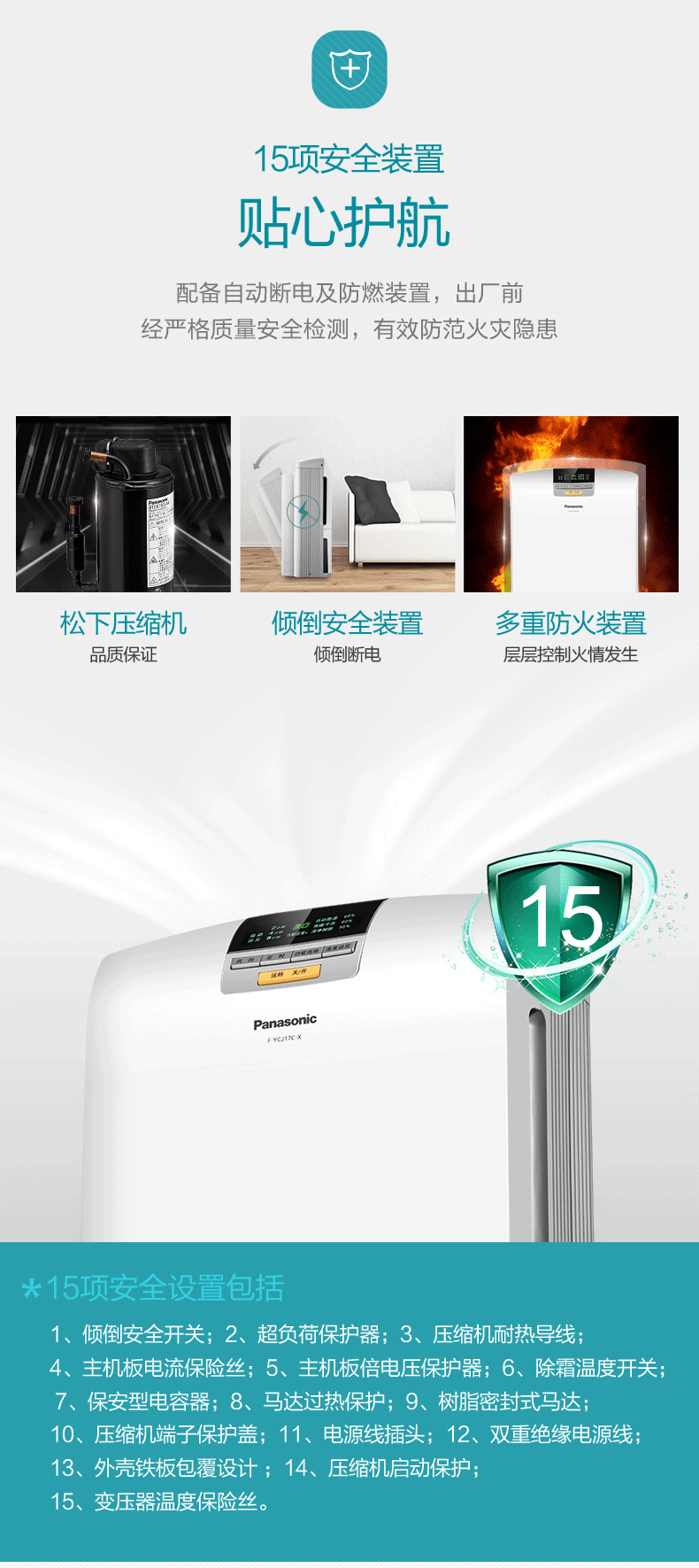 松下(Panasonic)除湿机 家用低音抽湿机除湿器可外接水管 F-YCJ17C-X