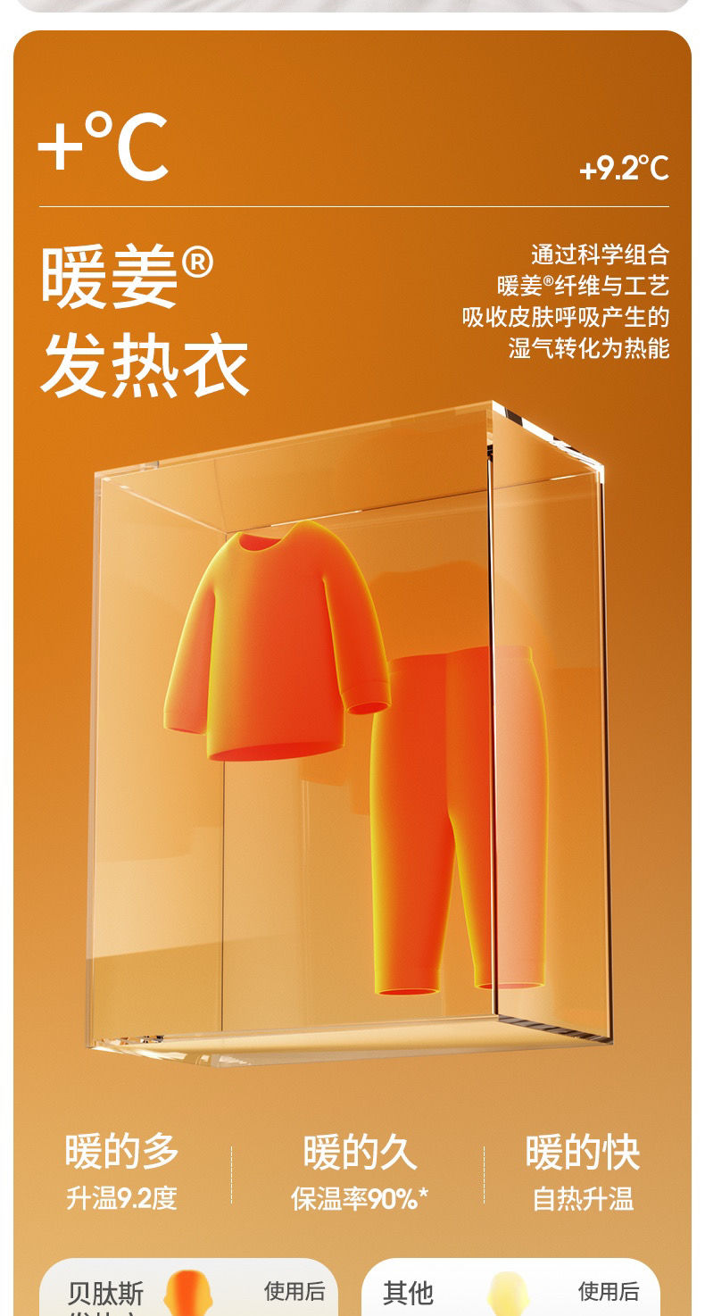 【贝肽斯】儿童内衣套装宝宝秋衣秋裤打底睡衣2024新款暖姜吸湿发热冬