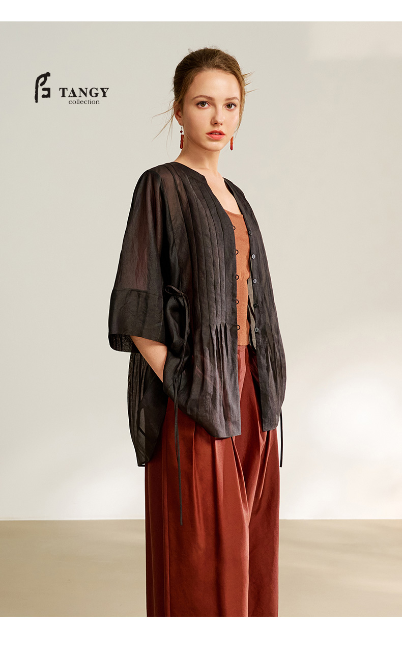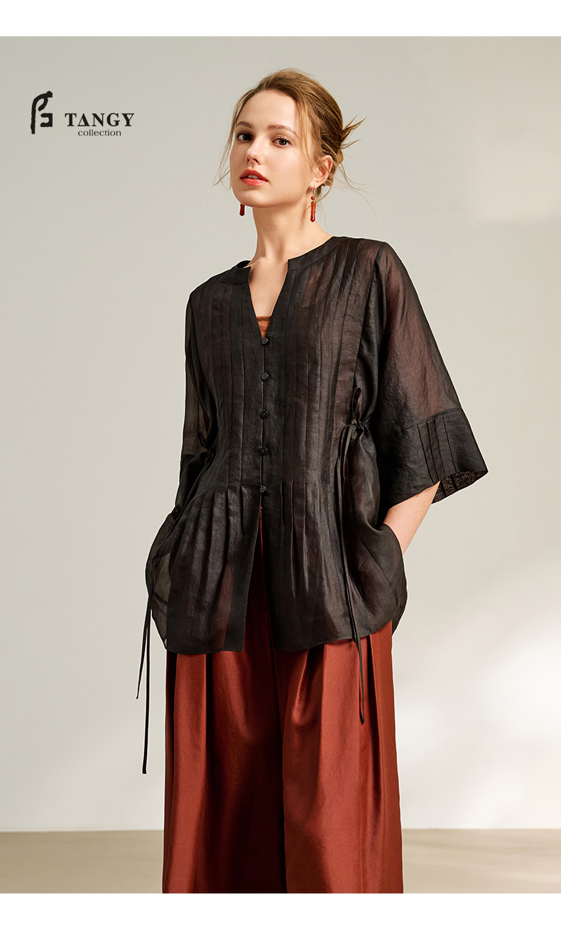 TANGYcollection天意2025秋季新品商场同款茛绸女衬衣L251027