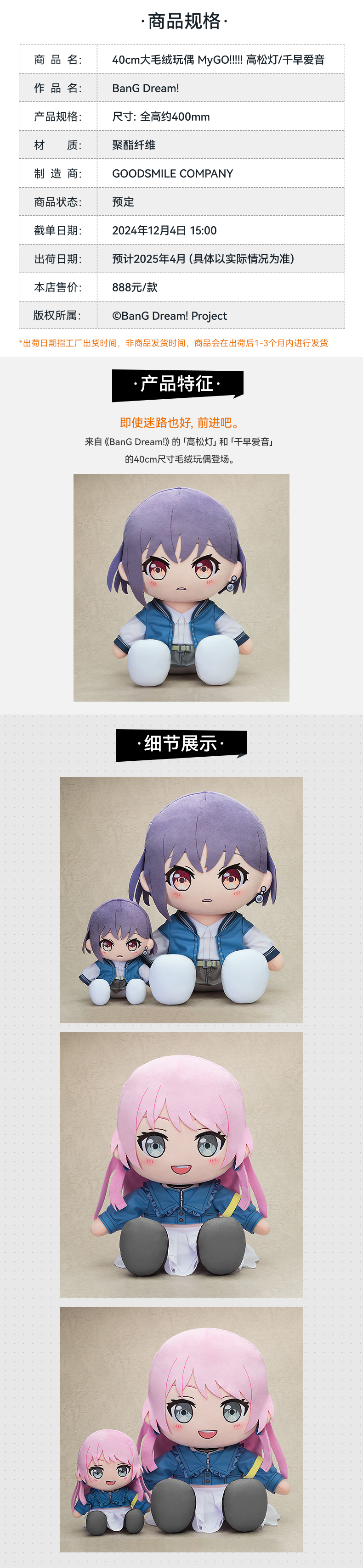 【GSC现货】40cm大毛绒玩偶 MyGO!!!!! 高松灯/千早爱音