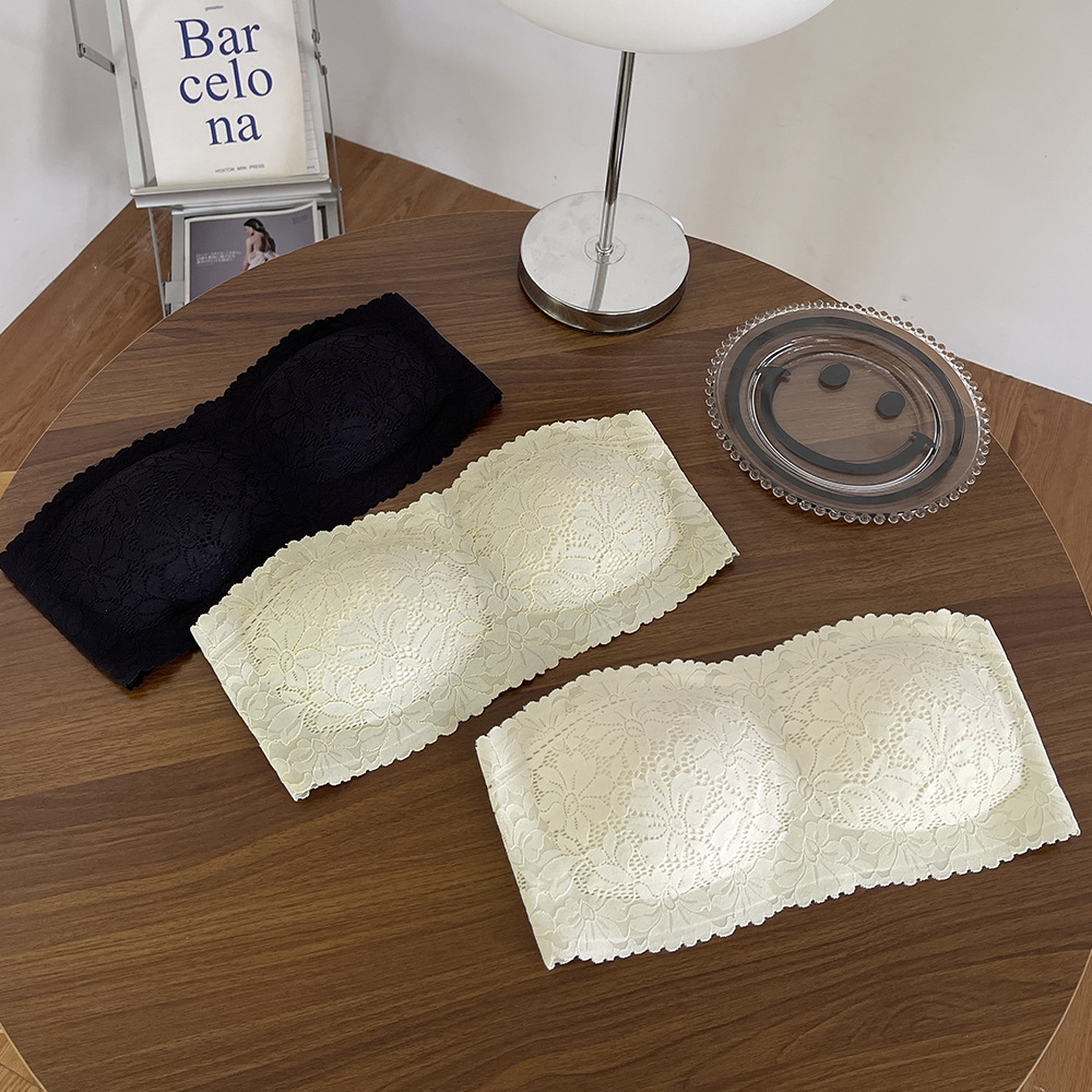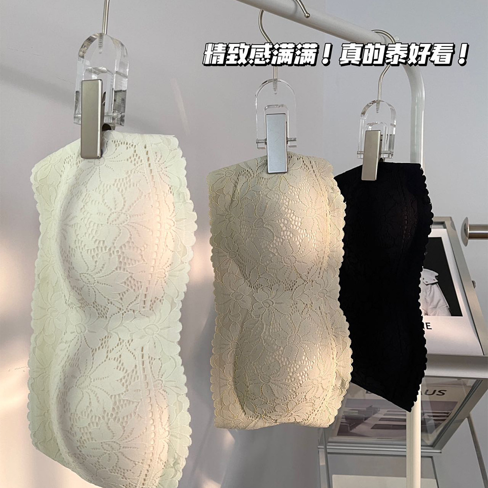 【纯欲花卉蕾丝小胸】抹胸无肩带内衣 固定杯防走光抗敏防滑文胸