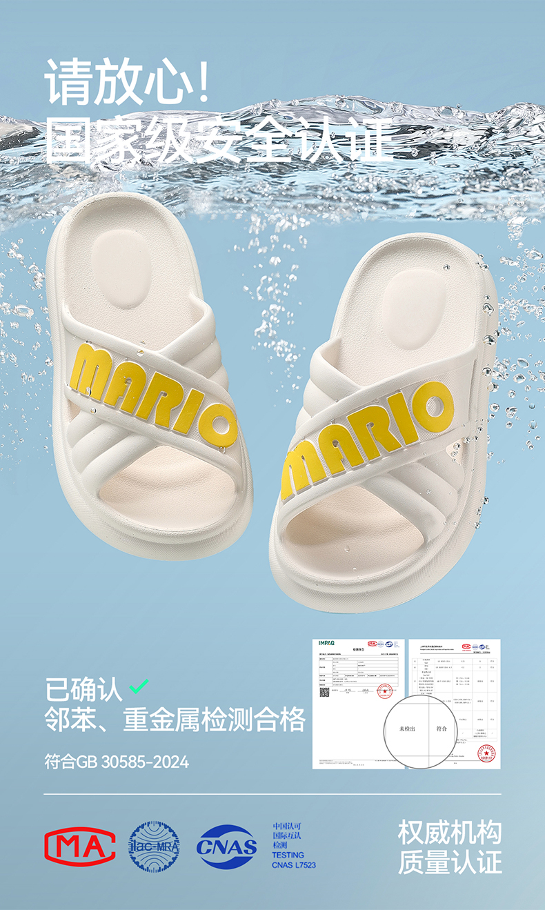 幸福玛丽 MARIO中大童凉拖鞋 ZY-3133 多色可选 简约 MARIO字母设计 轻软 EVA 材质久穿不累 耐磨波纹大底防滑稳当
