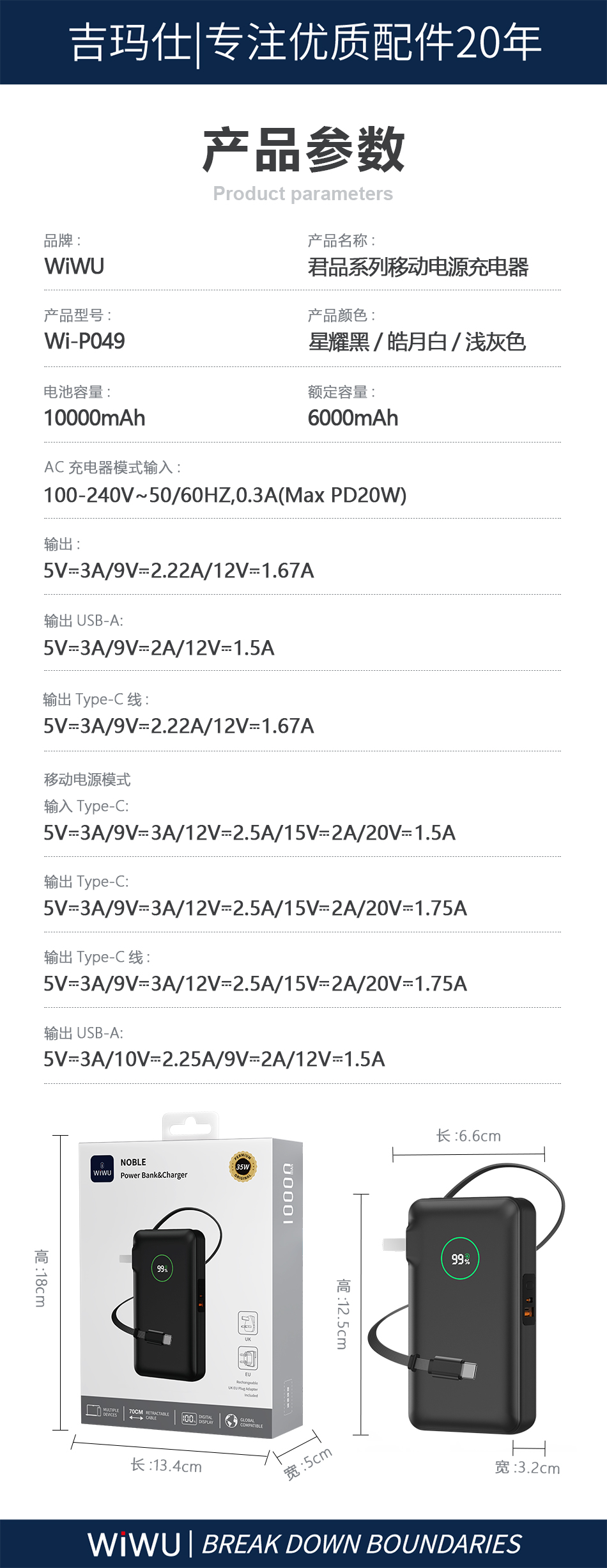 为悟 WiWU 君品系列多功能移动电源 Wi-P049 10000毫安
