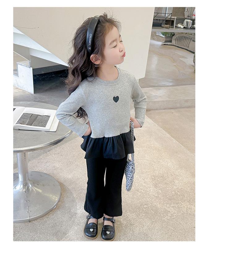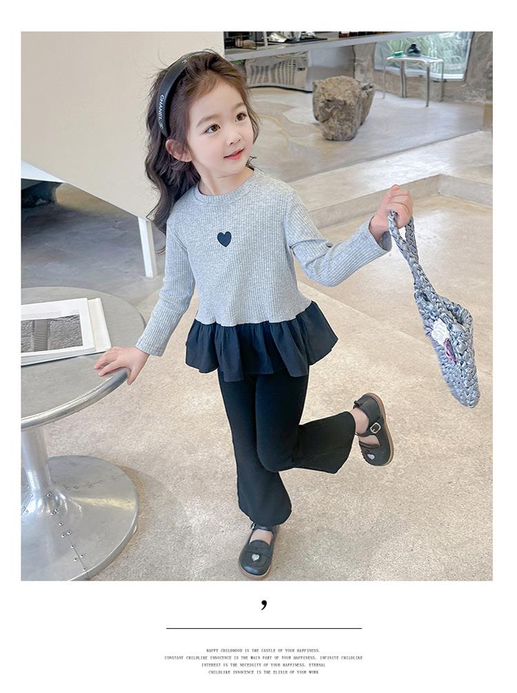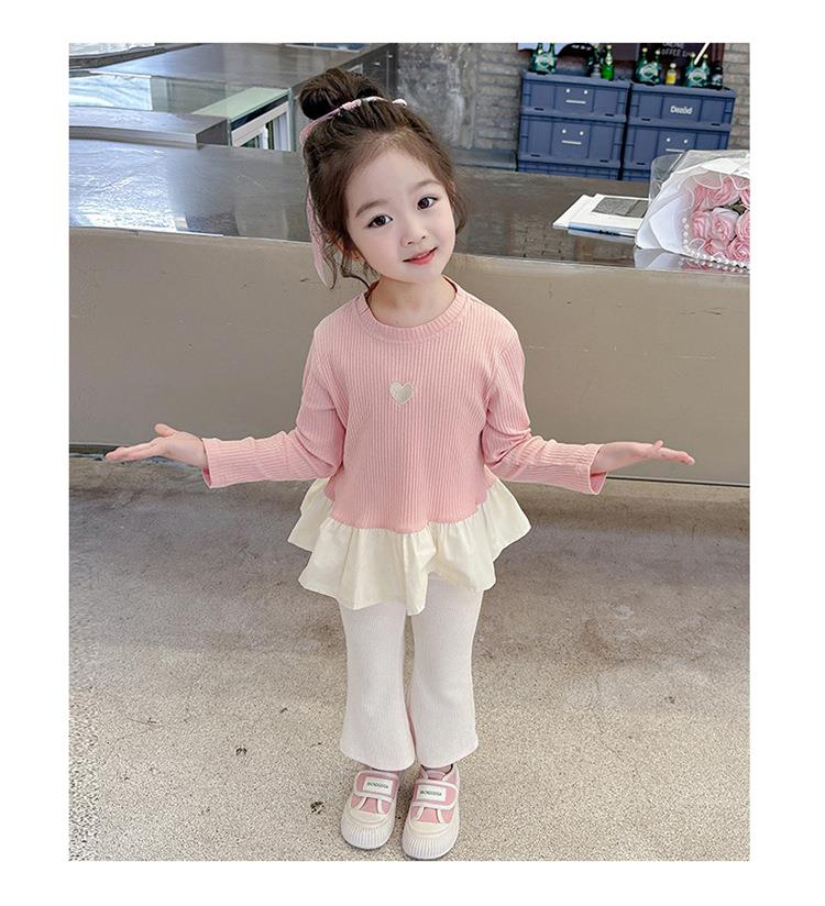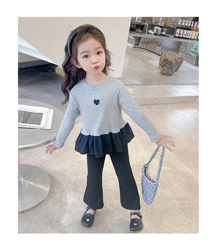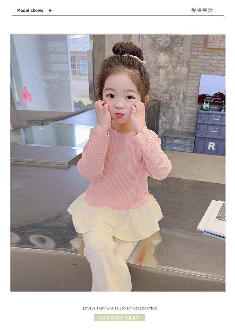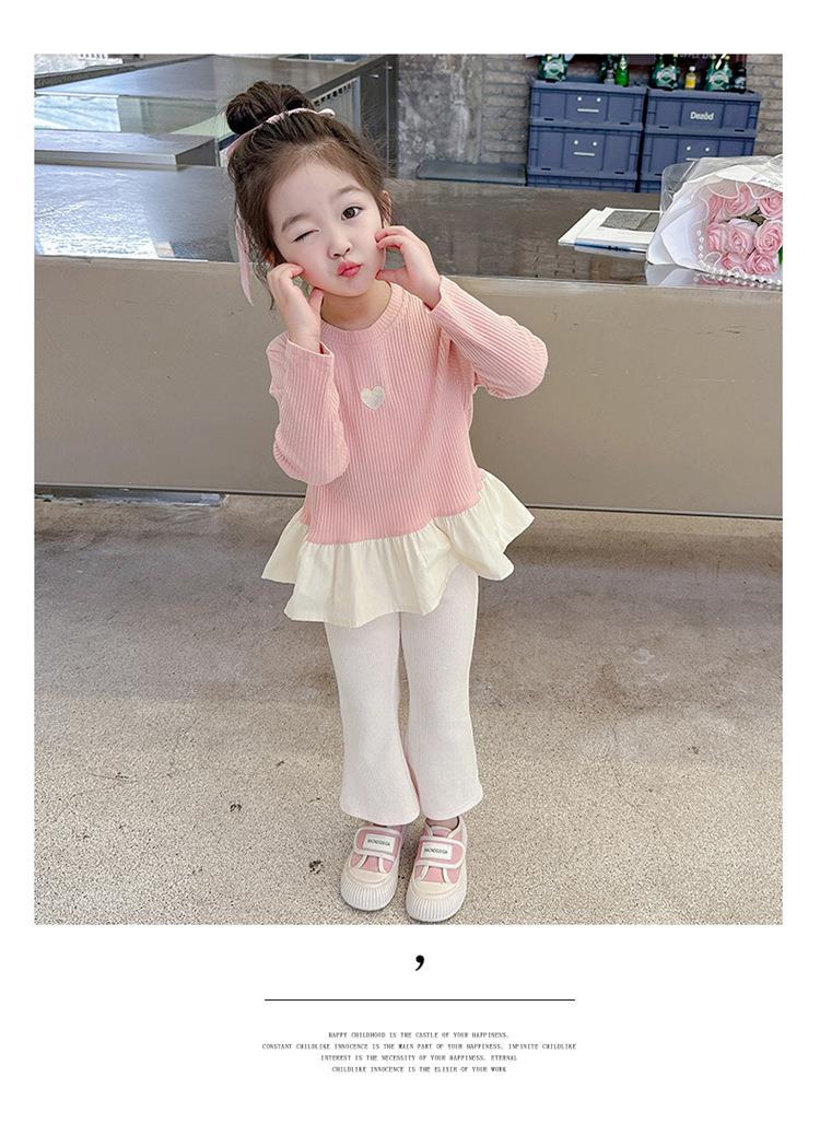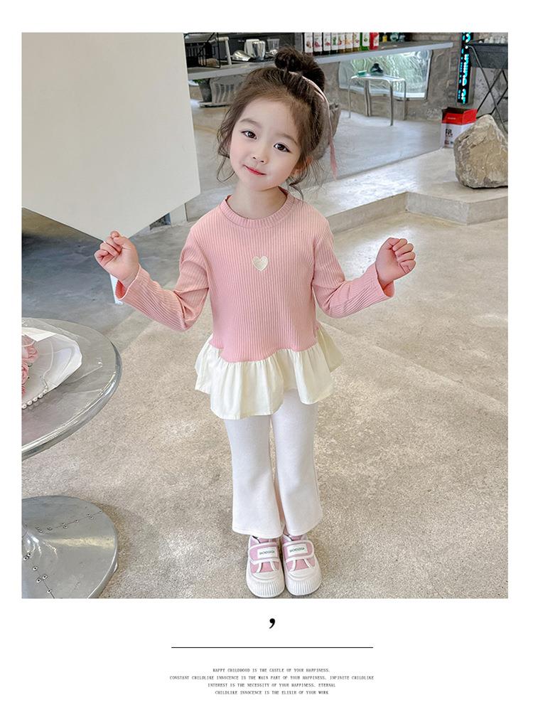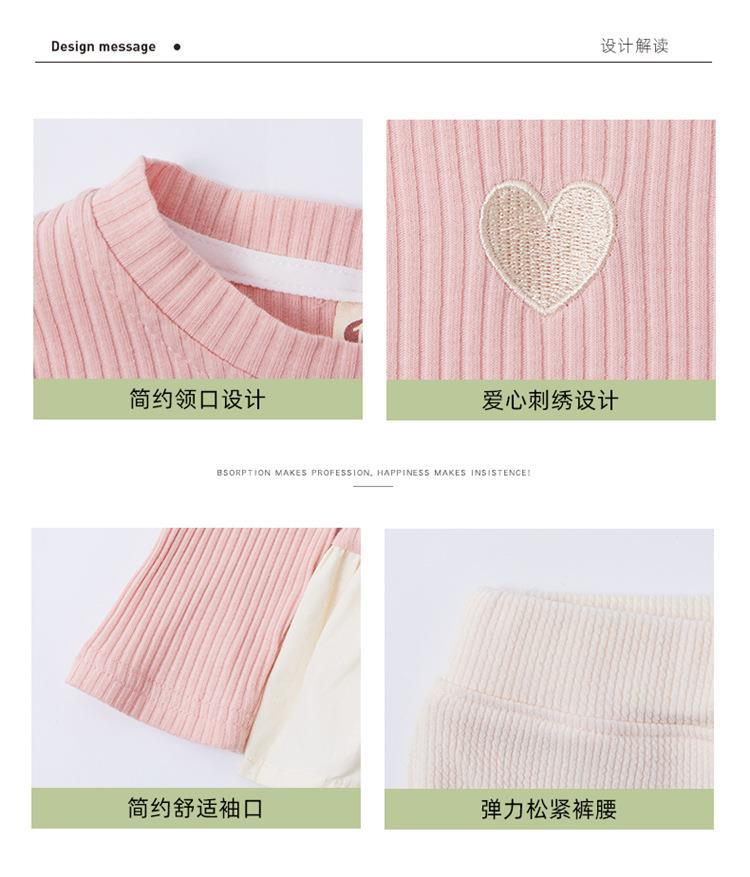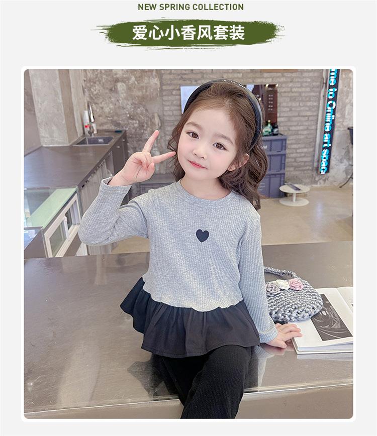 女童爱心坑条套装2024春季新款韩版两件套一件代发洋气网红童装潮