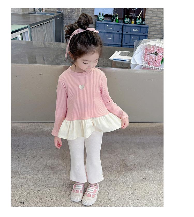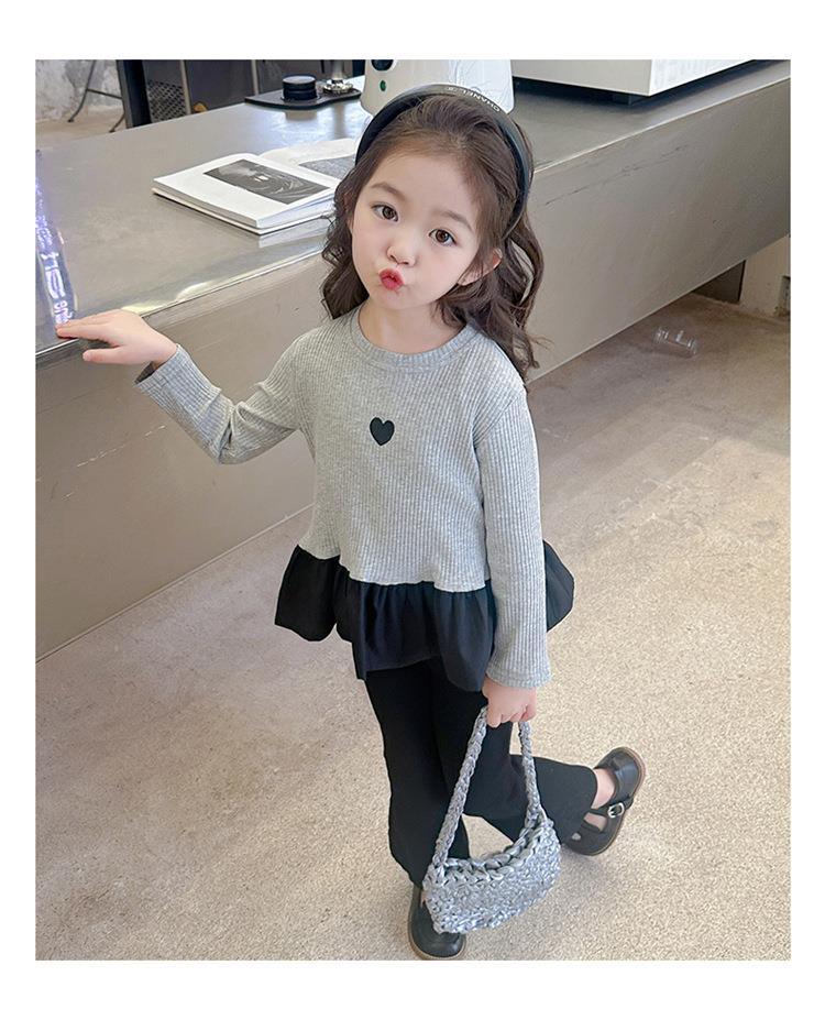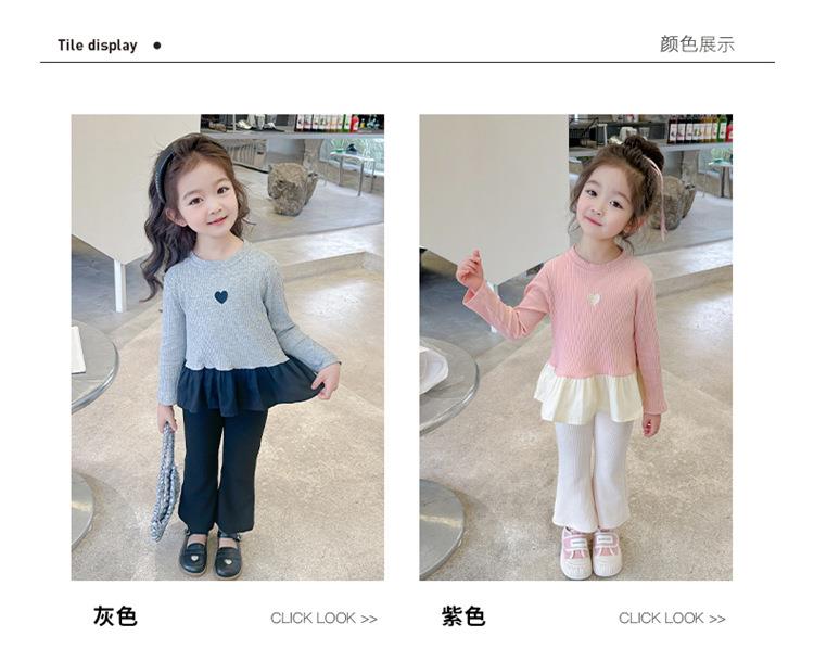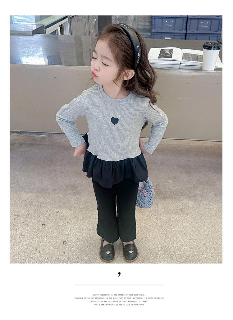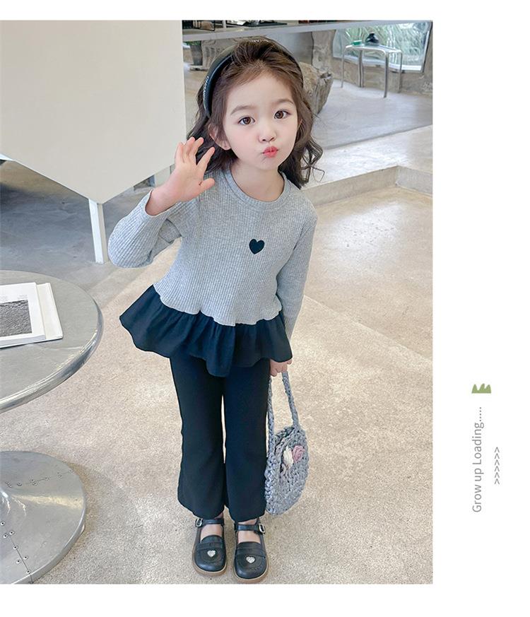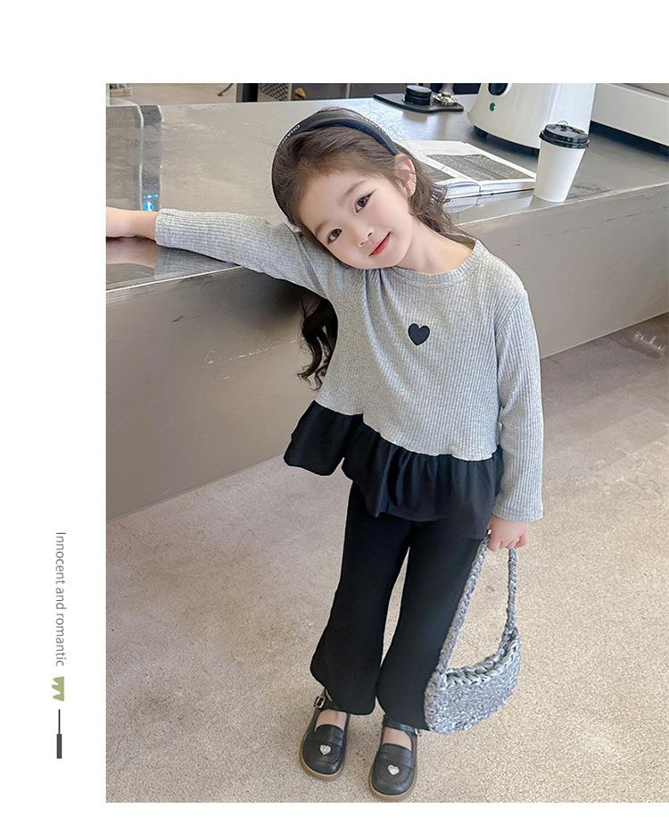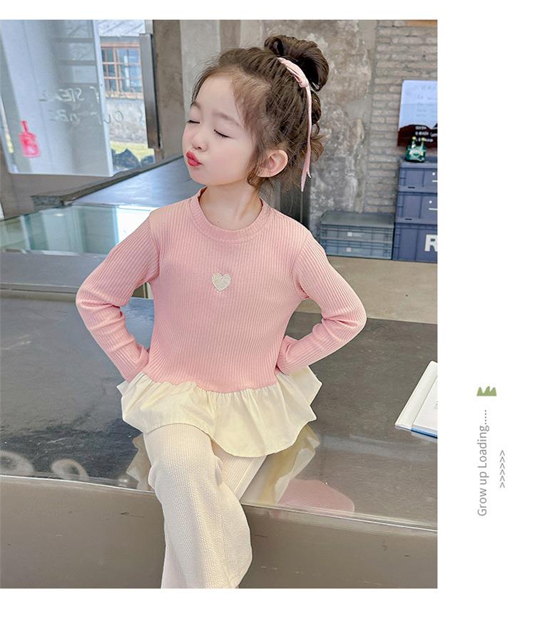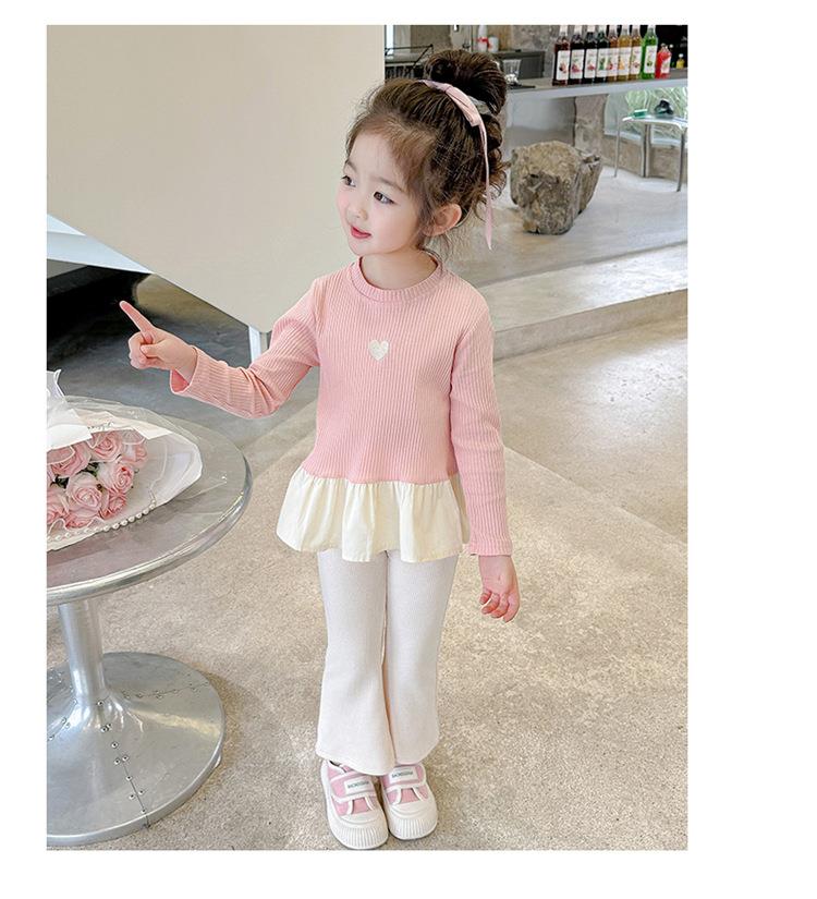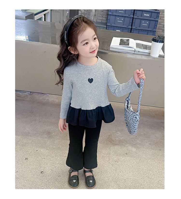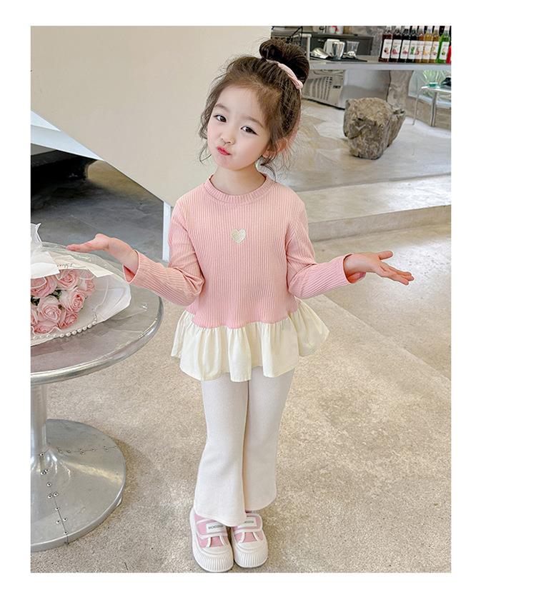 女童爱心坑条套装2024春季新款韩版两件套一件代发洋气网红童装潮
