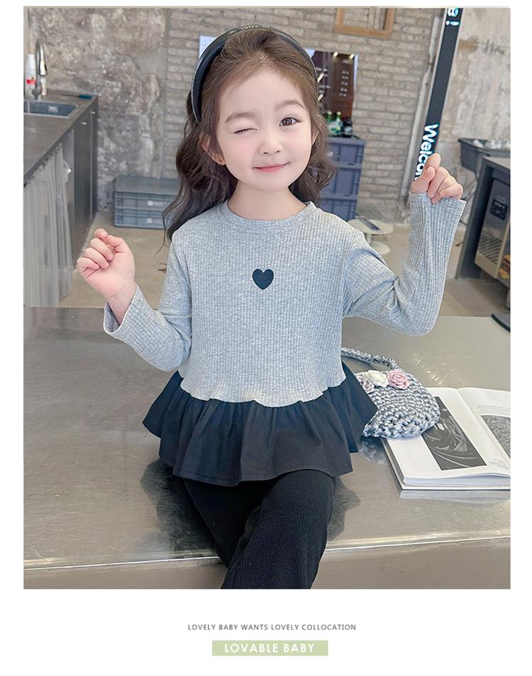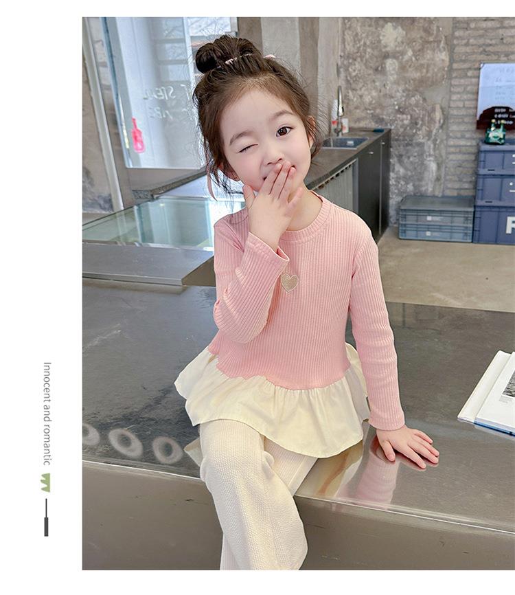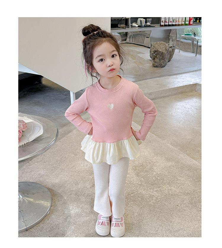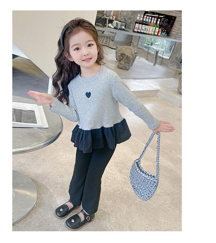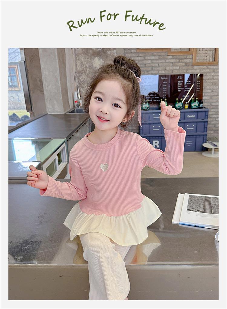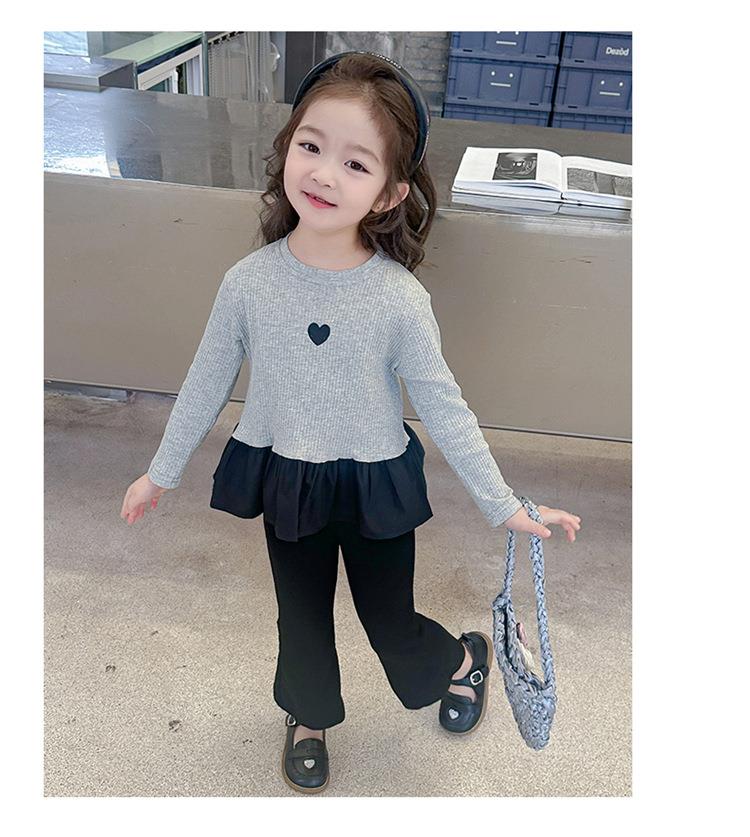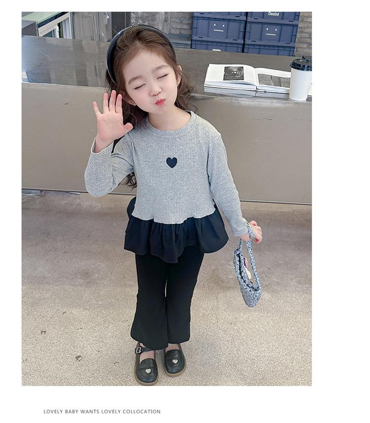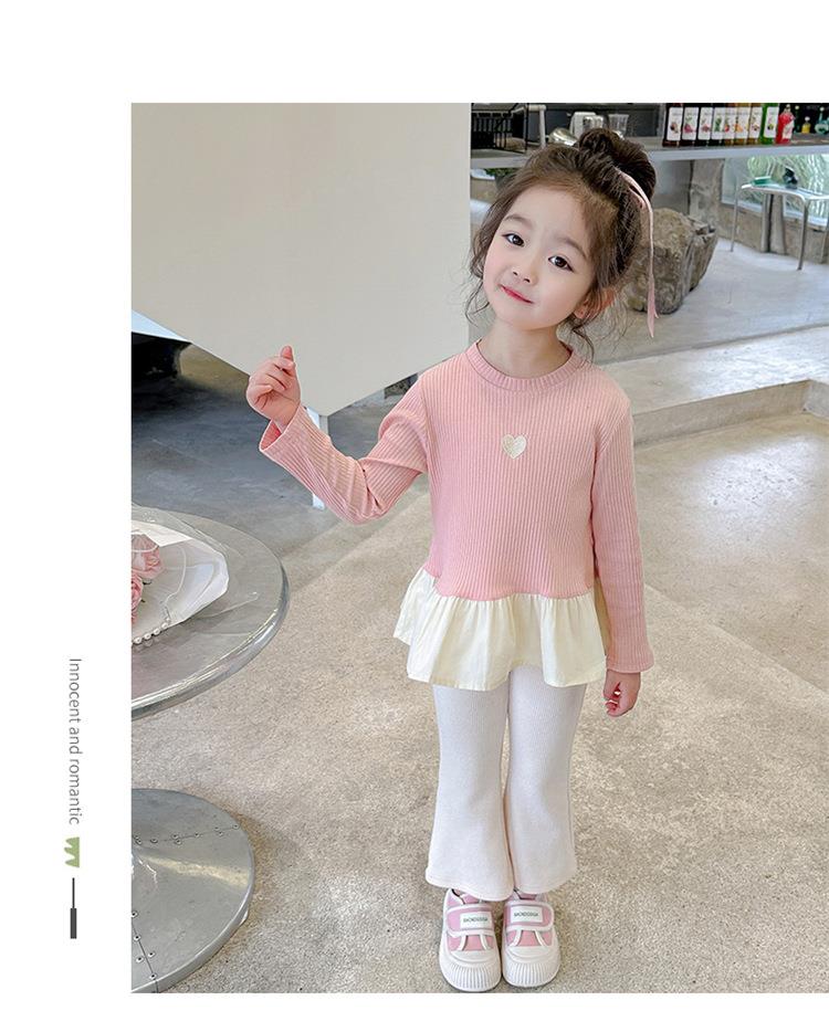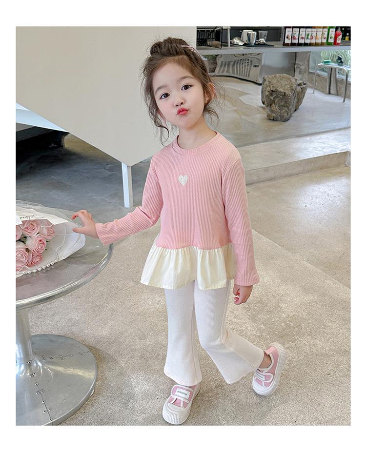 女童爱心坑条套装2024春季新款韩版两件套一件代发洋气网红童装潮