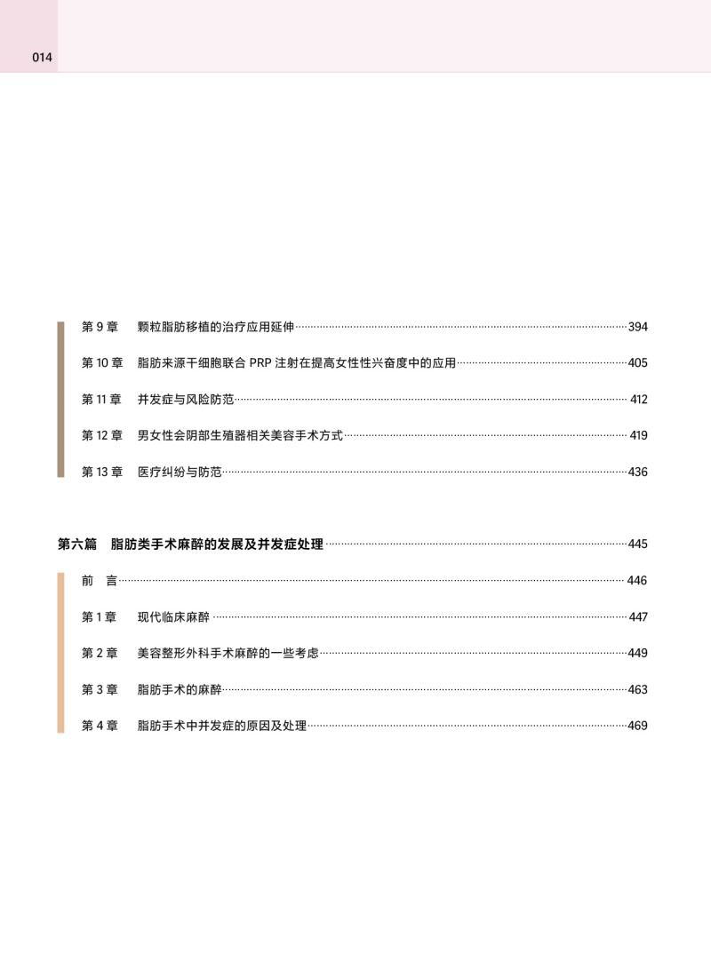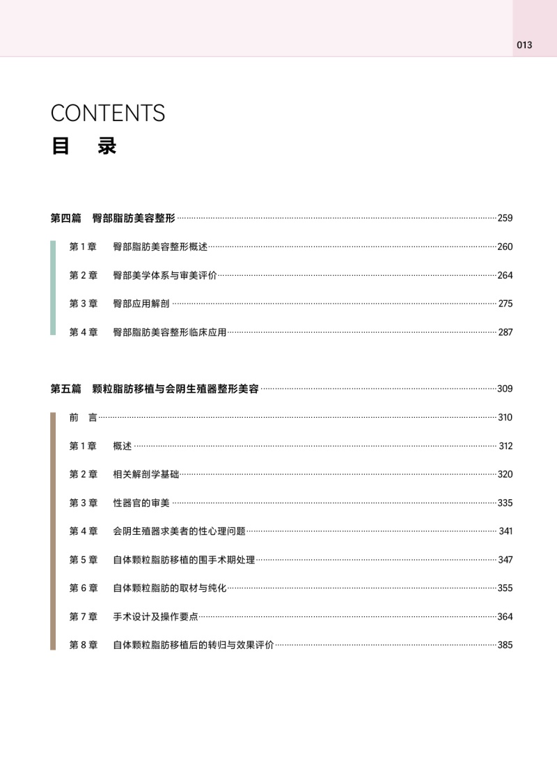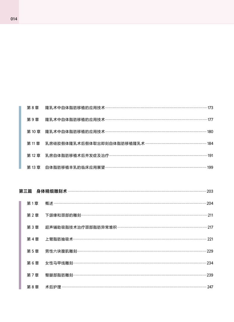 本书汇聚了国内多位身居临床一线的脂肪整形领域权威专家与资深医师的智慧与经验,通过丰富的案例分析、前沿的技术探讨以及深入的学术交流,力求为读者呈现一个全面、客观、专业的脂肪整形世界。本书共分为六个部分,第一部分阐述了面颈部的脂肪移植的美学原则、脂肪整形的设计原理的实操技术;第二部分阐述了四肢躯干脂肪体雕术的操作方法;第三部分阐述了乳房的美学研究以及脂肪隆乳的操作方法;第四部分阐述了臀部脂肪移植的设计、处理和存活问题;第五部分阐述了会阴生殖器官的脂肪移植美容整形新技术;第六部分阐述了脂肪整形手术的麻醉技术。本书内容非常具体,实用性很强,每个章节都详细叙述了成熟的手术技术,是一本不可多得的佳作。