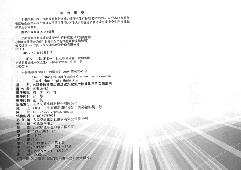水路普通货物运输企业安全生产标准化评价实施细则 人民交通版社股份有限公司