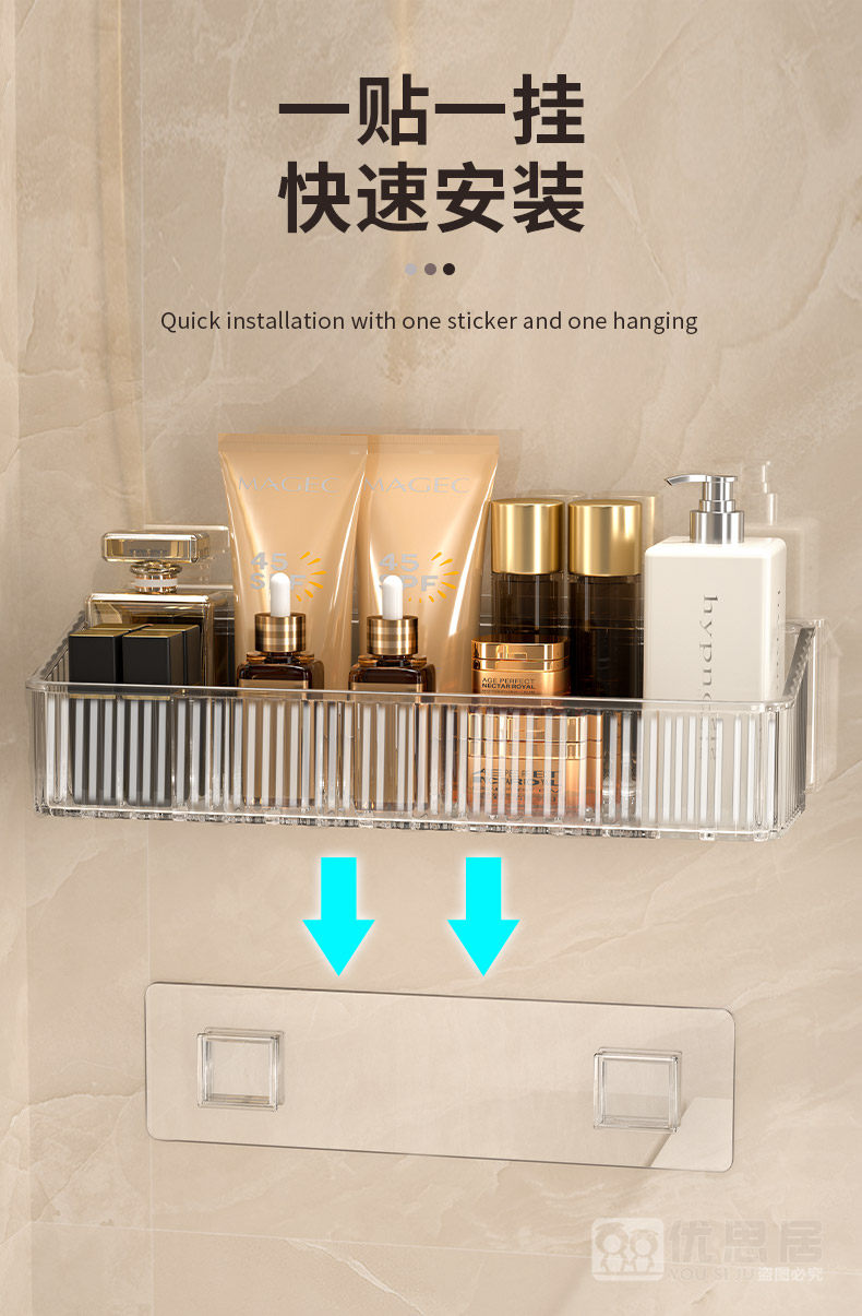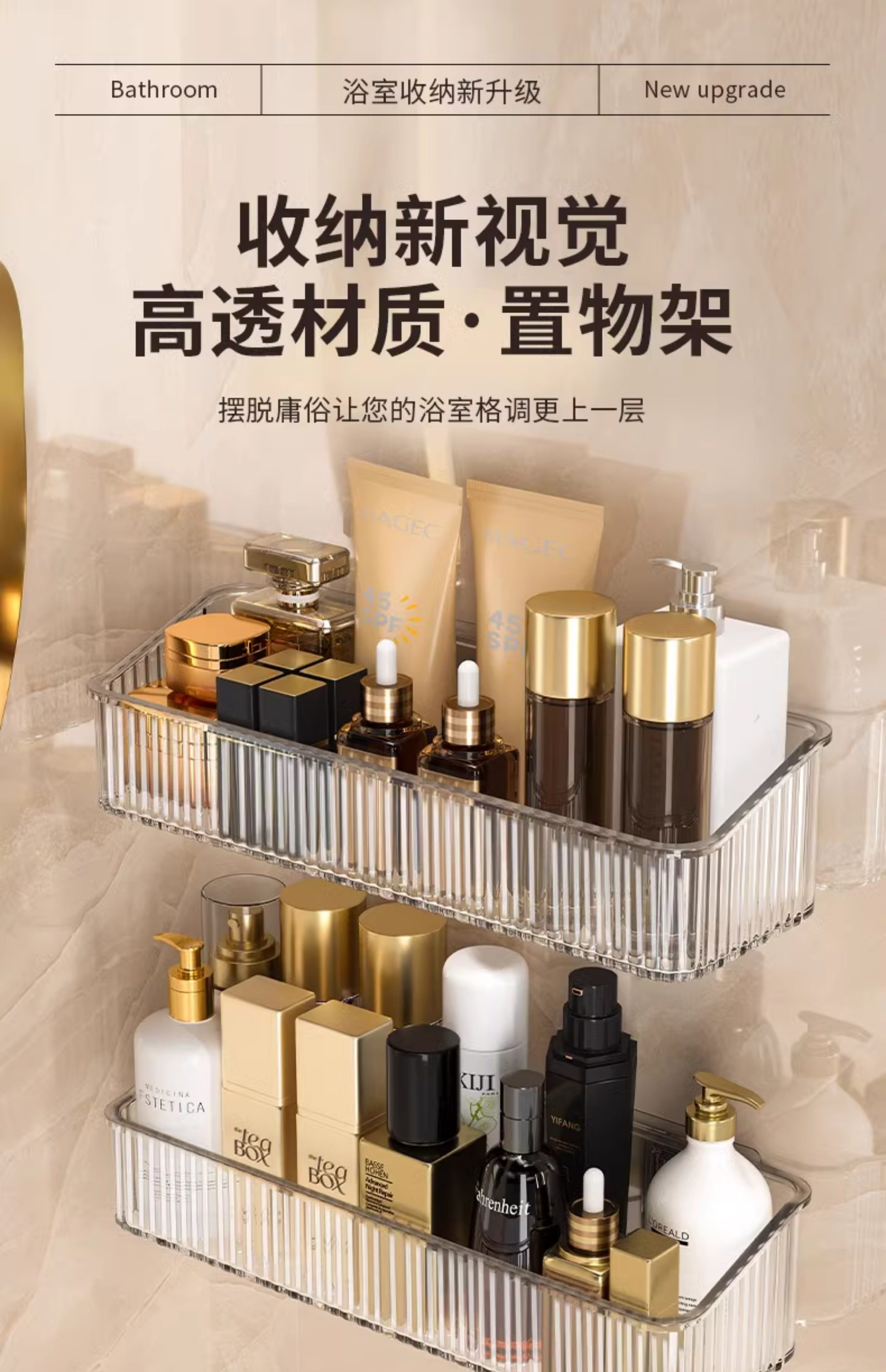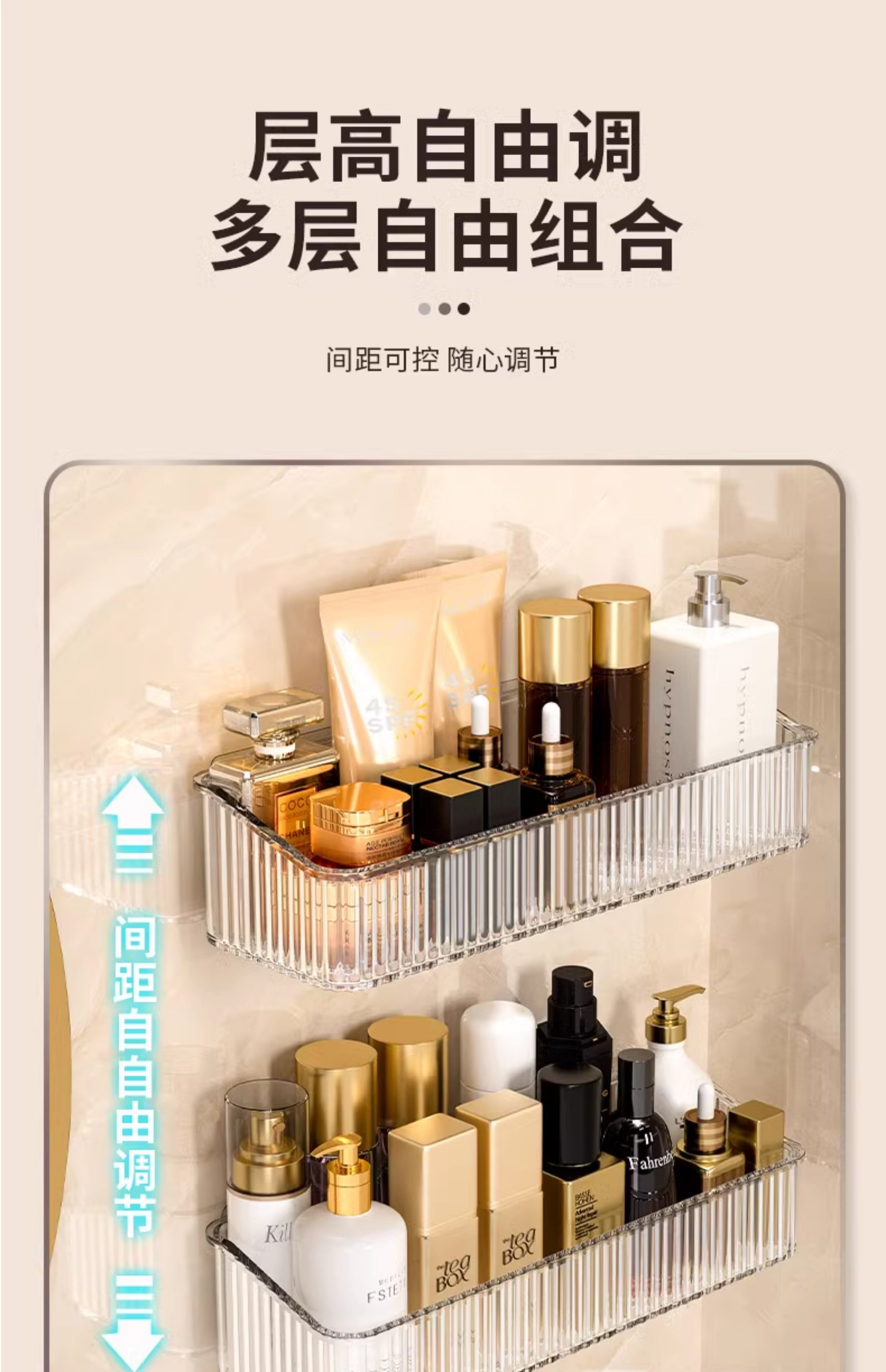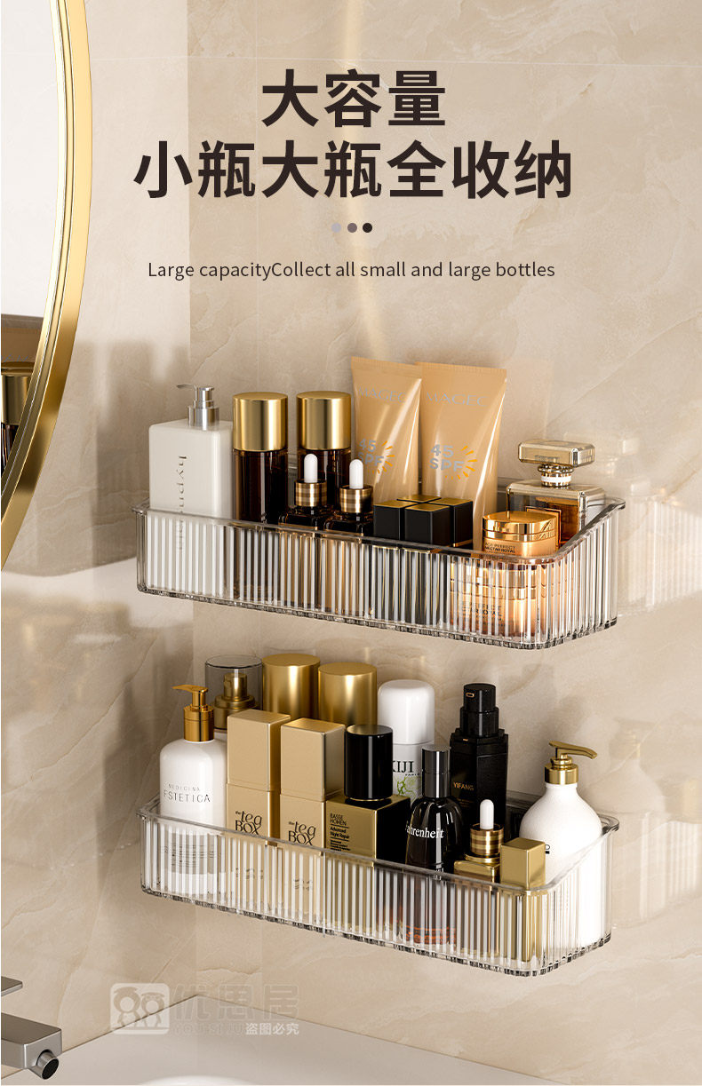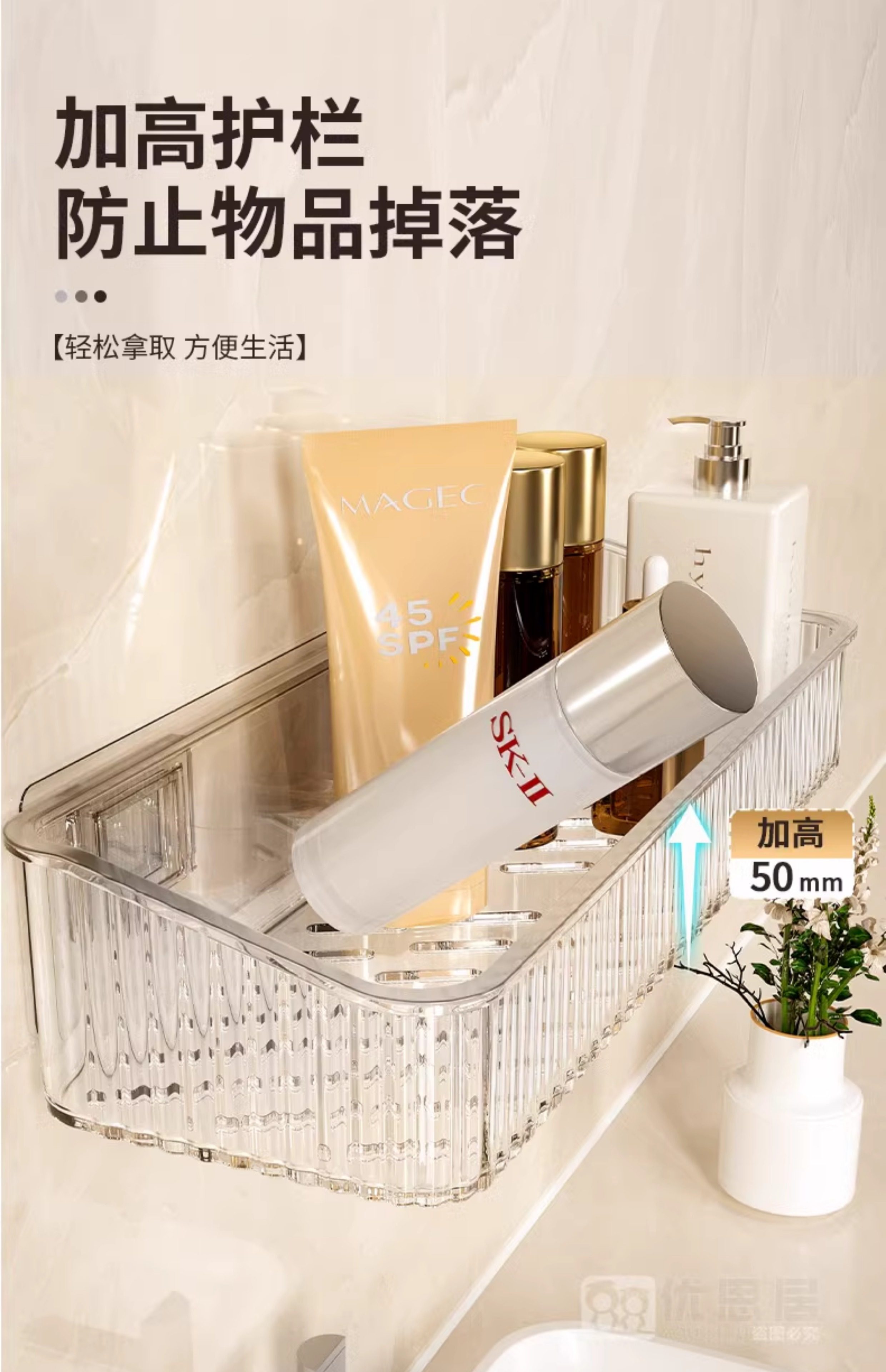 【加高护栏❗防止物品掉落】卫生间置物架浴室厕所洗手间免打孔壁挂洗漱台墙上化妆品收纳架子。rg