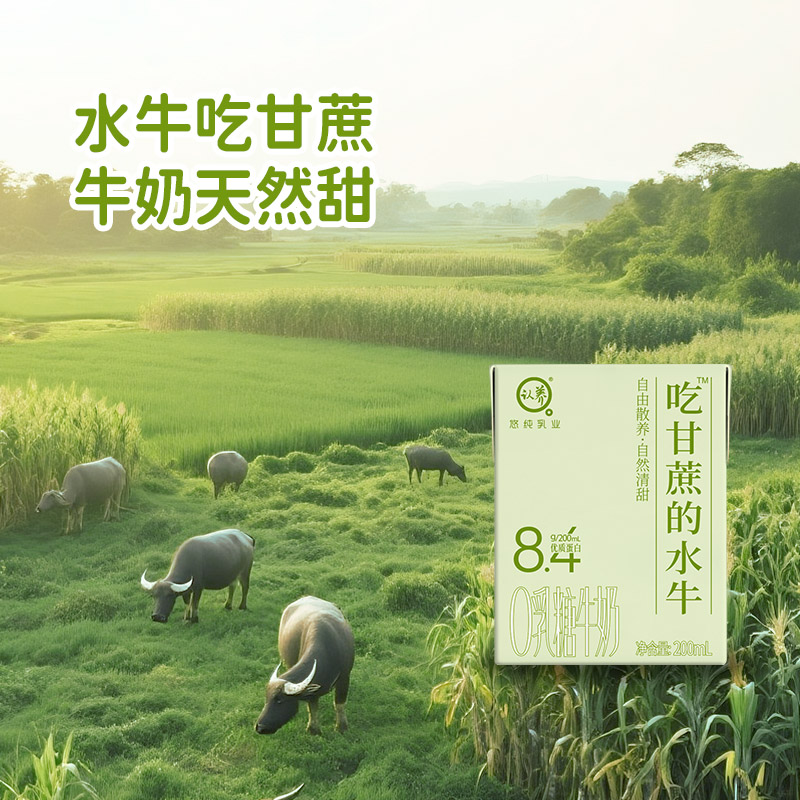 ⁵近效26.5清89.9元3箱【0乳糖-吃甘蔗的水牛200ml】生牛乳+生水牛乳+乳糖酶 一箱10瓶 YY05-QTT-SHYC