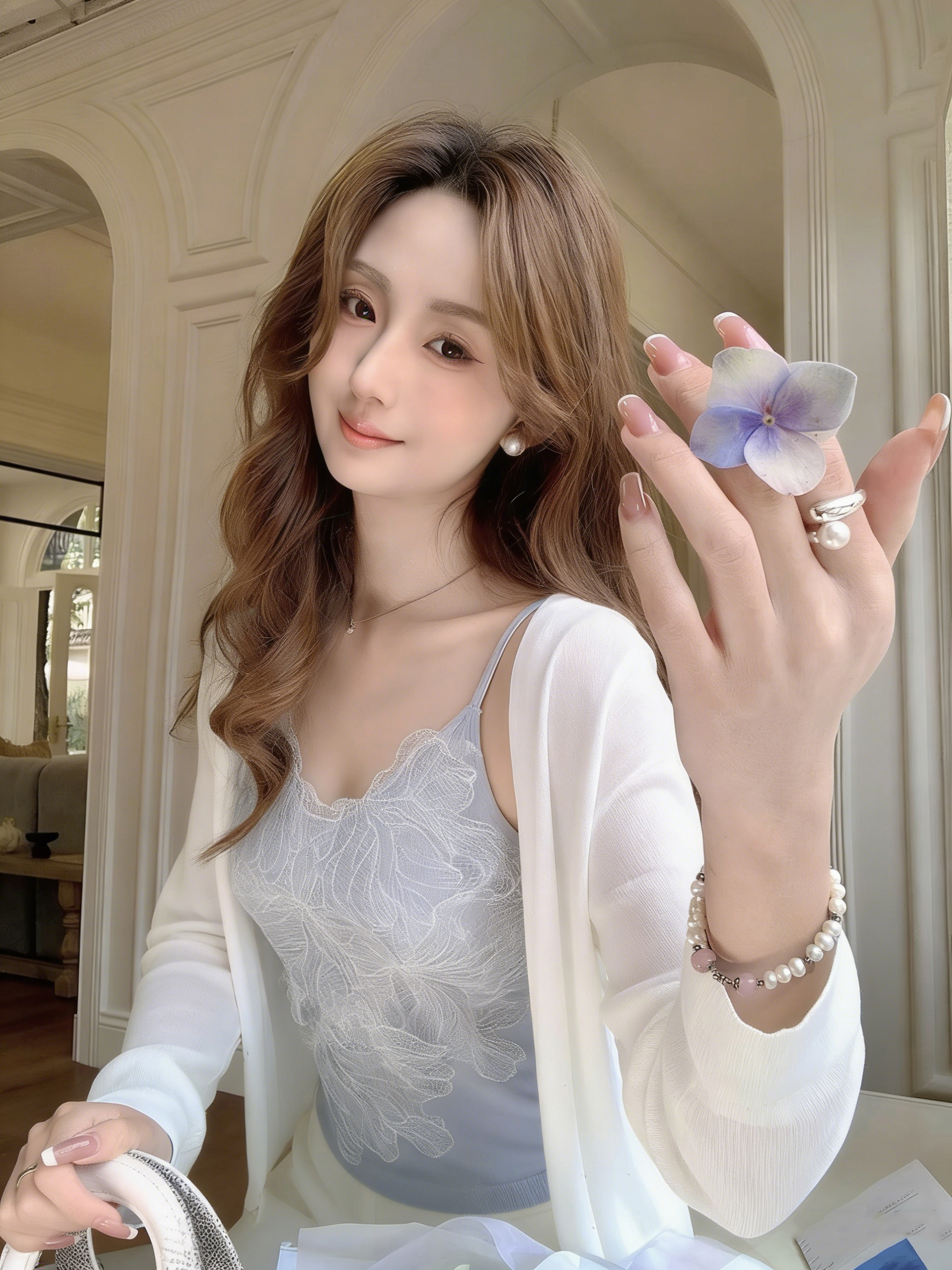 张心子【淡颜美女】荡领系绳立体花针织衫法式温柔上衣 U2602035