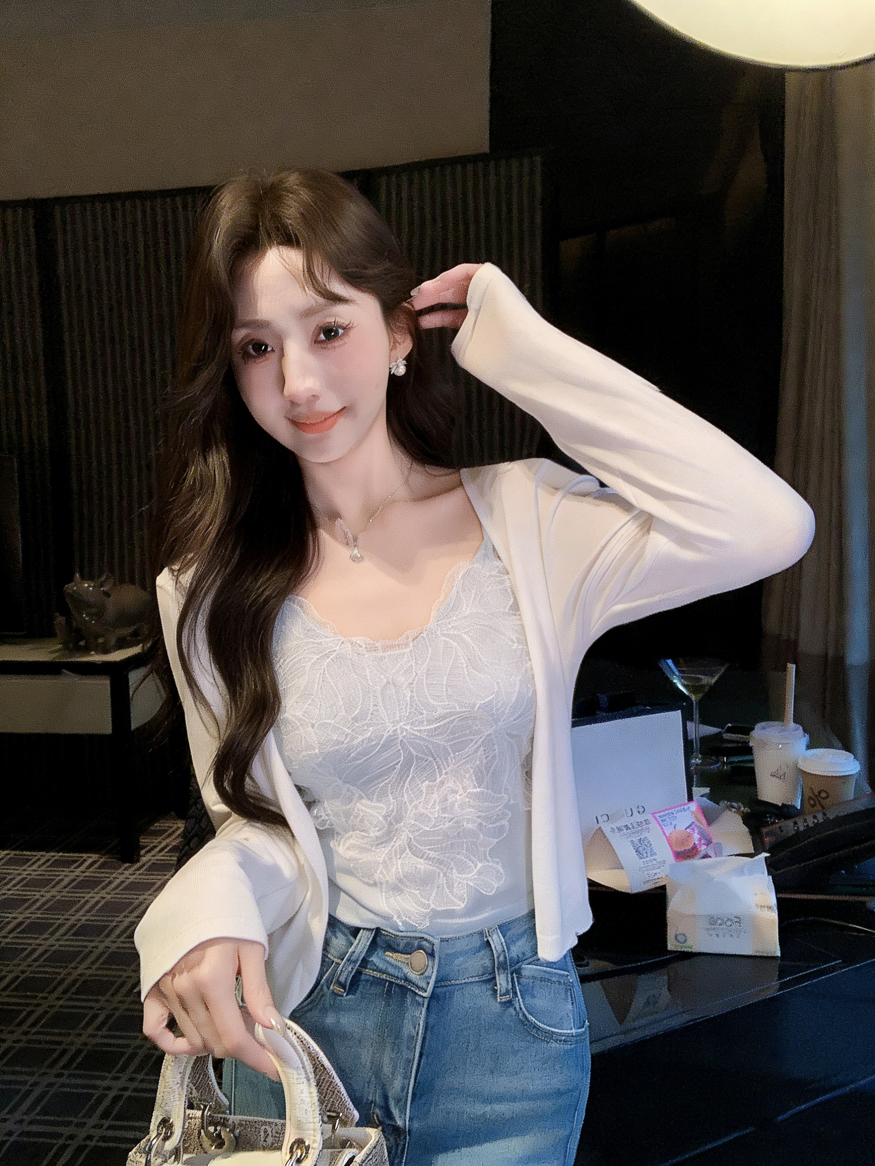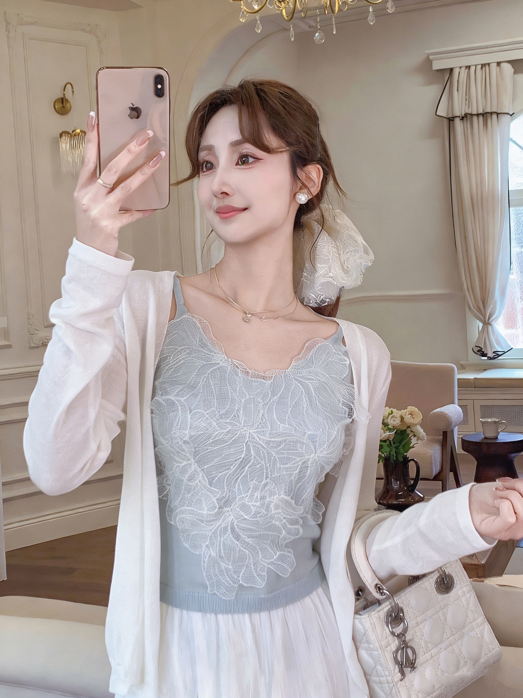 张心子【万人迷】春夏百搭神器蕾丝拼接吊带背心上衣 U2603017
