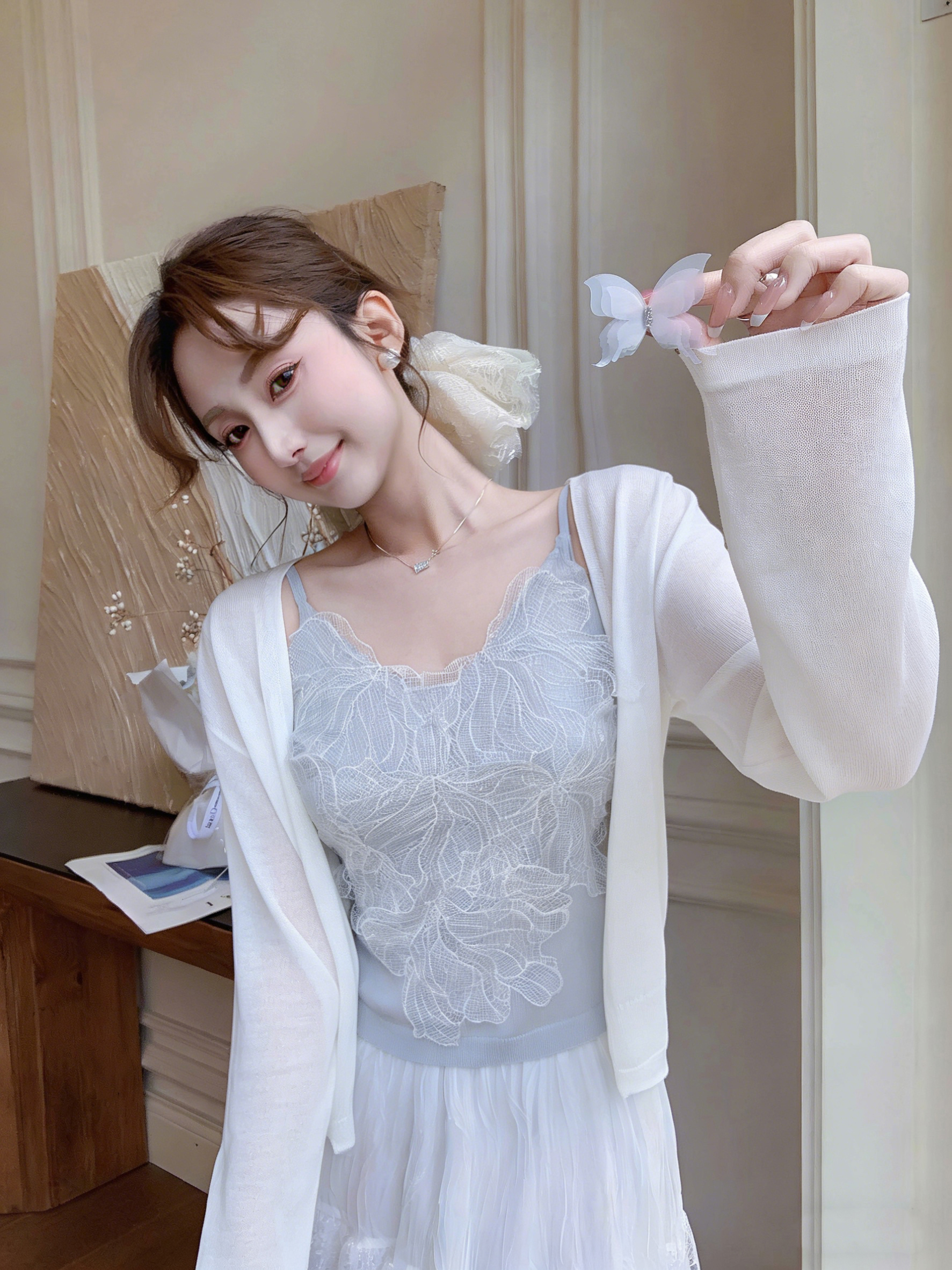 张心子【五色开衫】防晒针织外套女春日新款绝美木耳边长袖上衣 U2602083
