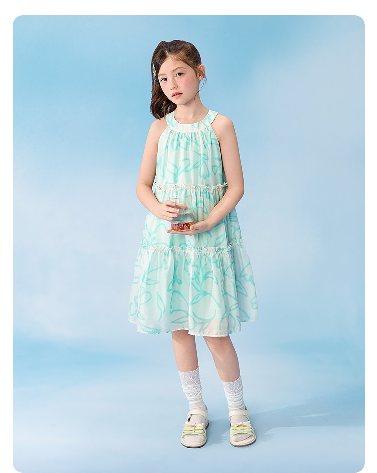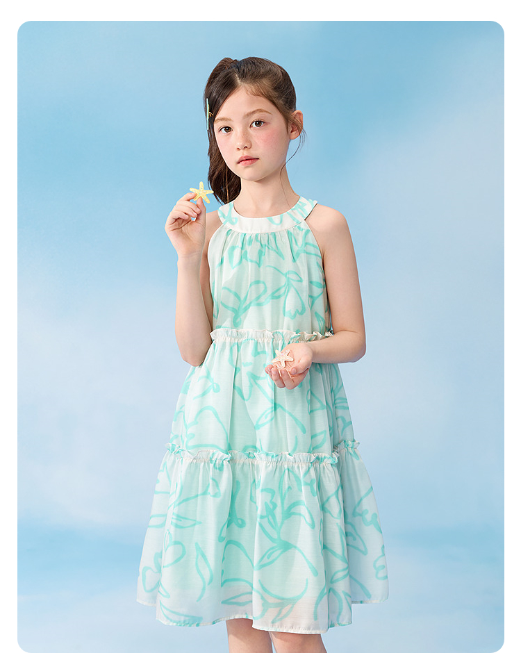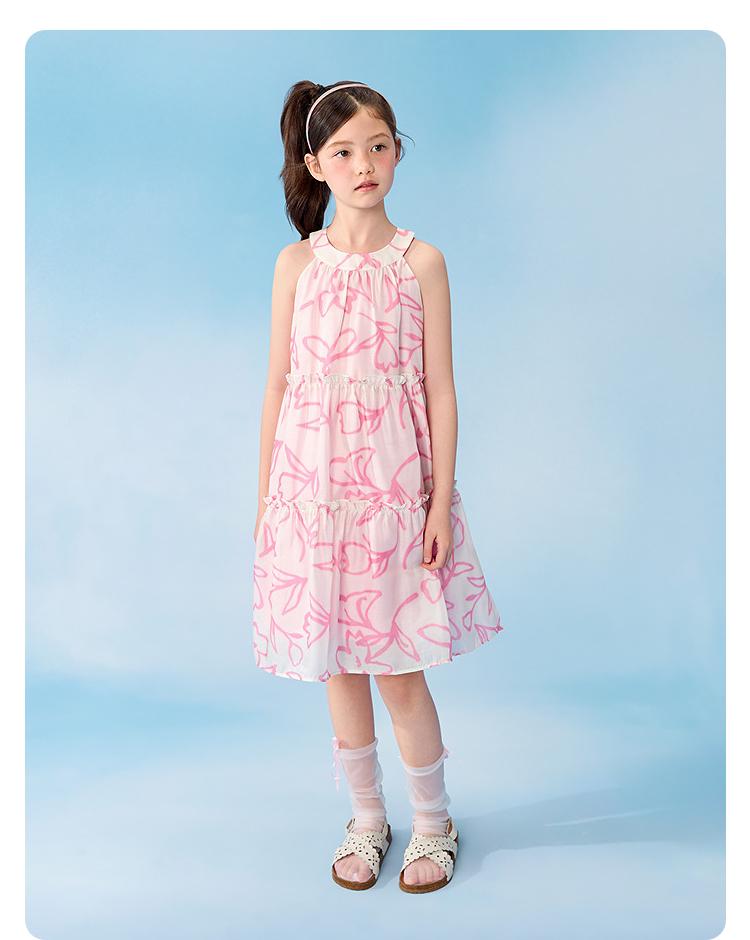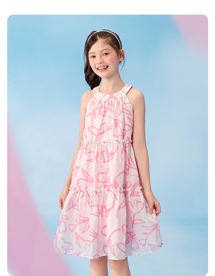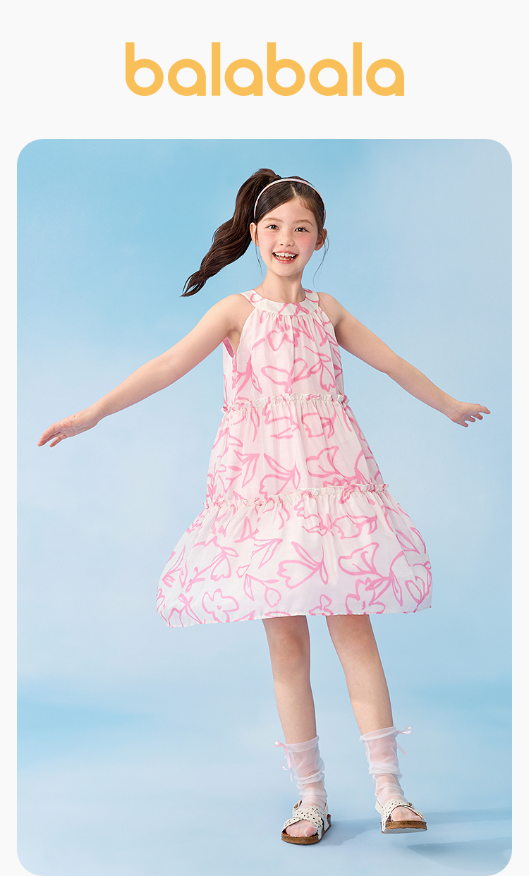 【balaOne】巴拉巴拉童装儿童裙子女童挂脖连衣裙2026夏新款甜美