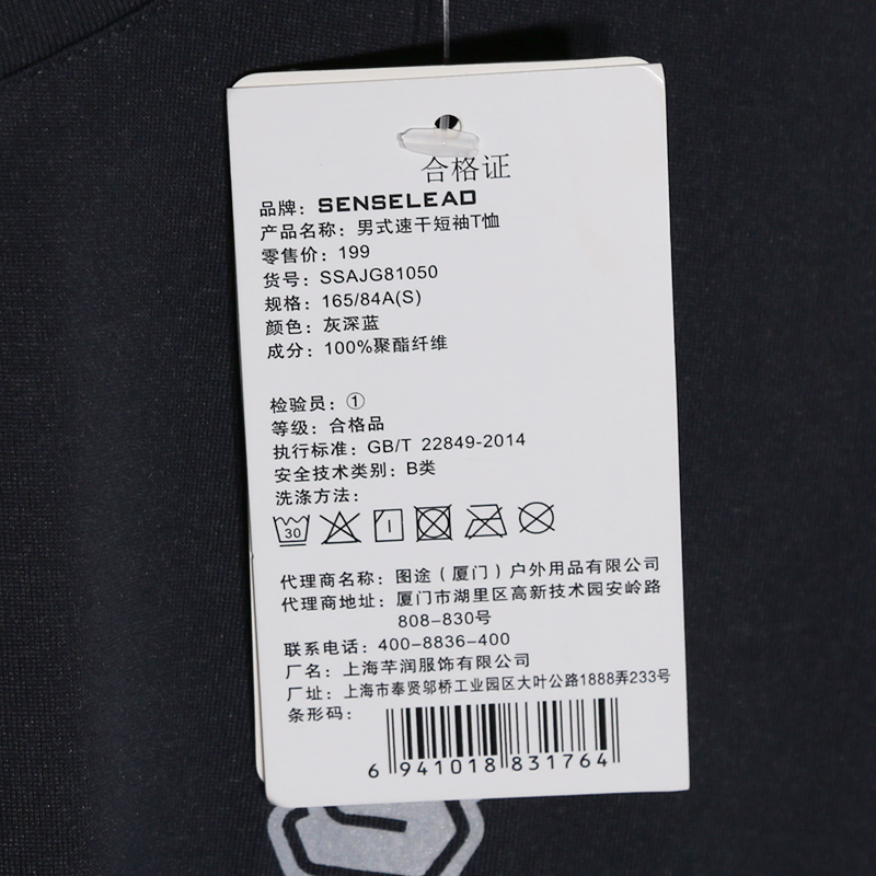 Senselead森力/男式速干短袖T恤 SSAJG81050