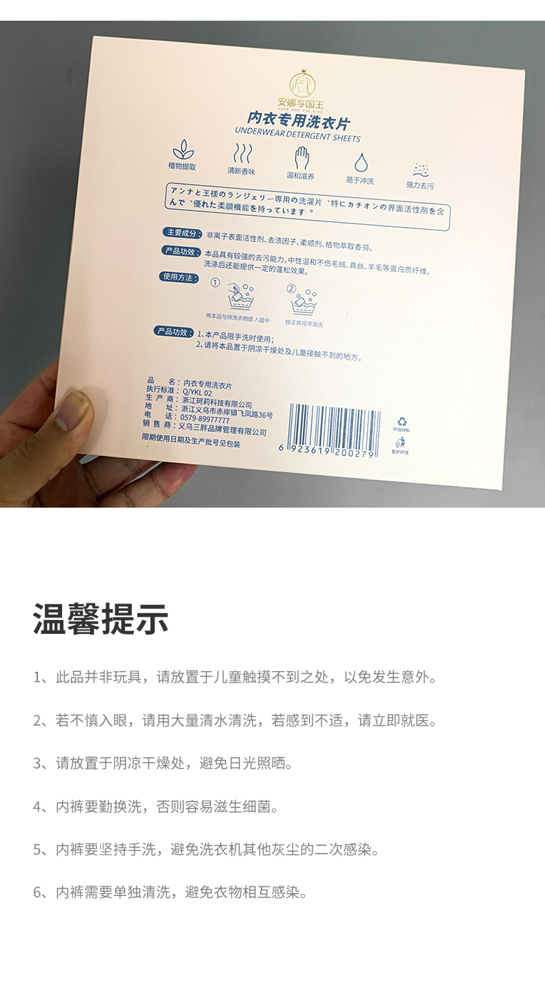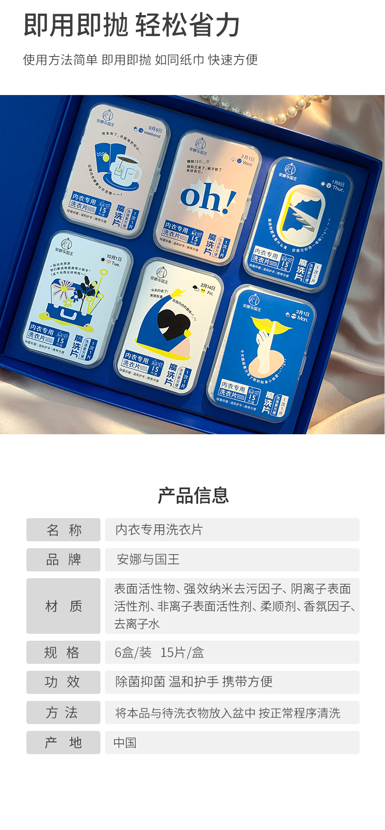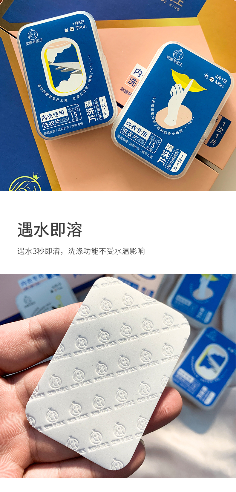 内衣要用专业的洗衣片,安娜与国王内衣清洗片让你在清洗的时候根本毫不费力啊。再也不怕内裤黄黄的或者弄到姨妈血洗不掉了!独特的唯美包装真的特别有好感一盒可以洗超久了!