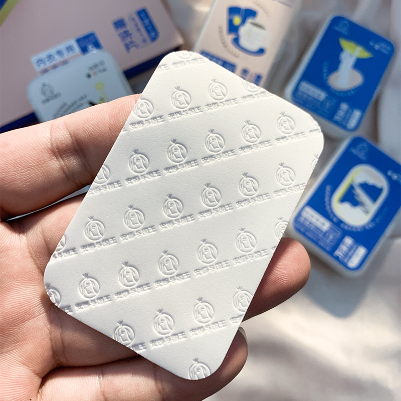 一秒即化 去除血渍:轻松分解血渍、白带、分泌物等各种污渍,放置时间久的污渍同样适用。清洗剂的质感比较浓稠,每次只需要一片的量,特别省,一盒能用好久