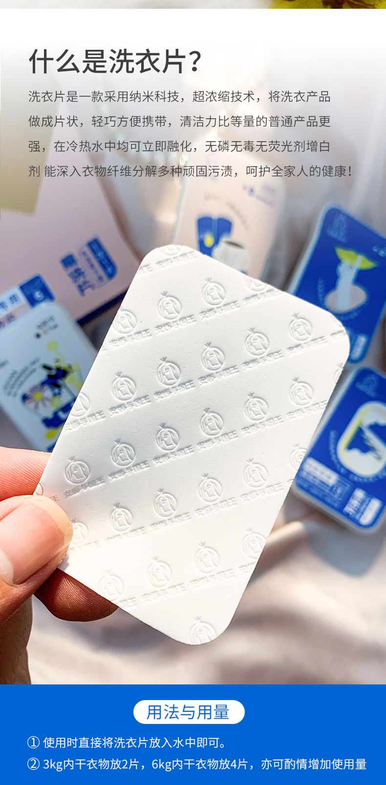 使用也炒鸡方便!只需一秒就即可溶化 搅拌下直接有泡泡可清洁,就能轻松去除血渍、污渍,抑菌除味,特别适合用清洗女生内衣裤,特别是姨妈血,亲测好用哦。一片式清洁片,用量精确,设计超人性化。