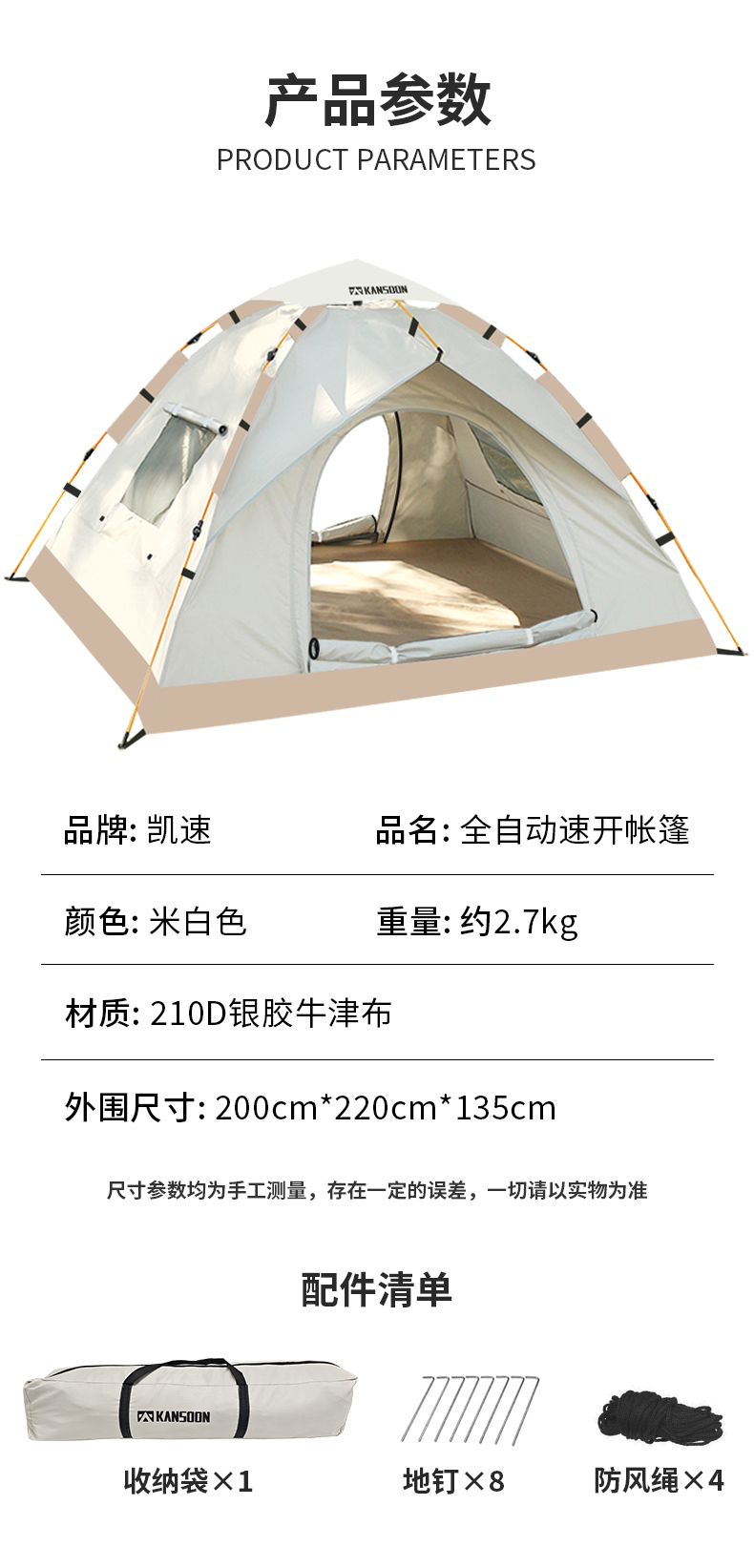 凯速 户外全自动帐篷 200cm*220cm*135cm ZP02