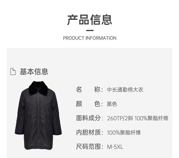 【中长通勤棉大衣】冬季 户外防泼水保暖棉衣棉服外套