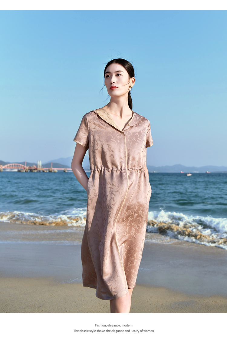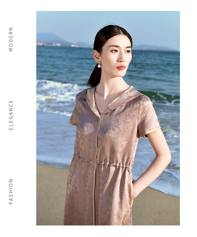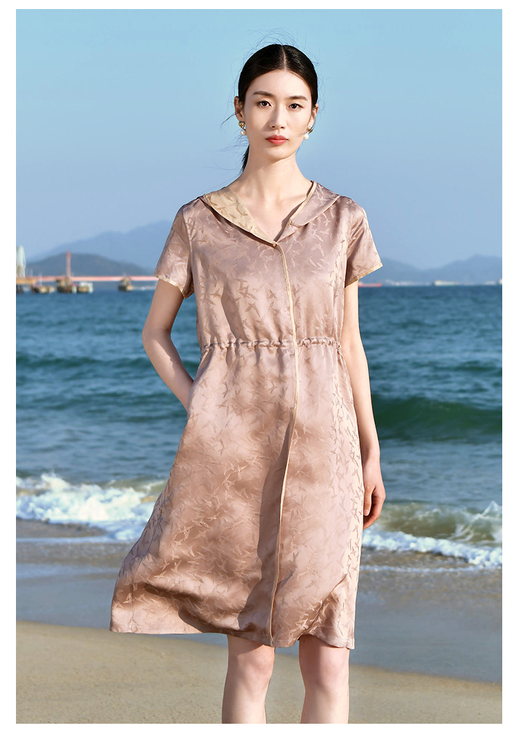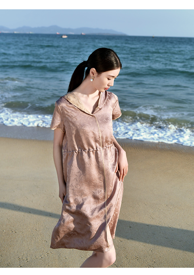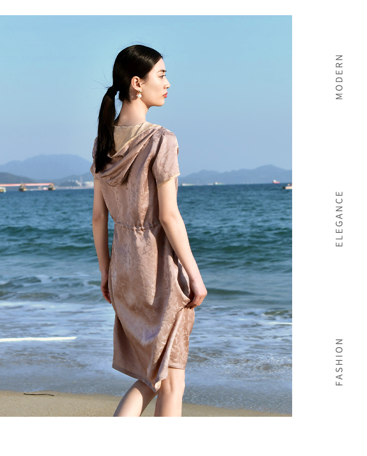 佐尔美夏季新款 连帽休闲提花100%桑蚕丝真丝连衣裙女E32LS81