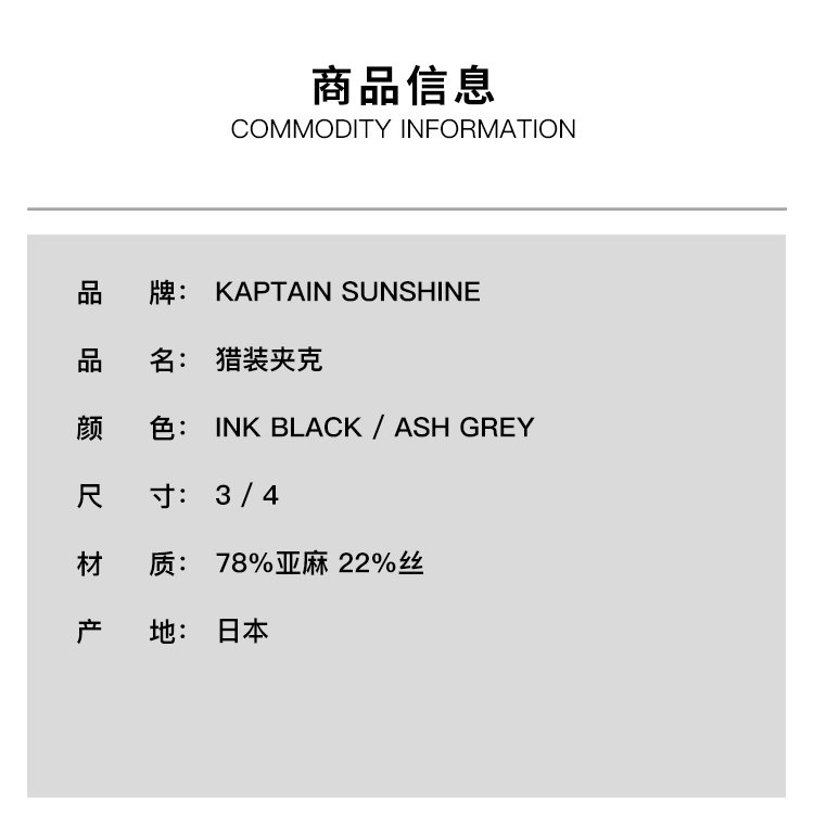KAPTAIN SUNSHINE Safari Shirt Jacket 亚麻真丝混纺猎装夹克