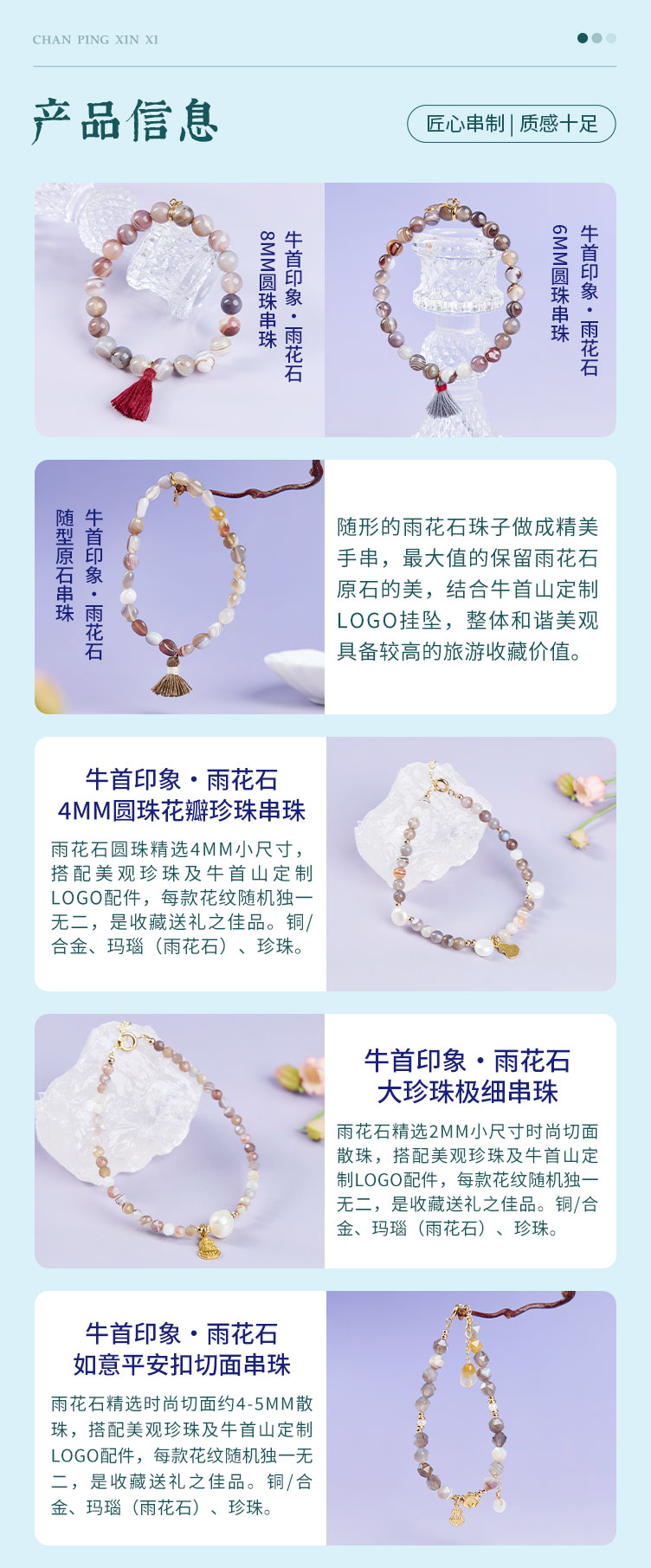牛首山文创雨花石系列串珠国风手饰送闺蜜南京纪念品生日礼物
