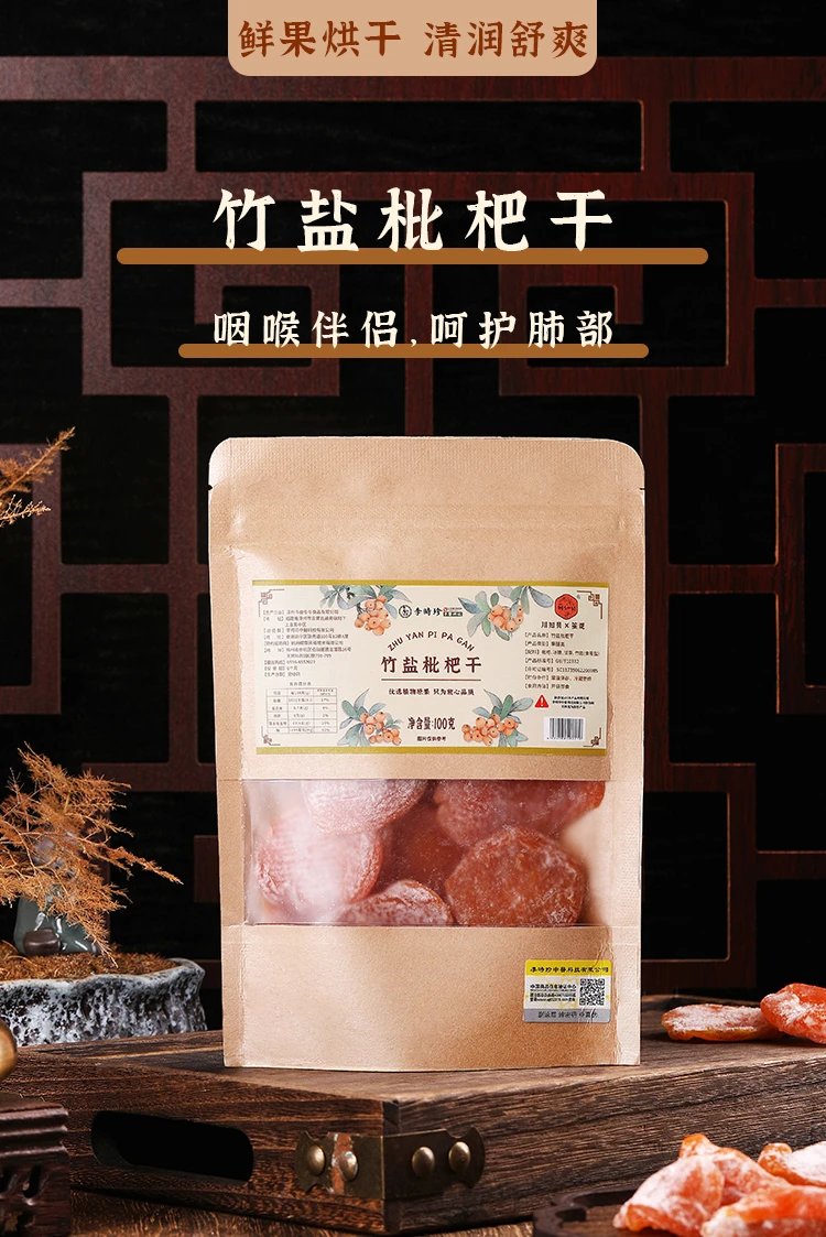 【秋季润肺】李时珍竹盐枇杷干 鲜果烘干 果实饱满 清润舒爽 养肺润肺 酸甜肉厚 100g/袋