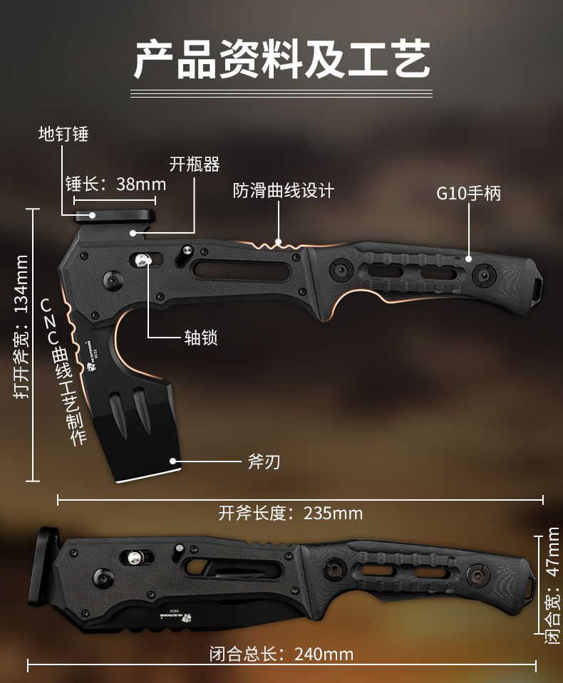汉道洛克疾风斧G10手柄斧子开山斧劈砍斧头
