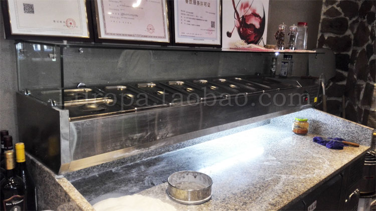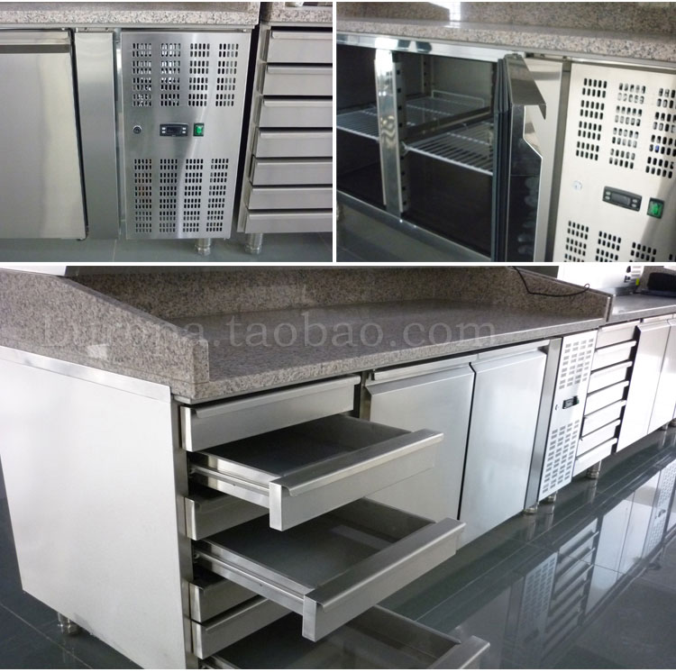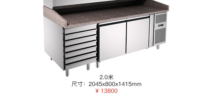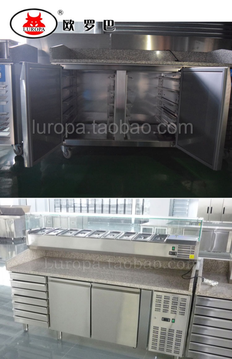 LU-2600欧罗巴披萨操作台1.5 1.8 2米pizza放料台不锈钢大理石桌面冷柜LU-2600