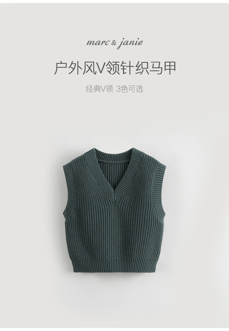 马克珍妮秋装新款 男童V领针织衫马甲毛衣 儿童上衣231820