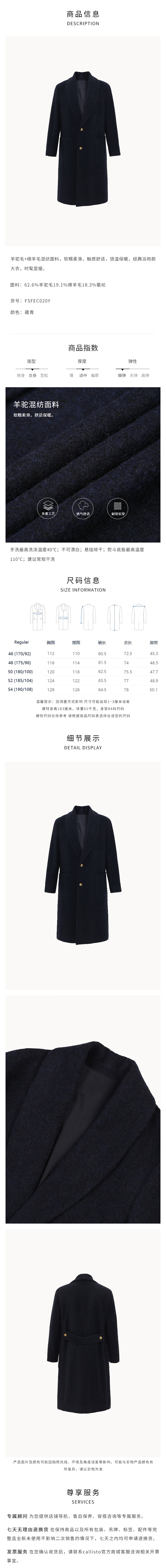 callisto藏青羊驼毛+绵羊毛混纺大衣 FSFEC020Y
