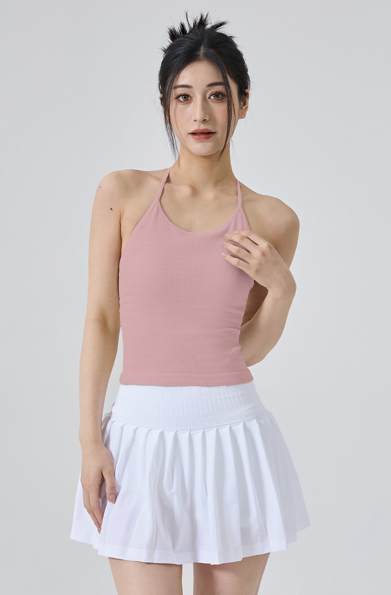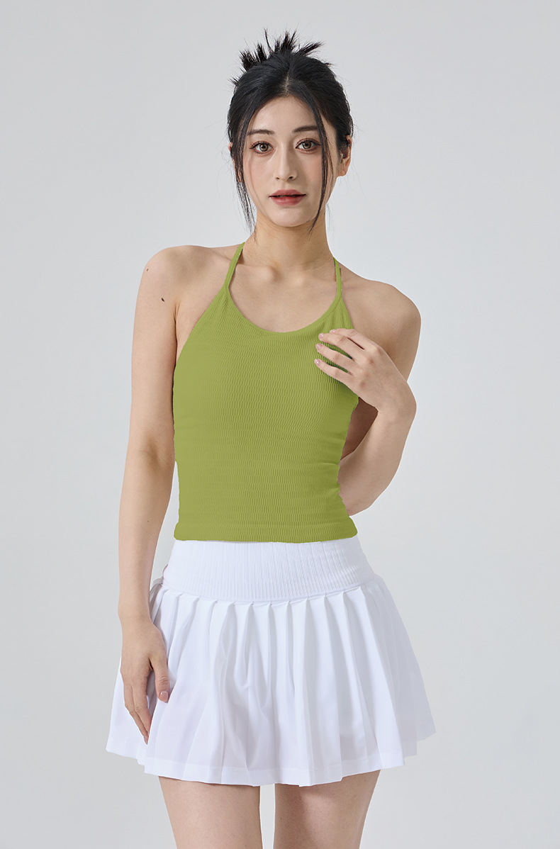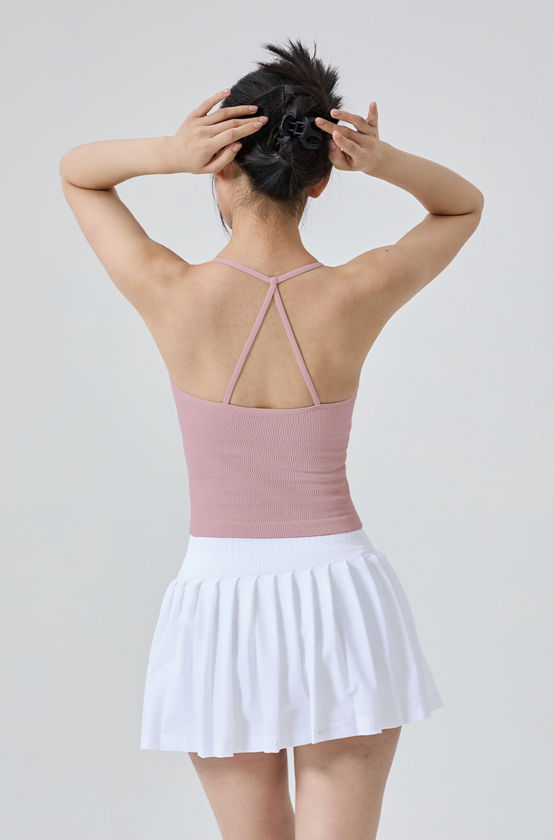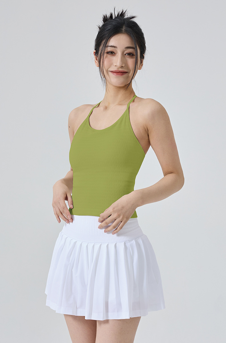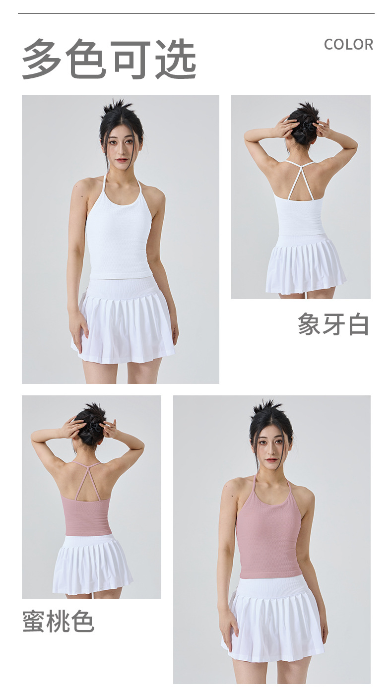 【练习者精选】新款瑜伽背心细肩带挂脖美背带胸垫一体式运动内衣外穿瑜伽健身服