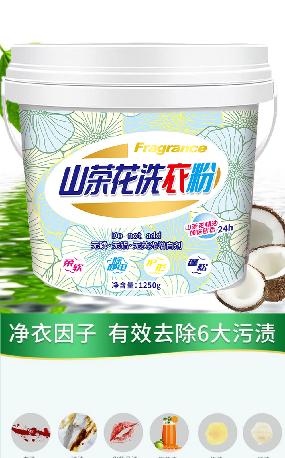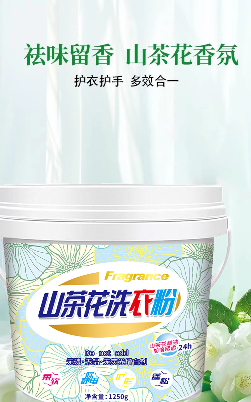 【19.9到手5斤❗桶装山茶花洗衣粉】山茶花精油加倍留香24h,深层去污柔顺护衣,温和成分复配,无磷·无铝·无荧光增白剂,持久留香强力去污实惠装家用深层洁净QQ