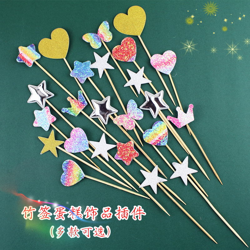 (5支装)亮色混色组合插件星心皇冠米奇蛋糕饰品插件 竹签插牌插旗插卡插片 蛋糕装饰