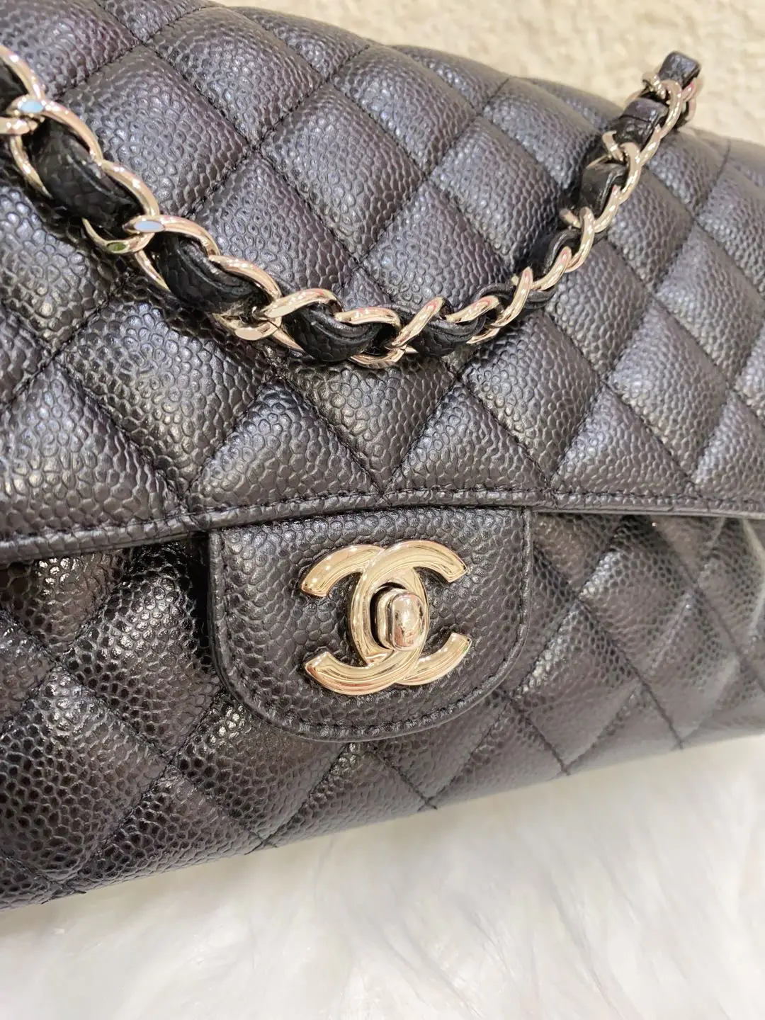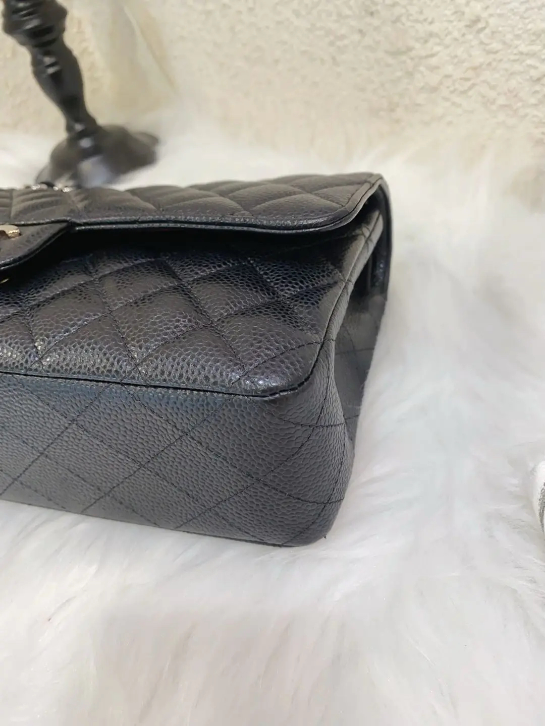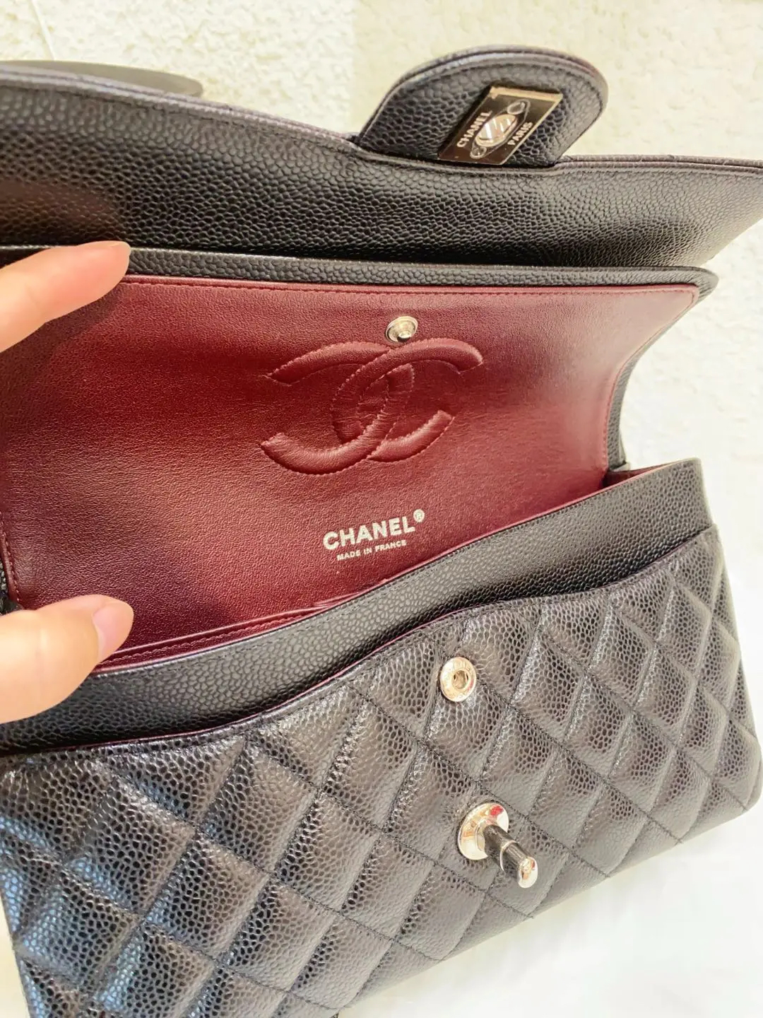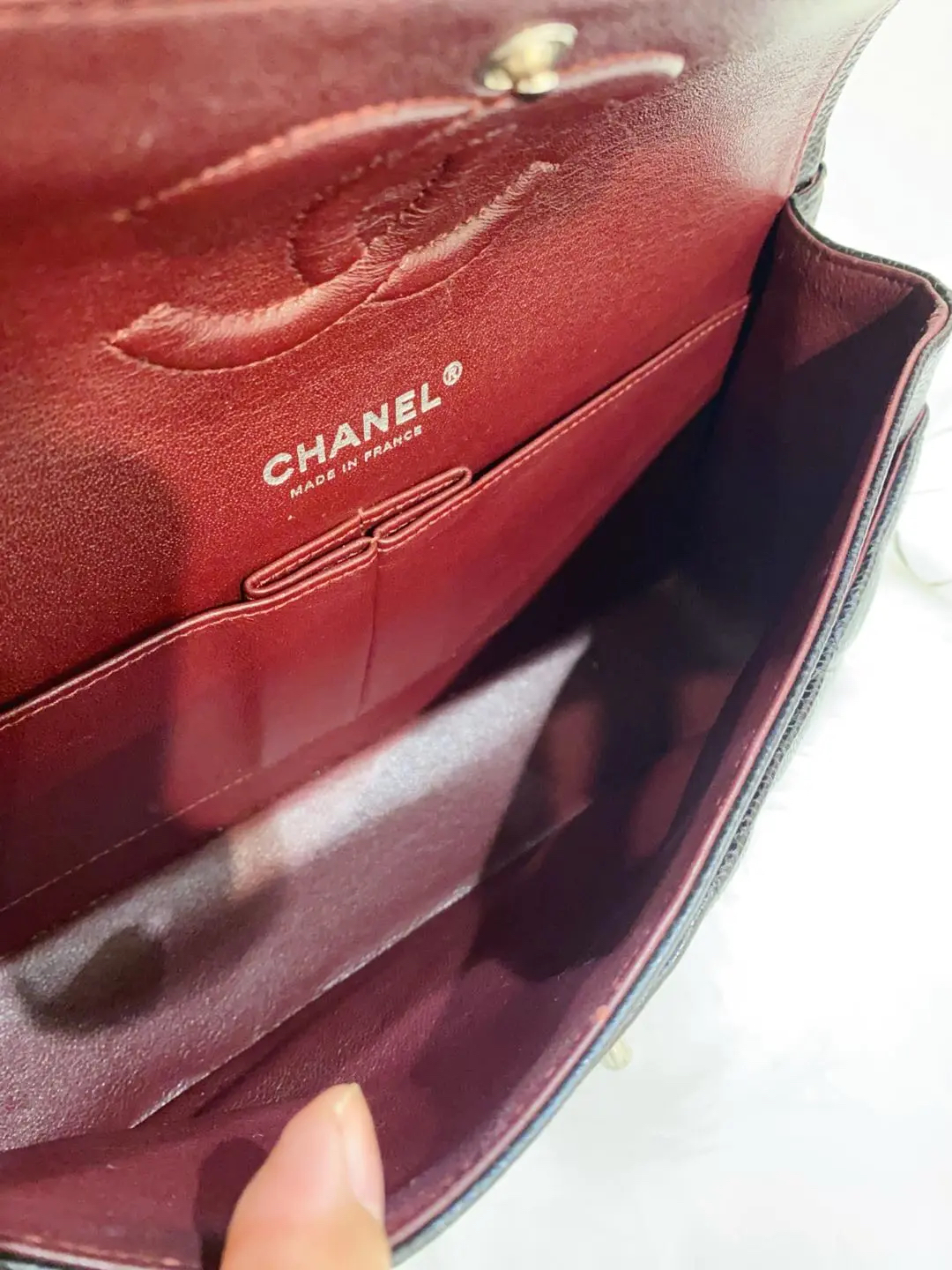 Chanel cf 中号 黑金 荔枝纹牛皮 翻盖包