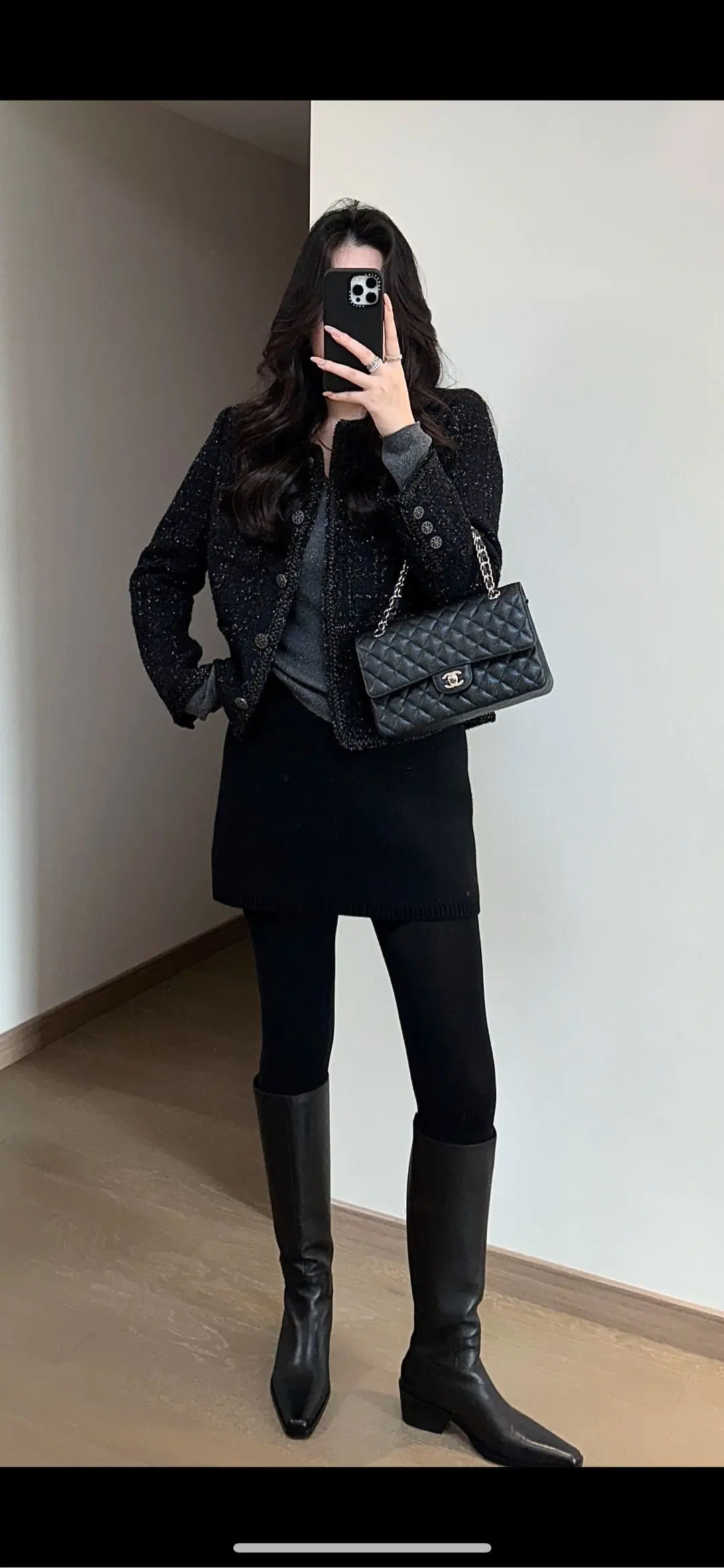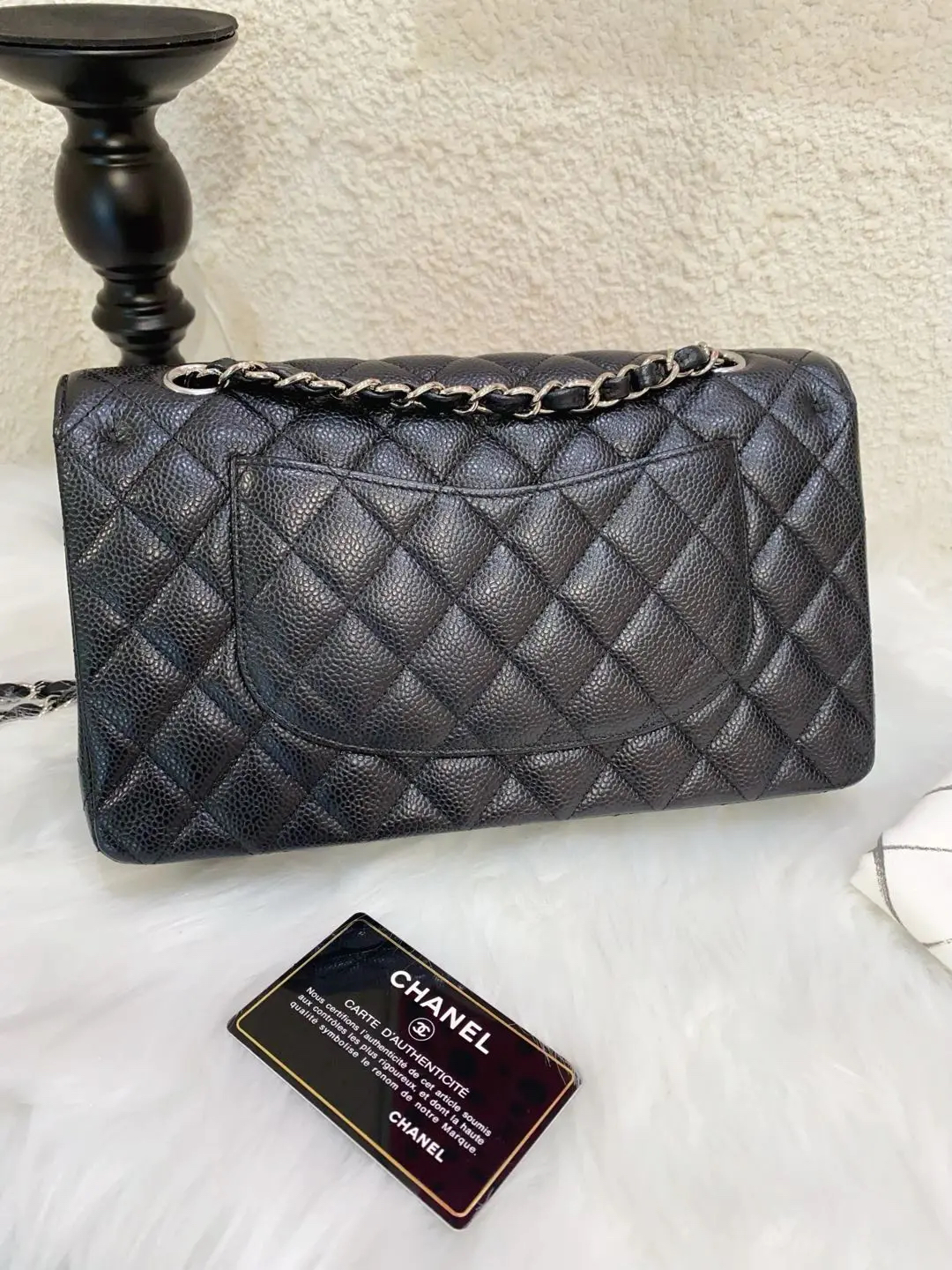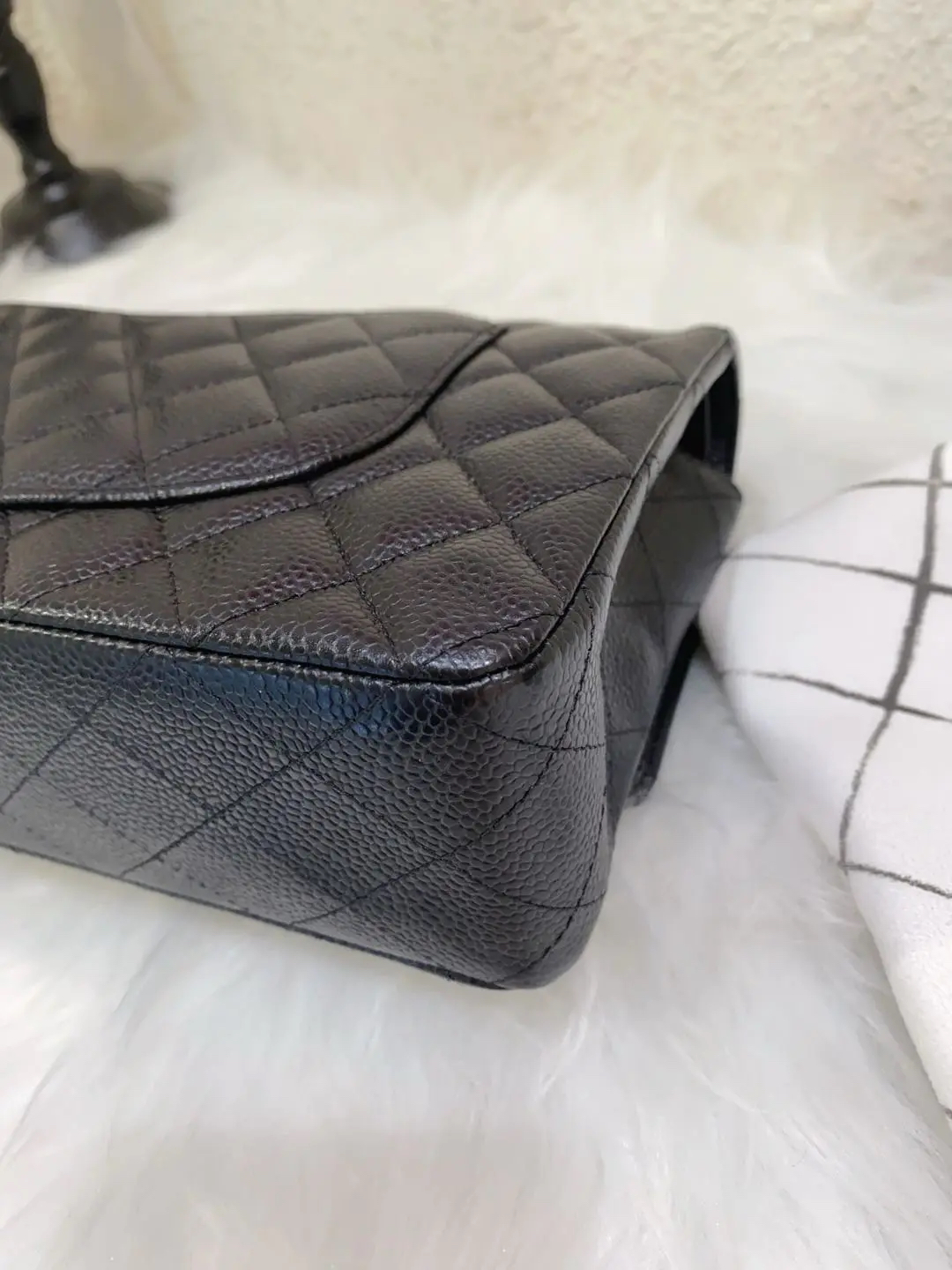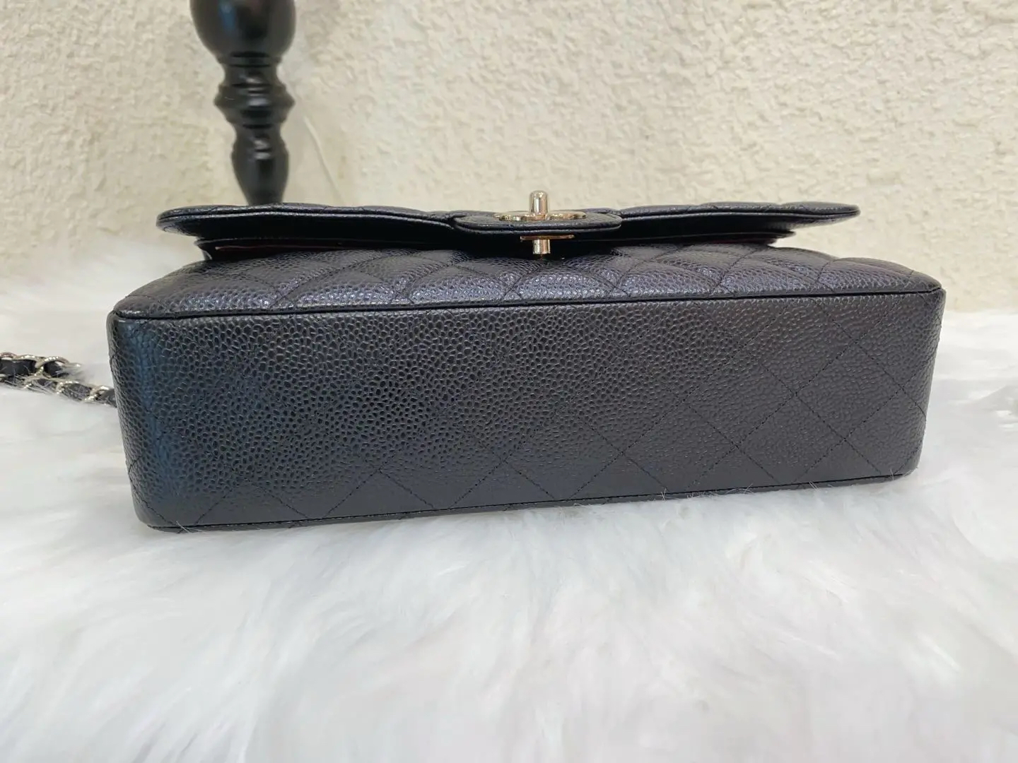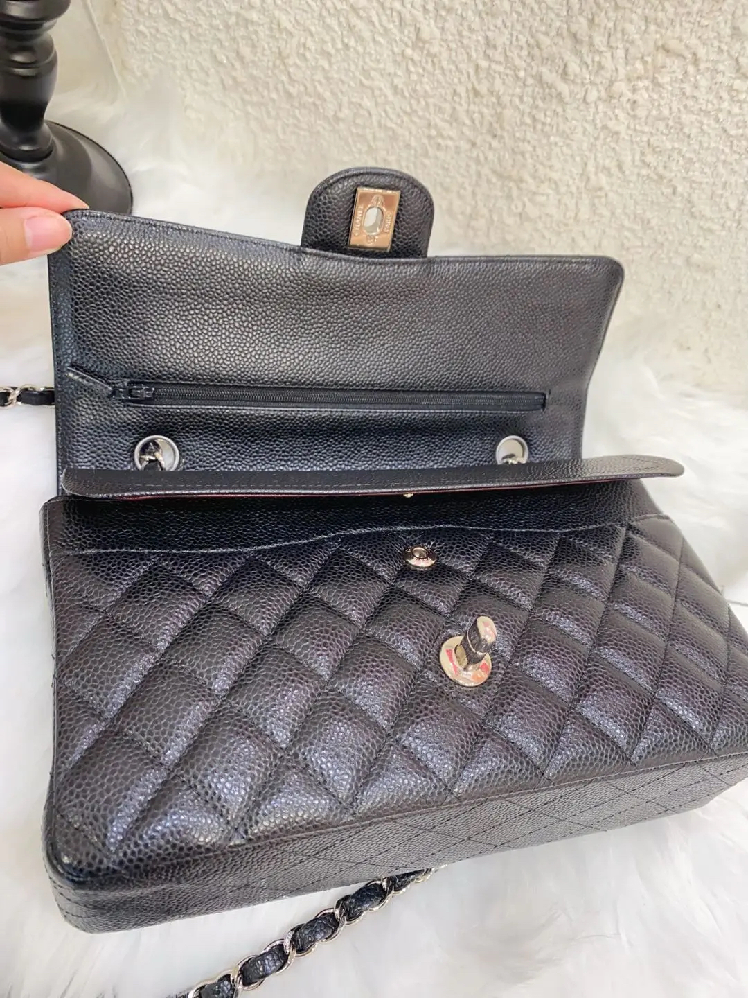 Chanel cf 中号 黑金 荔枝纹牛皮 翻盖包