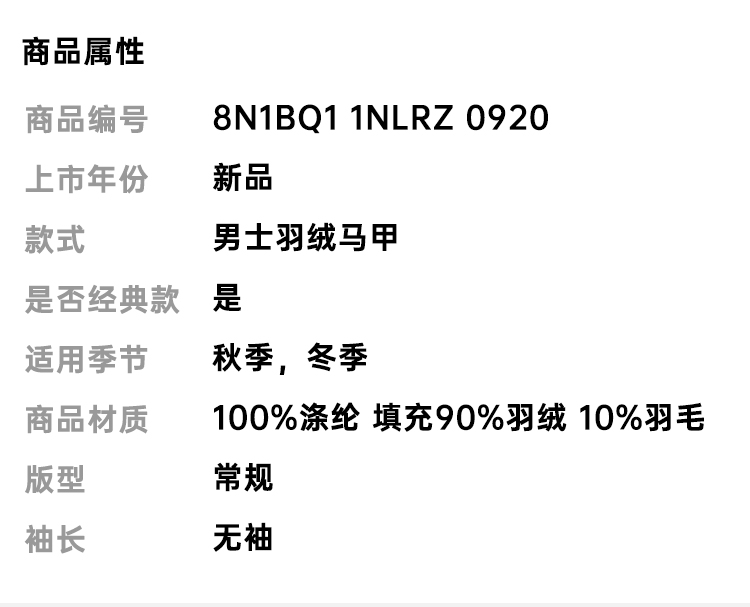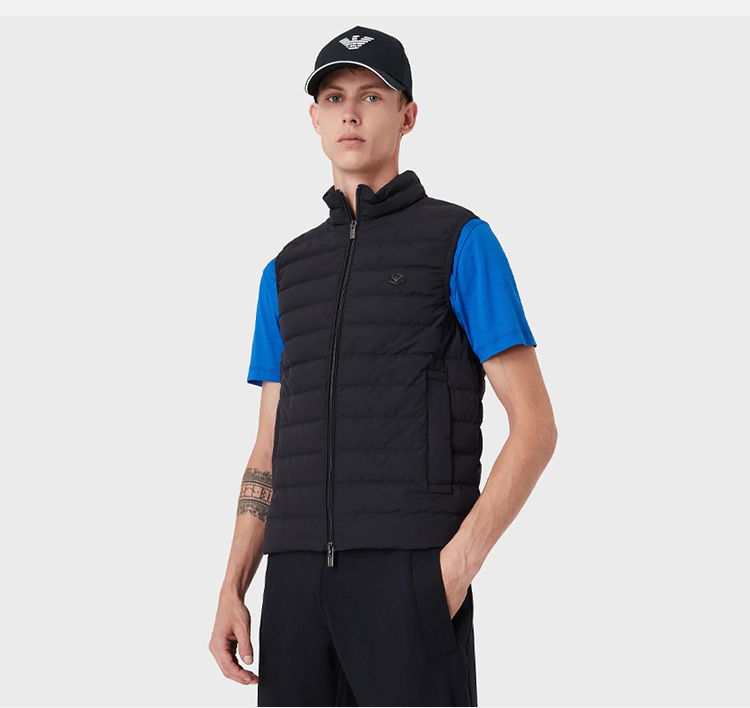 EMPORIO ARMANI 阿玛尼 男士徽标贴花绗缝尼龙羽绒马甲 深蓝色 8N1BQ1 1NLRZ 0920