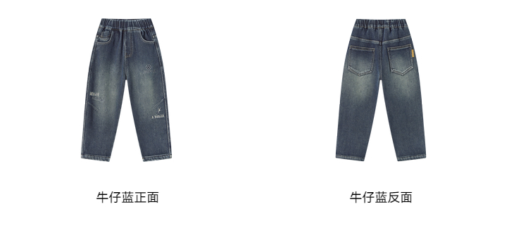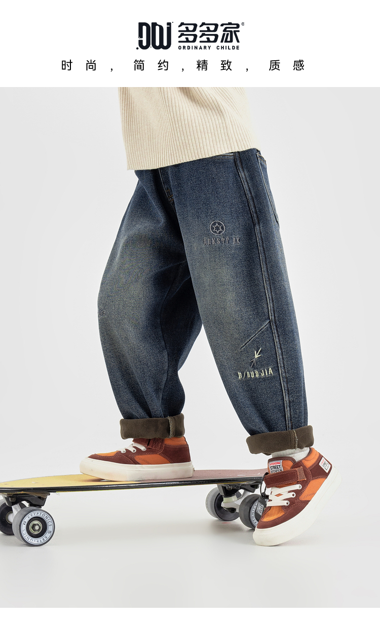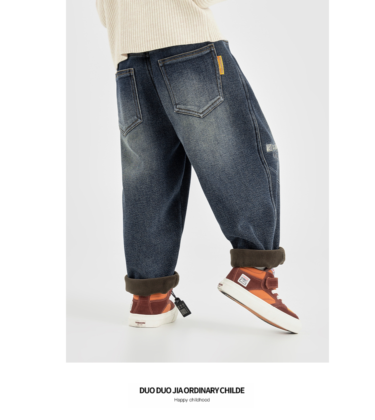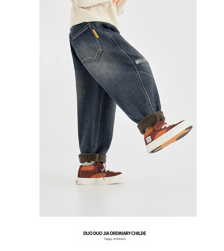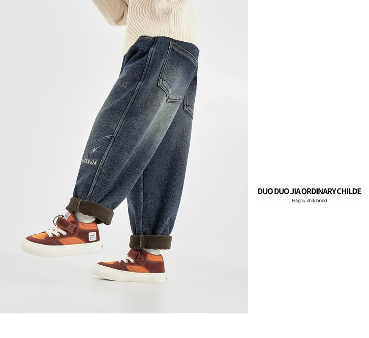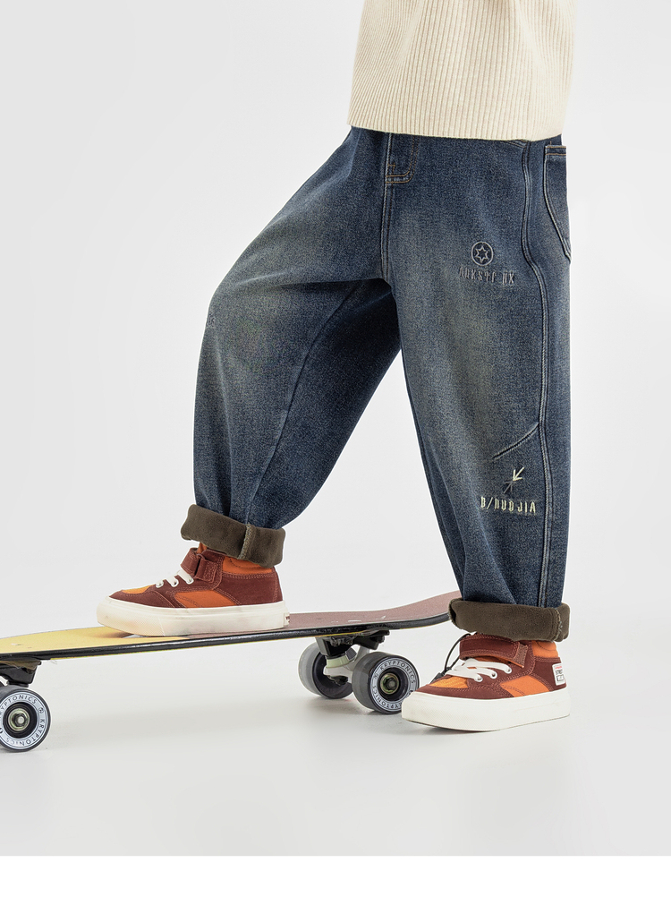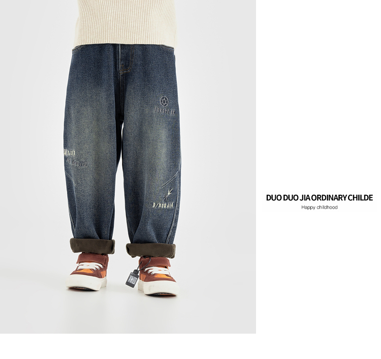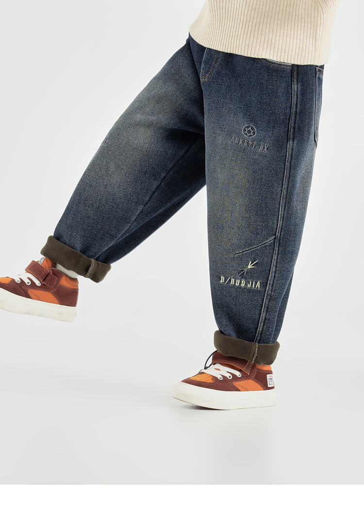 【件件底价,童装双倍积分】多多家男童加绒牛仔裤秋冬款2025冬装新款儿童中大童刺绣长裤子潮11336