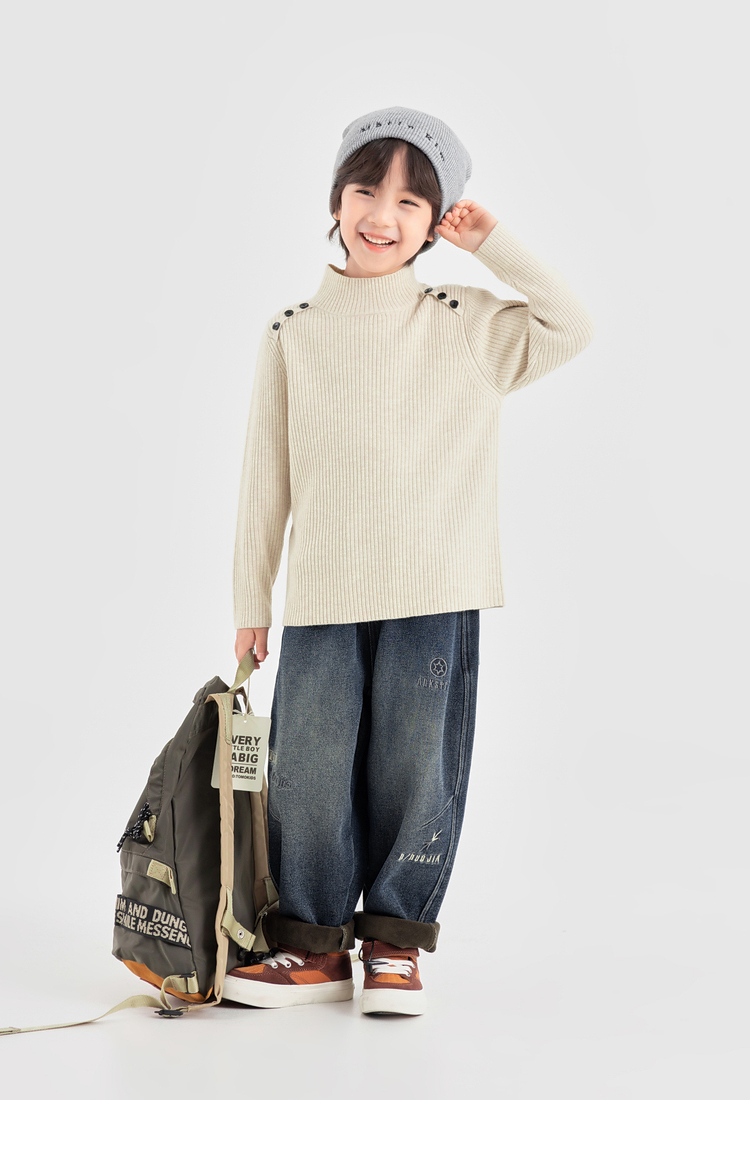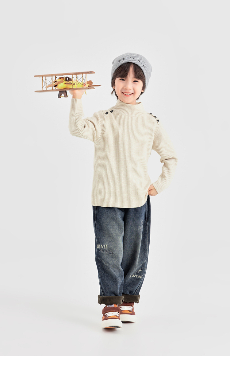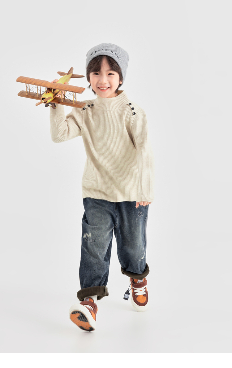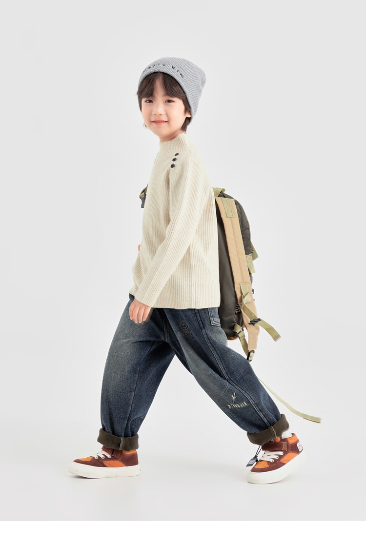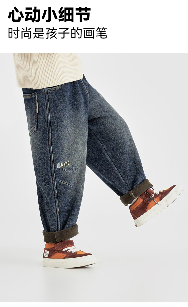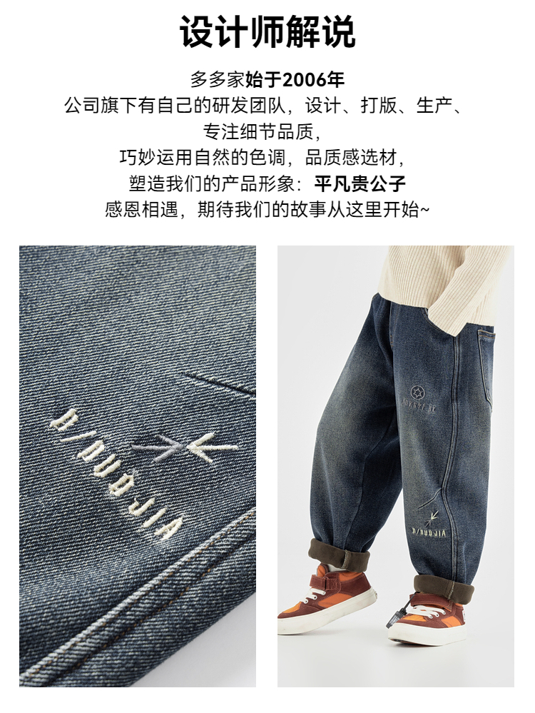 【件件底价,童装双倍积分】多多家男童加绒牛仔裤秋冬款2025冬装新款儿童中大童刺绣长裤子潮11336