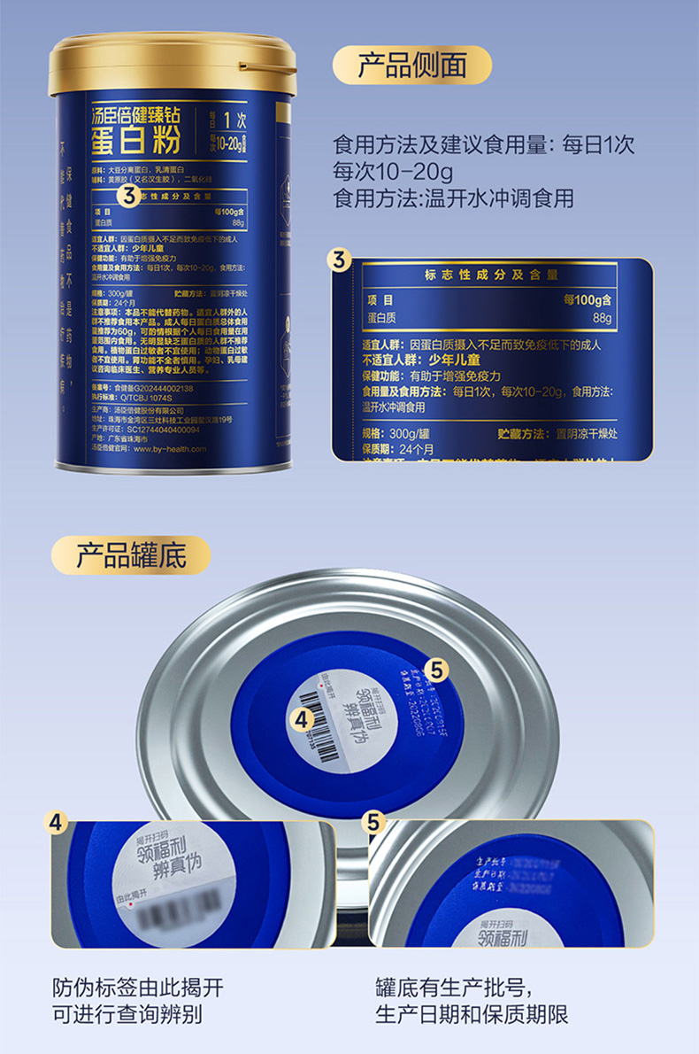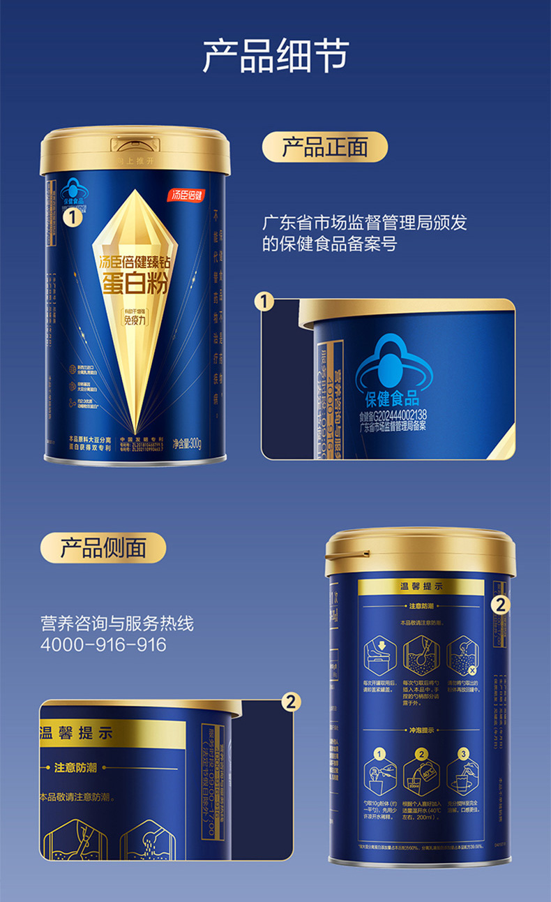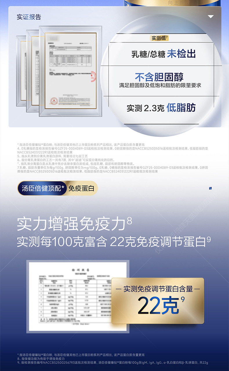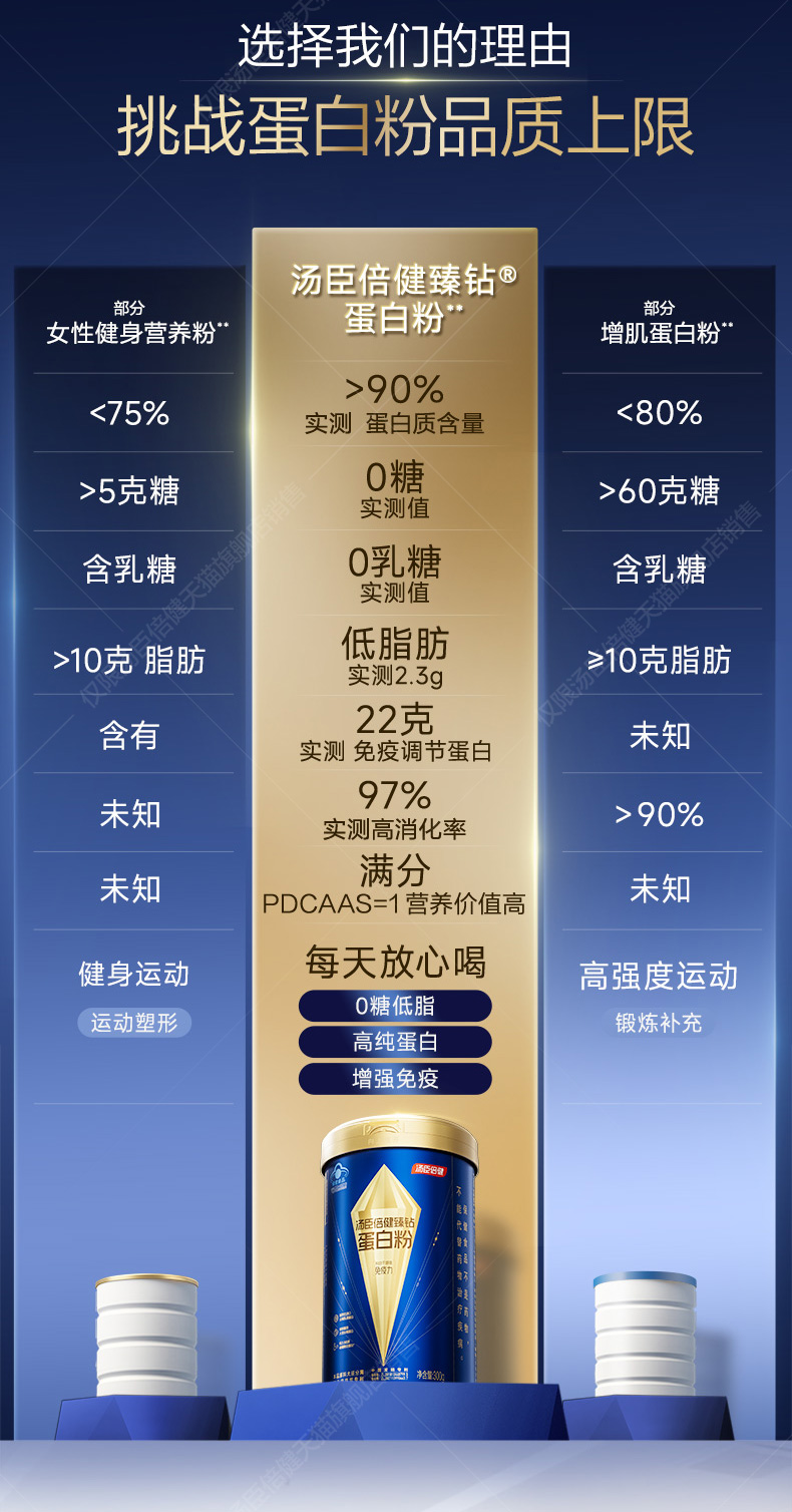 【22g免疫蛋白】汤臣倍健旗舰蓝罐臻钻蛋白粉增强免疫力蛋白粉礼盒